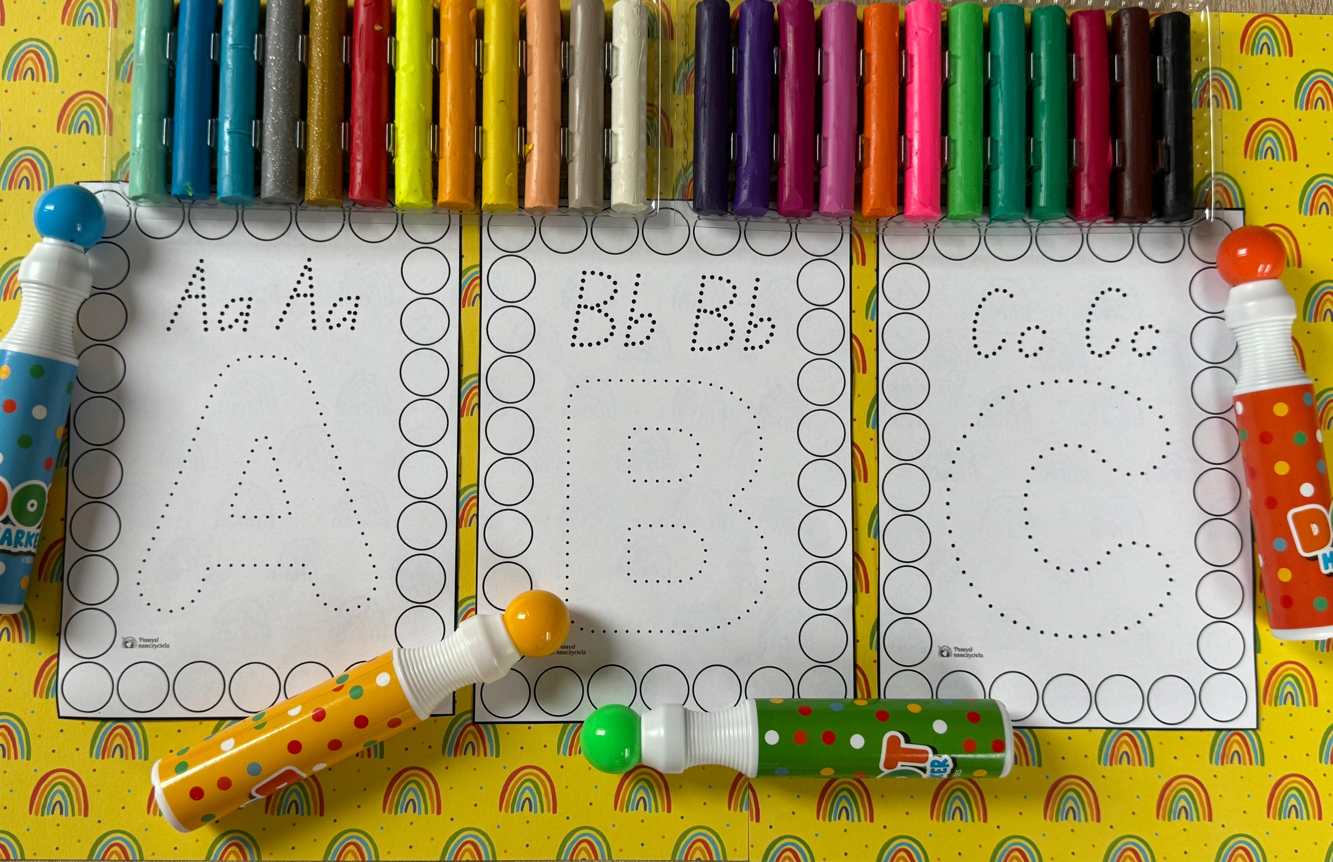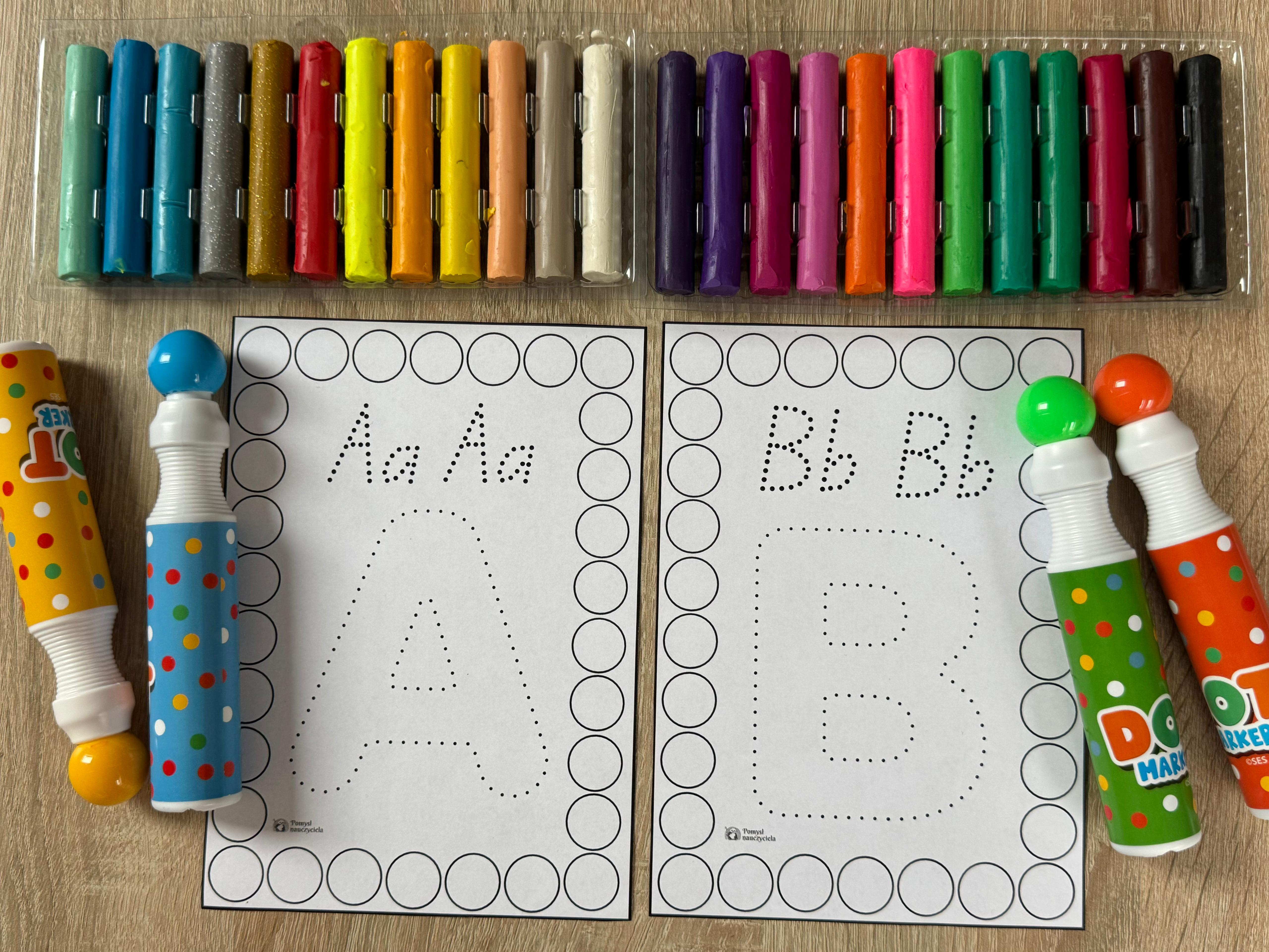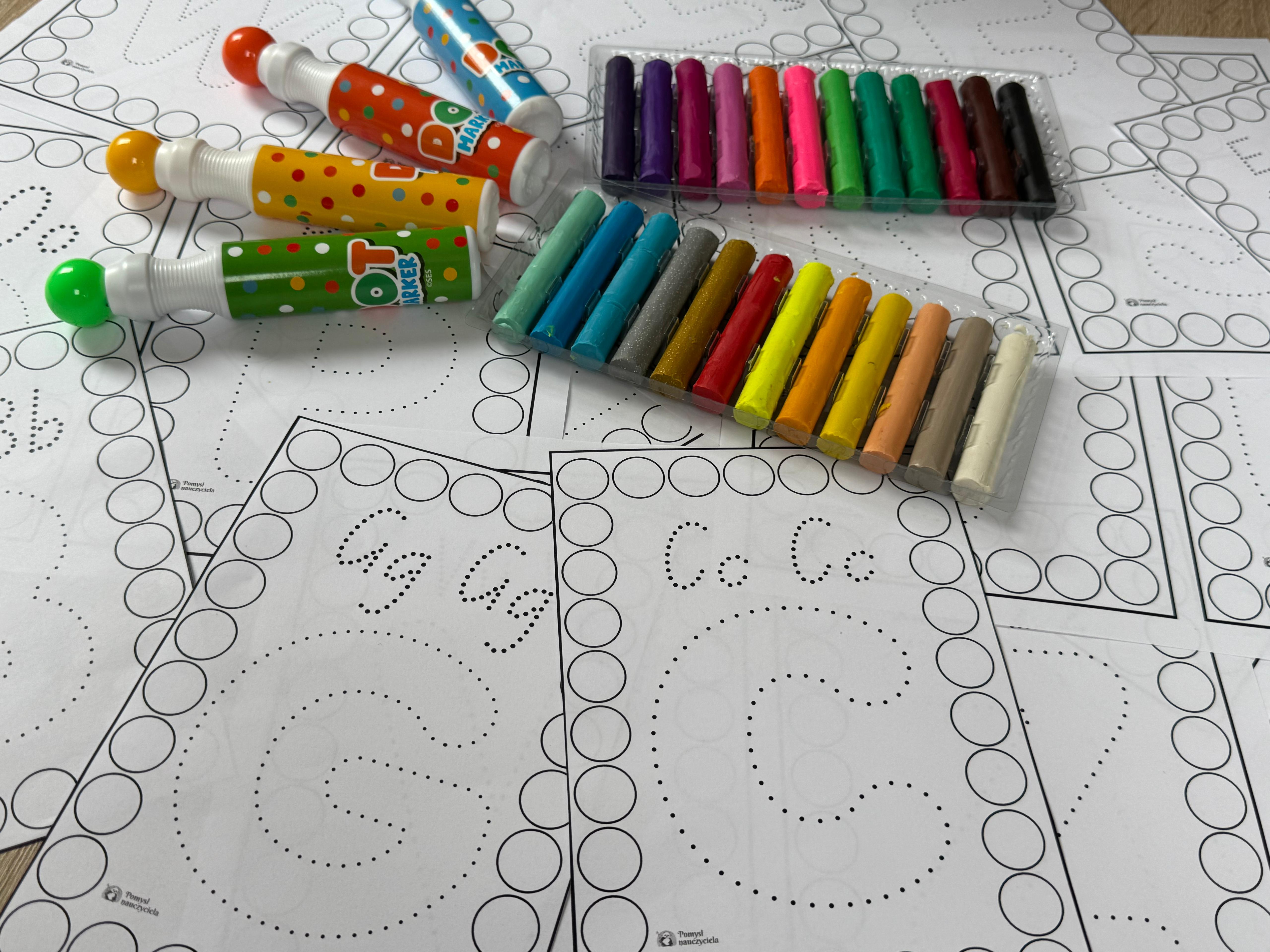 ALFABET KROPECZKI ZABAWA Z PLASTELINĄ LUB FARBĄ- 24 OBRAZKI