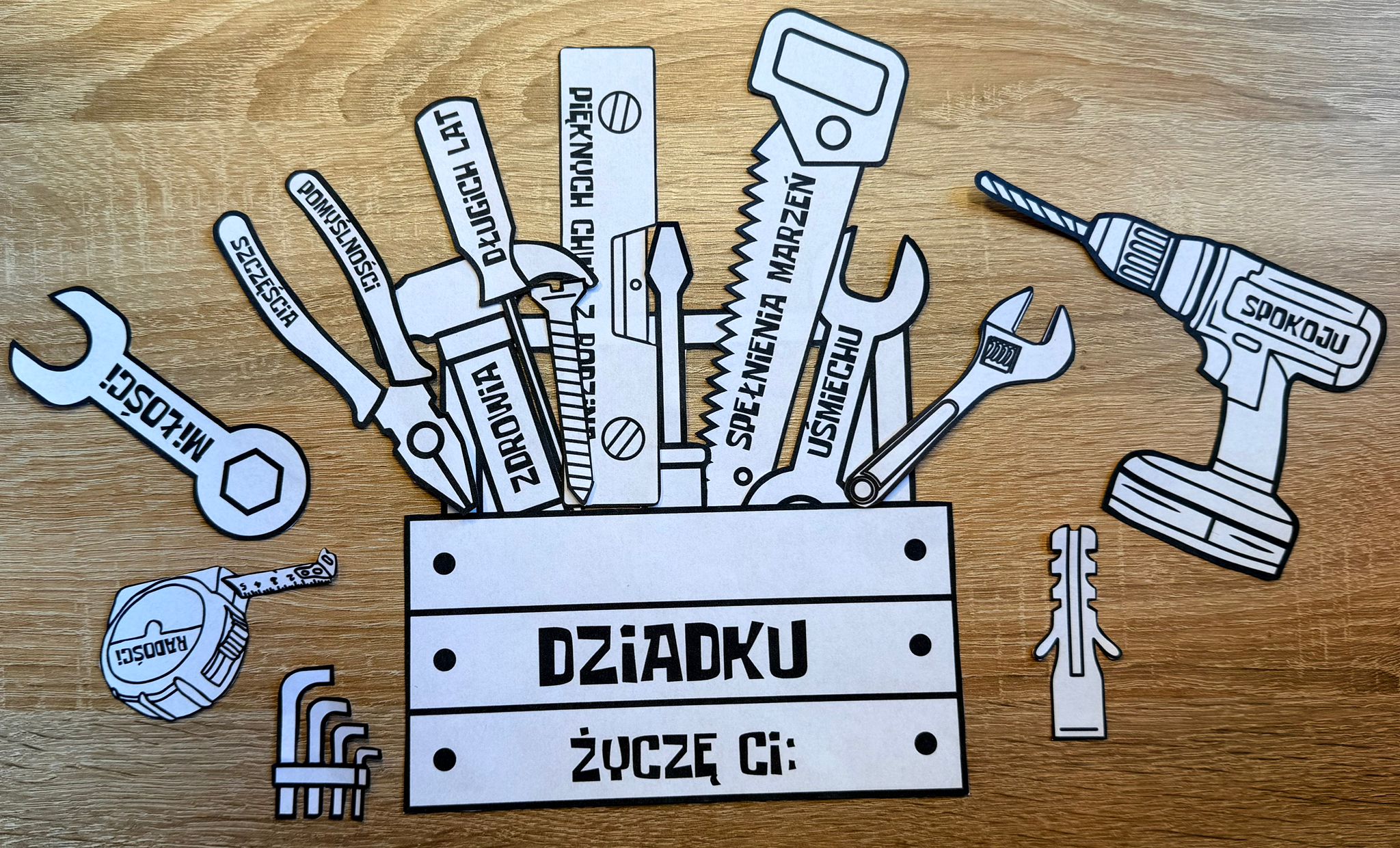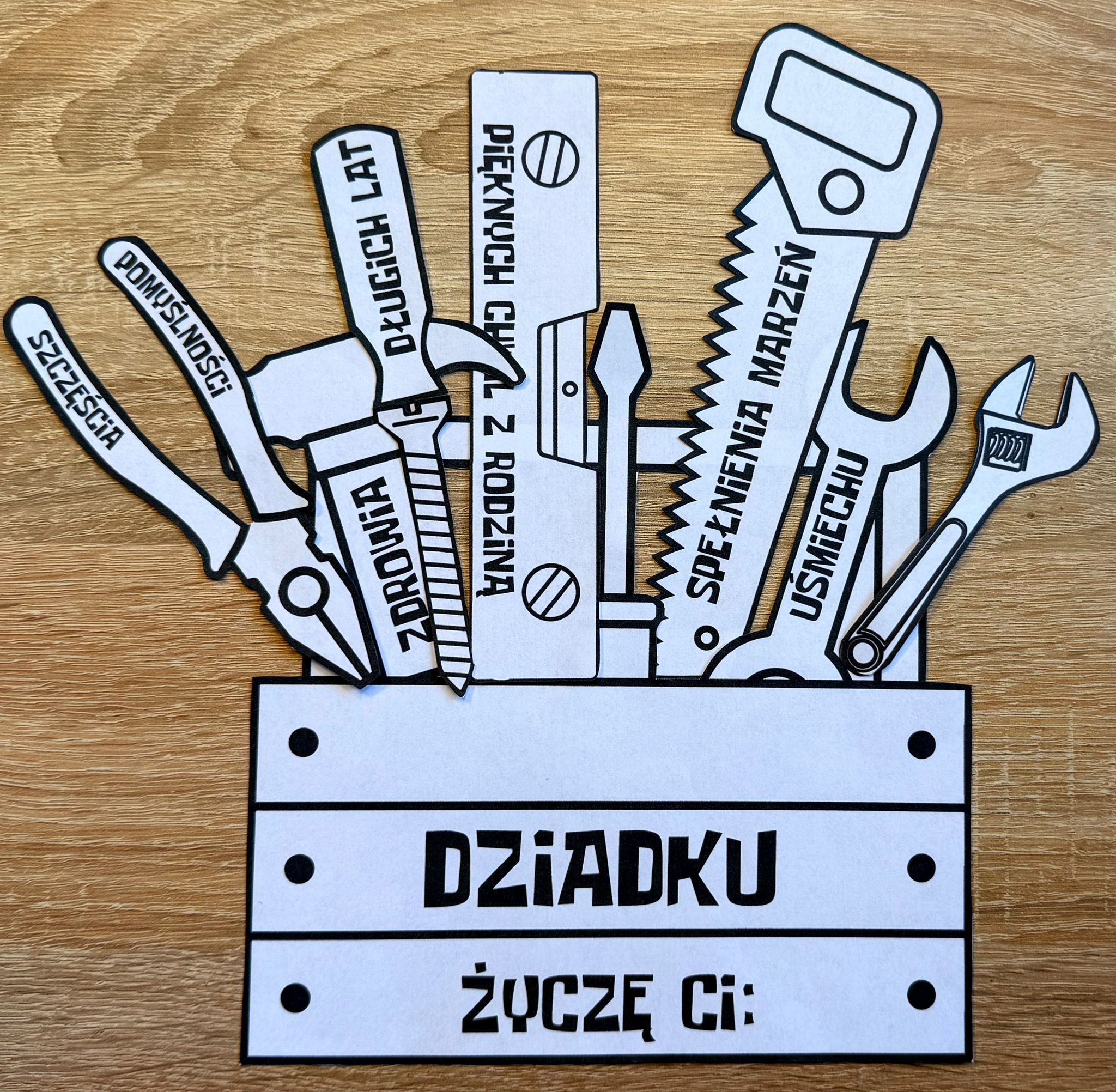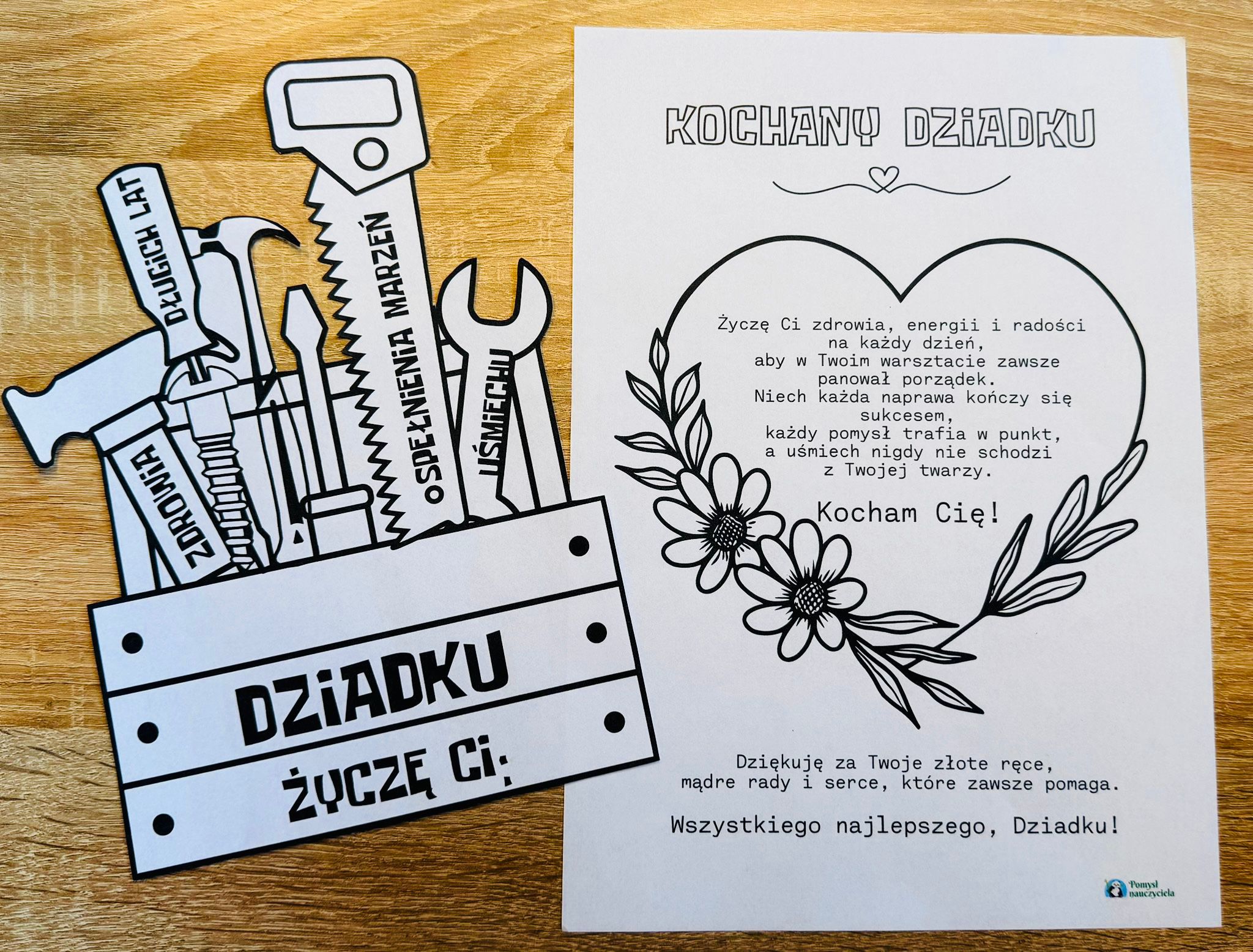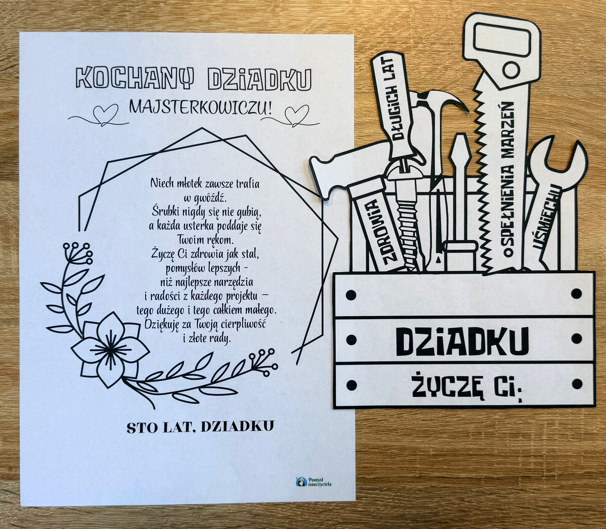 DZIADEK MAJSTERKOWICZ LAURKA DO WYCINANIA I LAURKA BEZ WYCINANIA + ŻYCZENIA 7 STRON