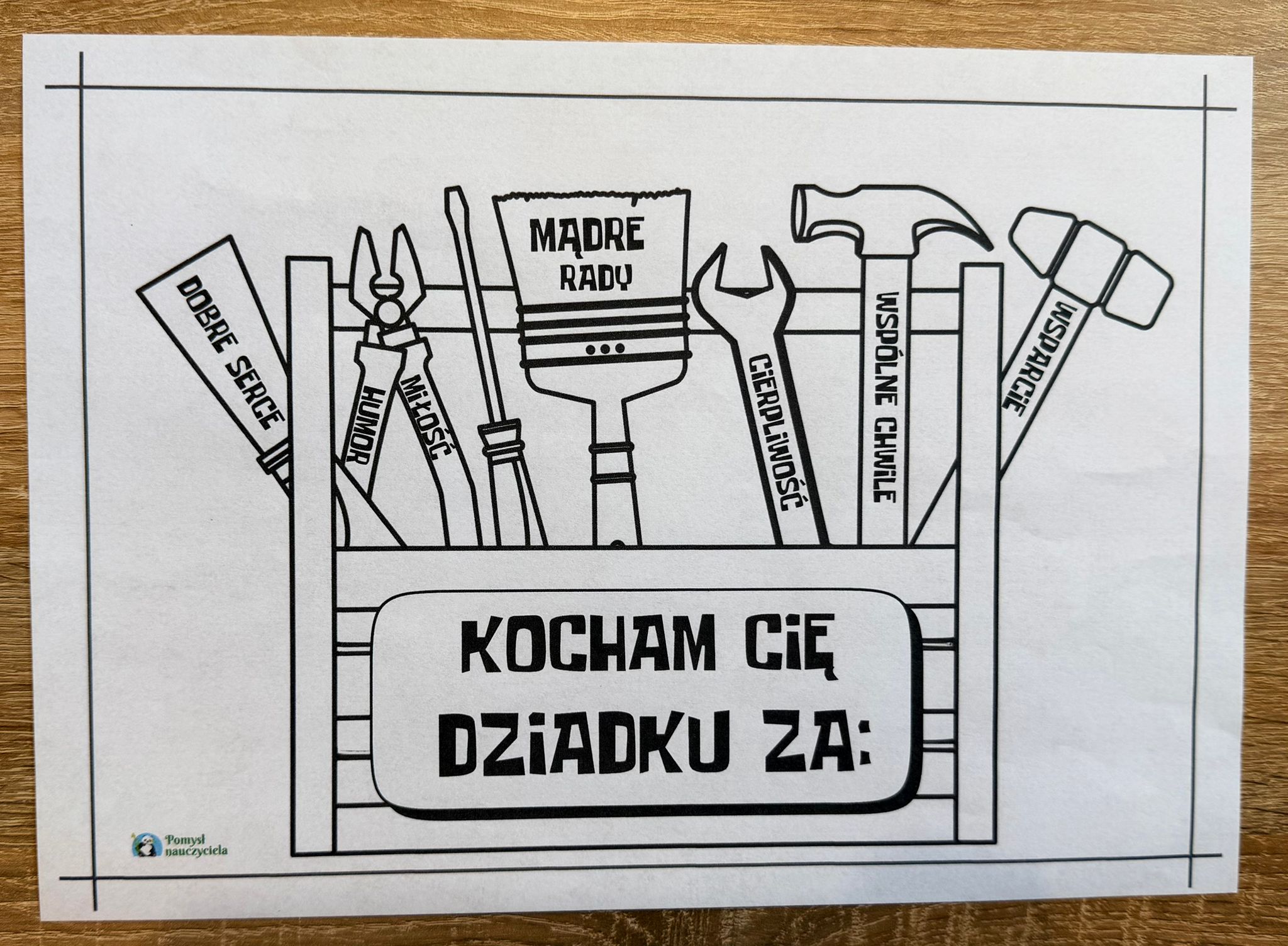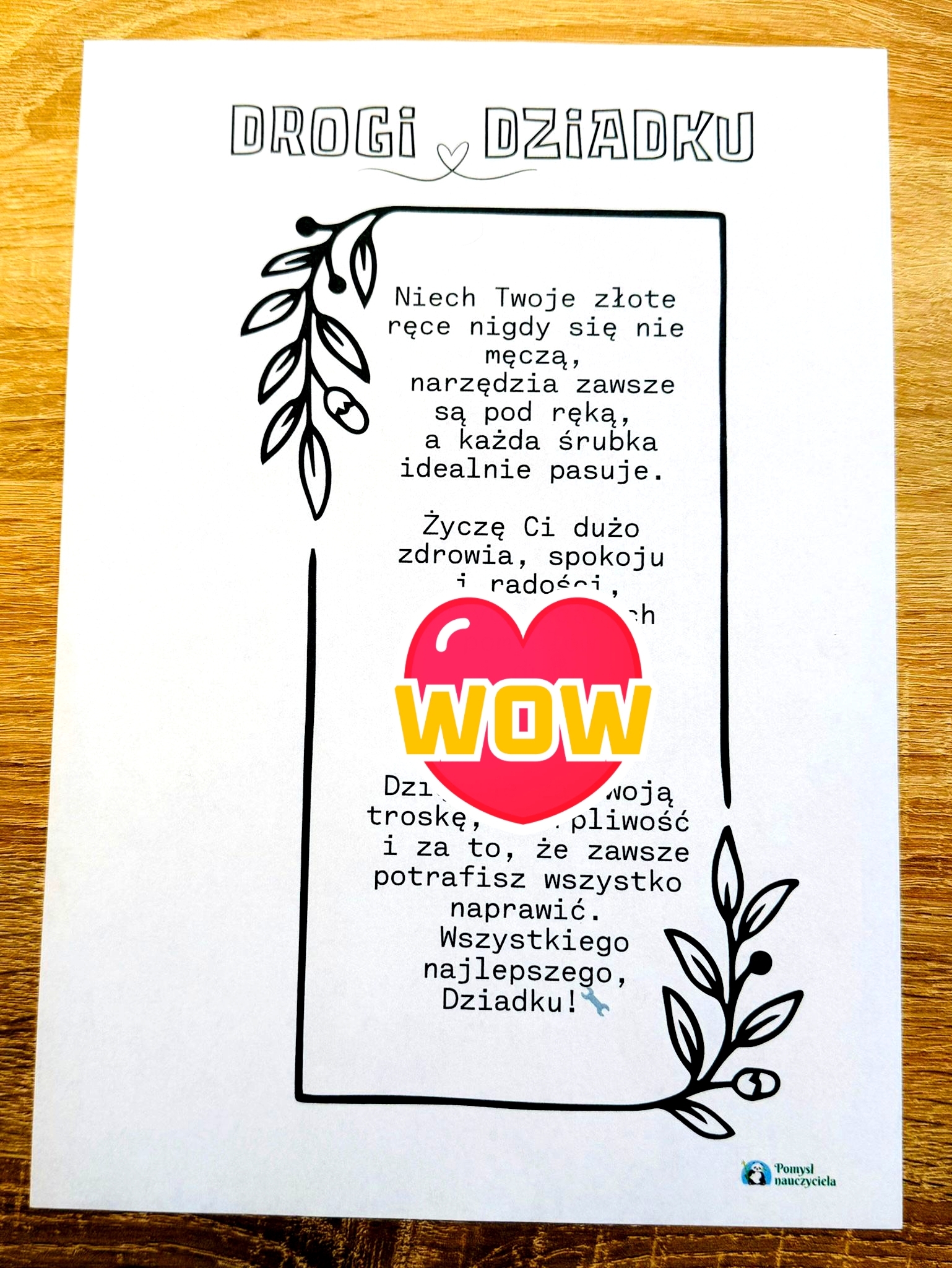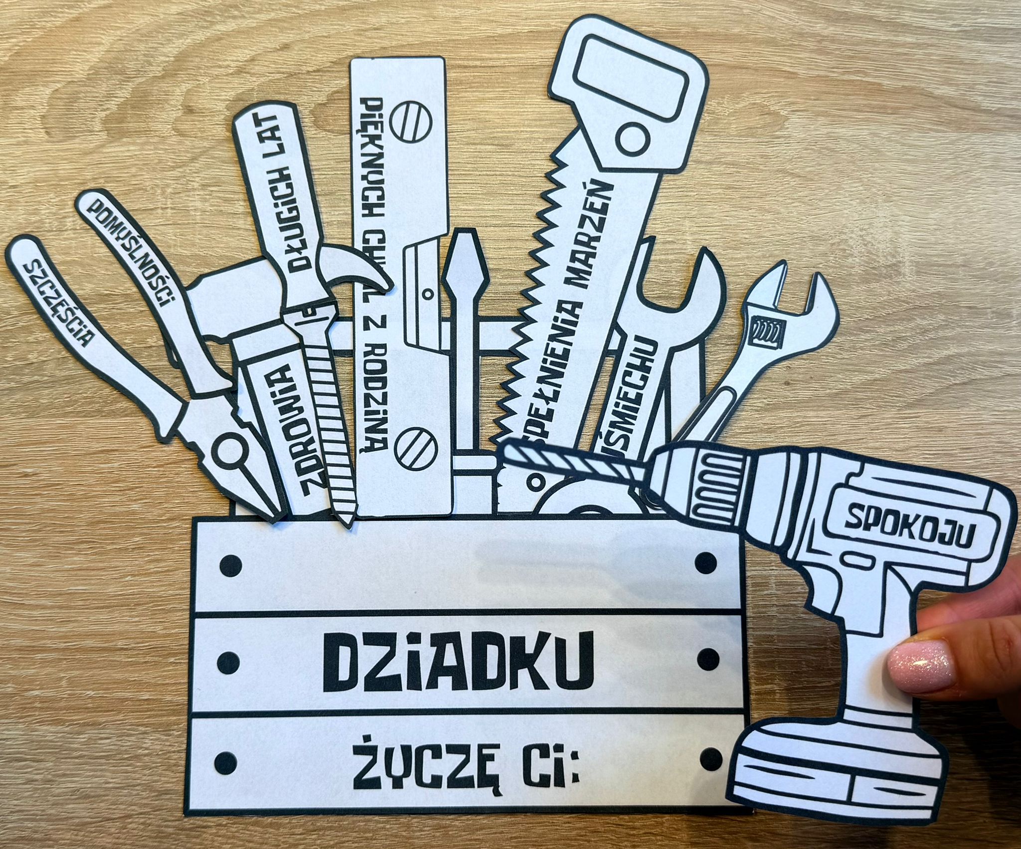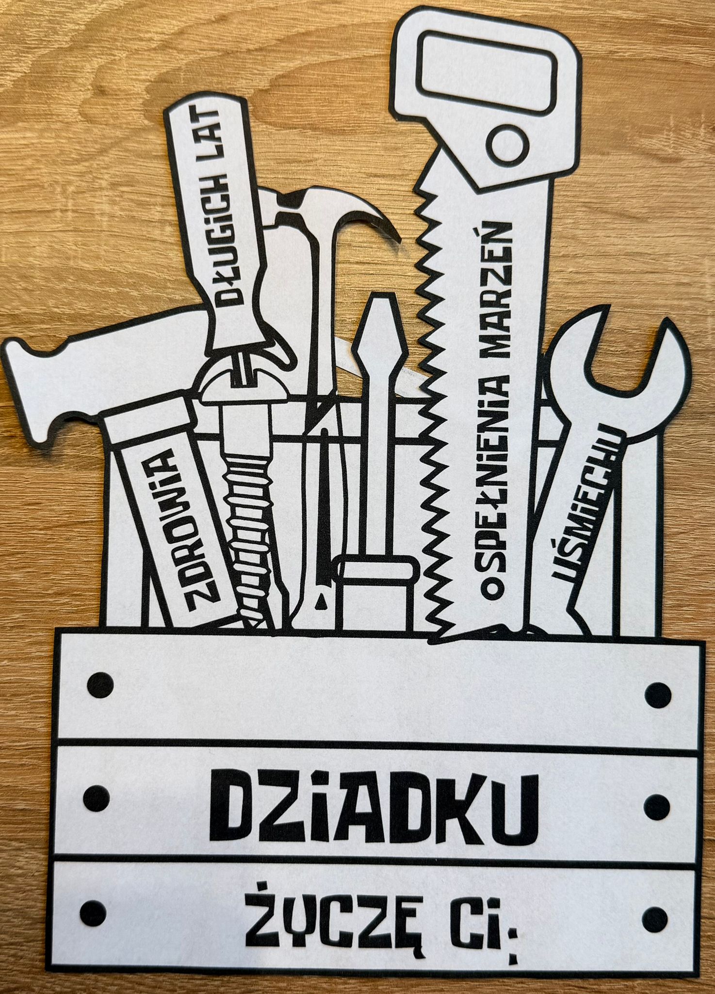 DZIADEK MAJSTERKOWICZ LAURKA DO WYCINANIA I LAURKA BEZ WYCINANIA + ŻYCZENIA 7 STRON