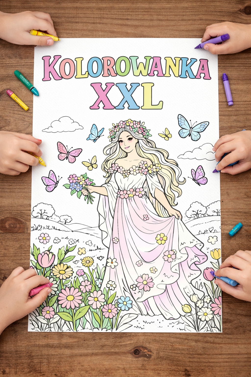ZESTAW 335 POMOCE GOTOWE DO WYSYŁKI. POCZTA POLSKA. KOLOROWANKA XXL PANI WIOSNA Z MOTYLAMI 12 STRON