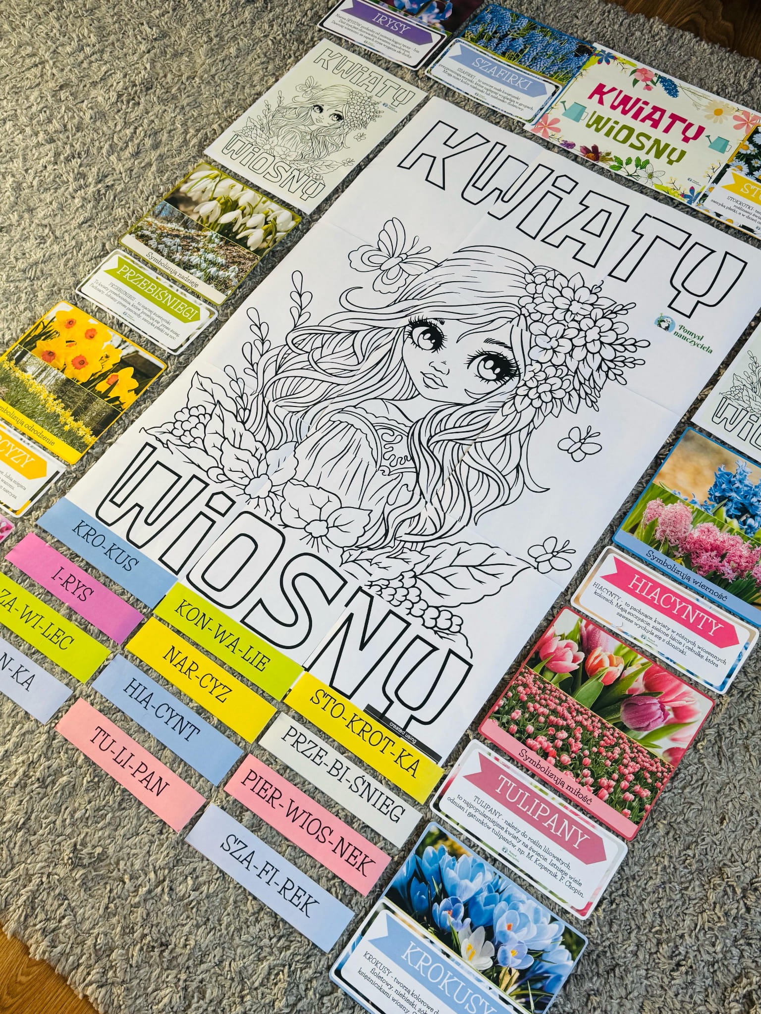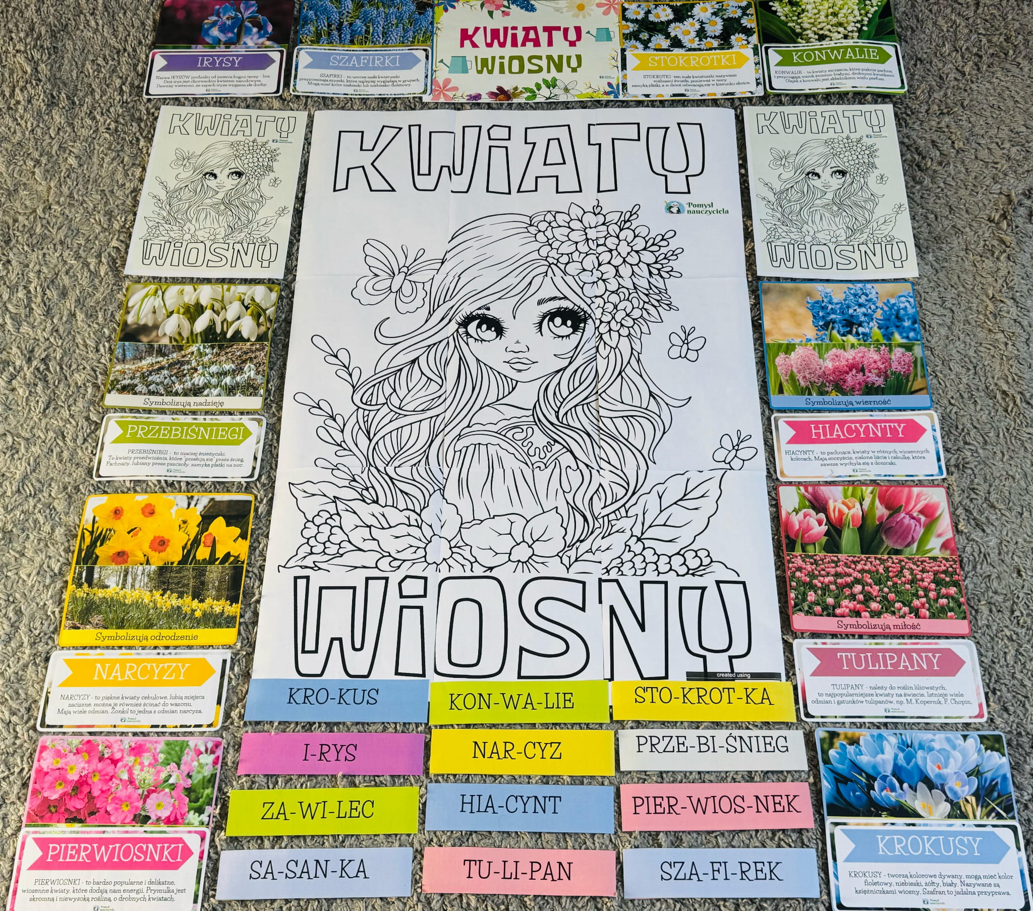 12 KWIATÓW WIOSNY + PLAKAT XXL + KOLOROWANKA XXL