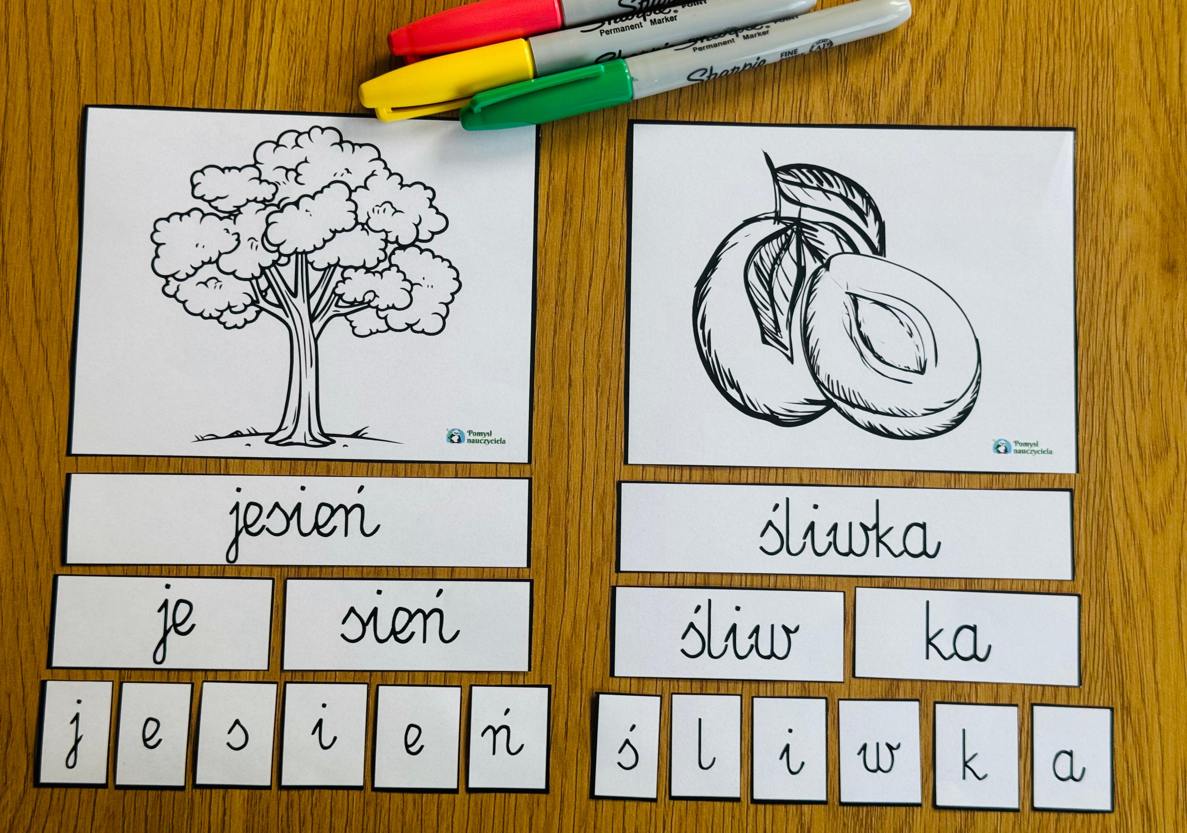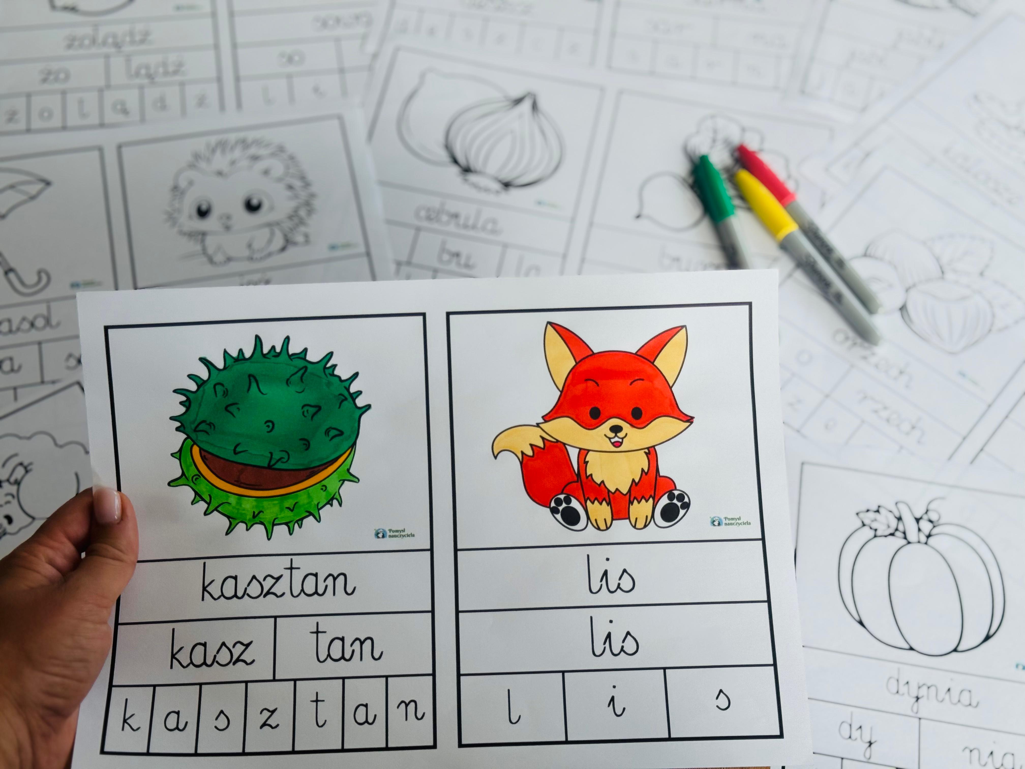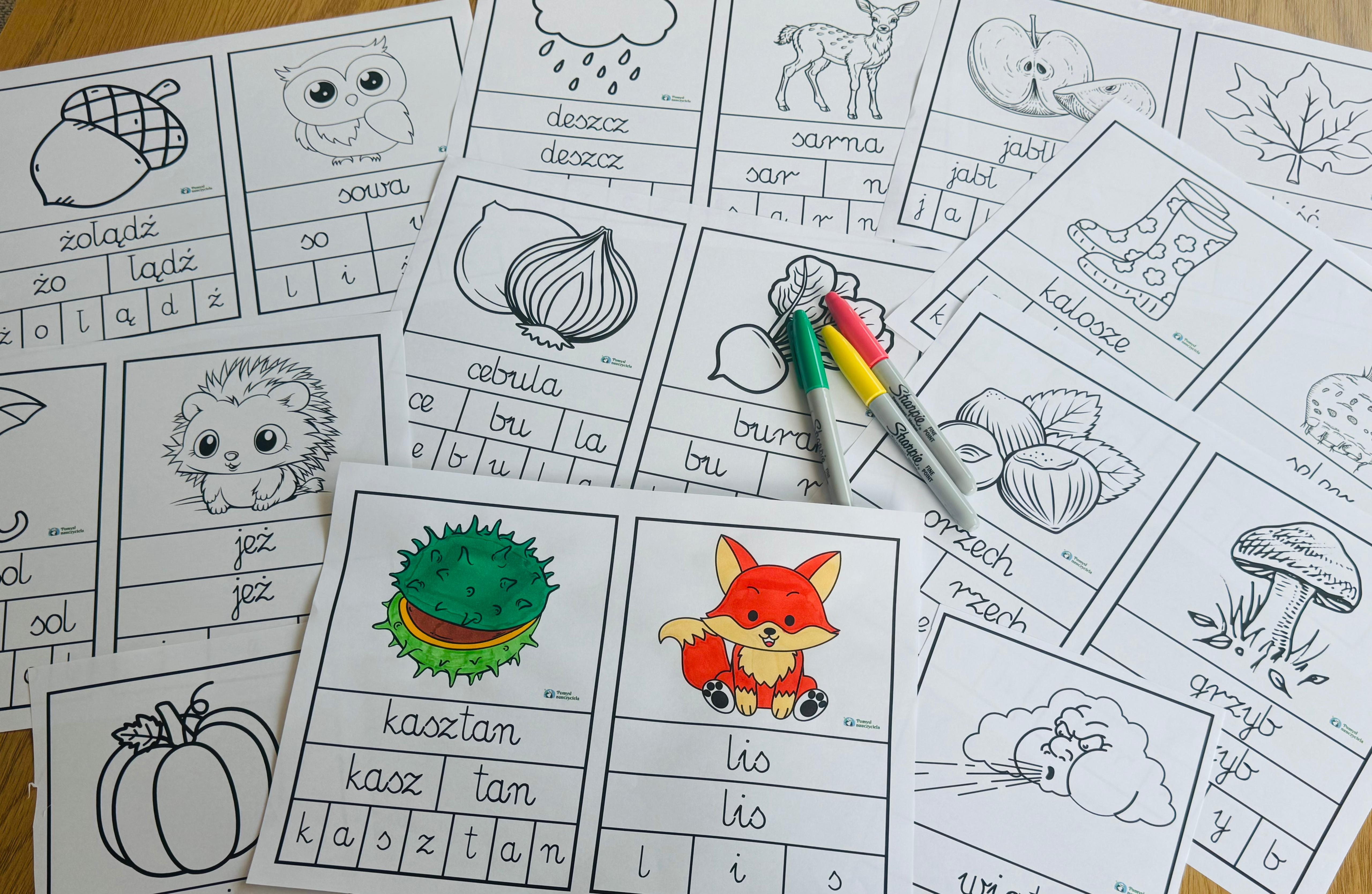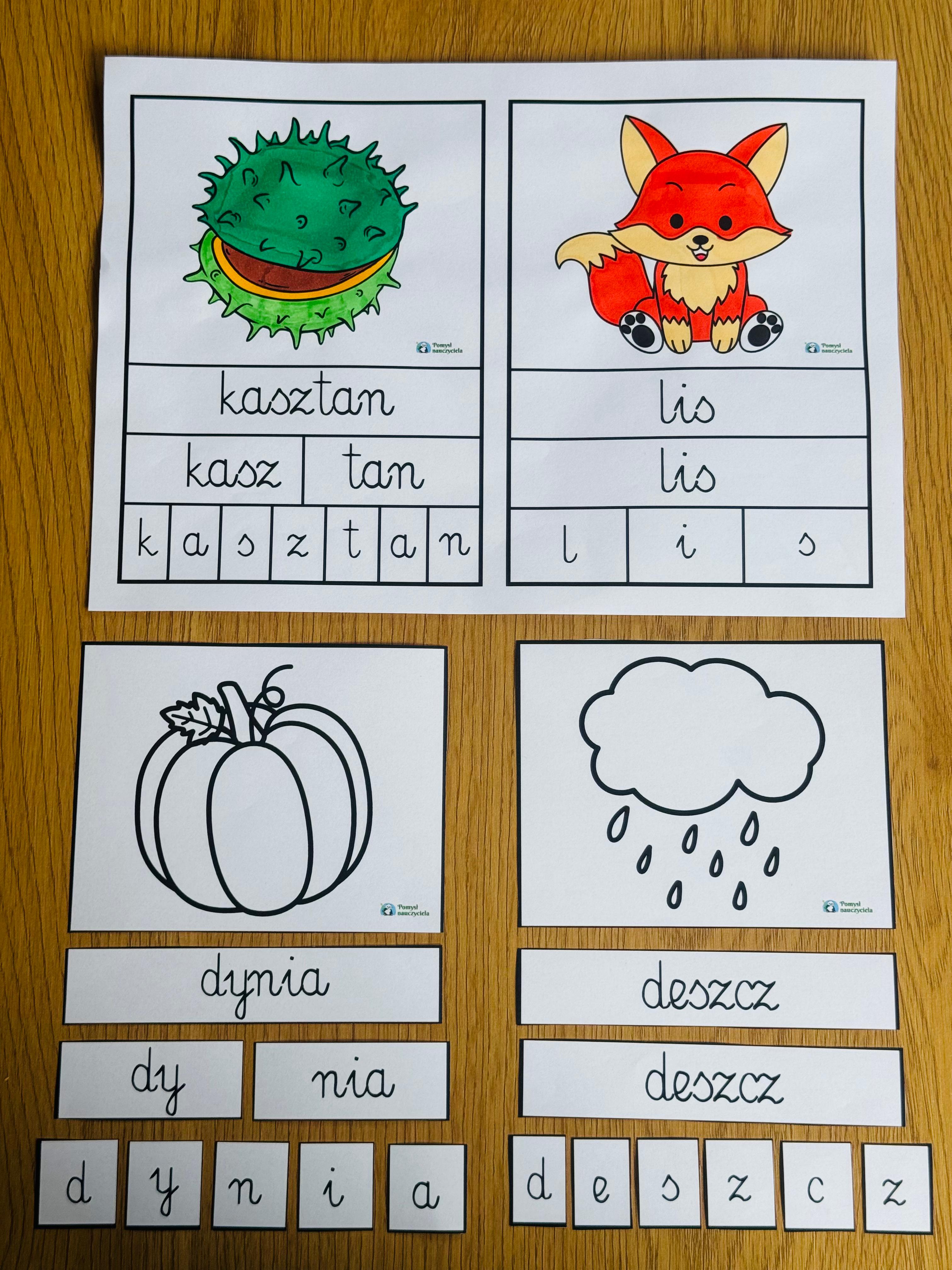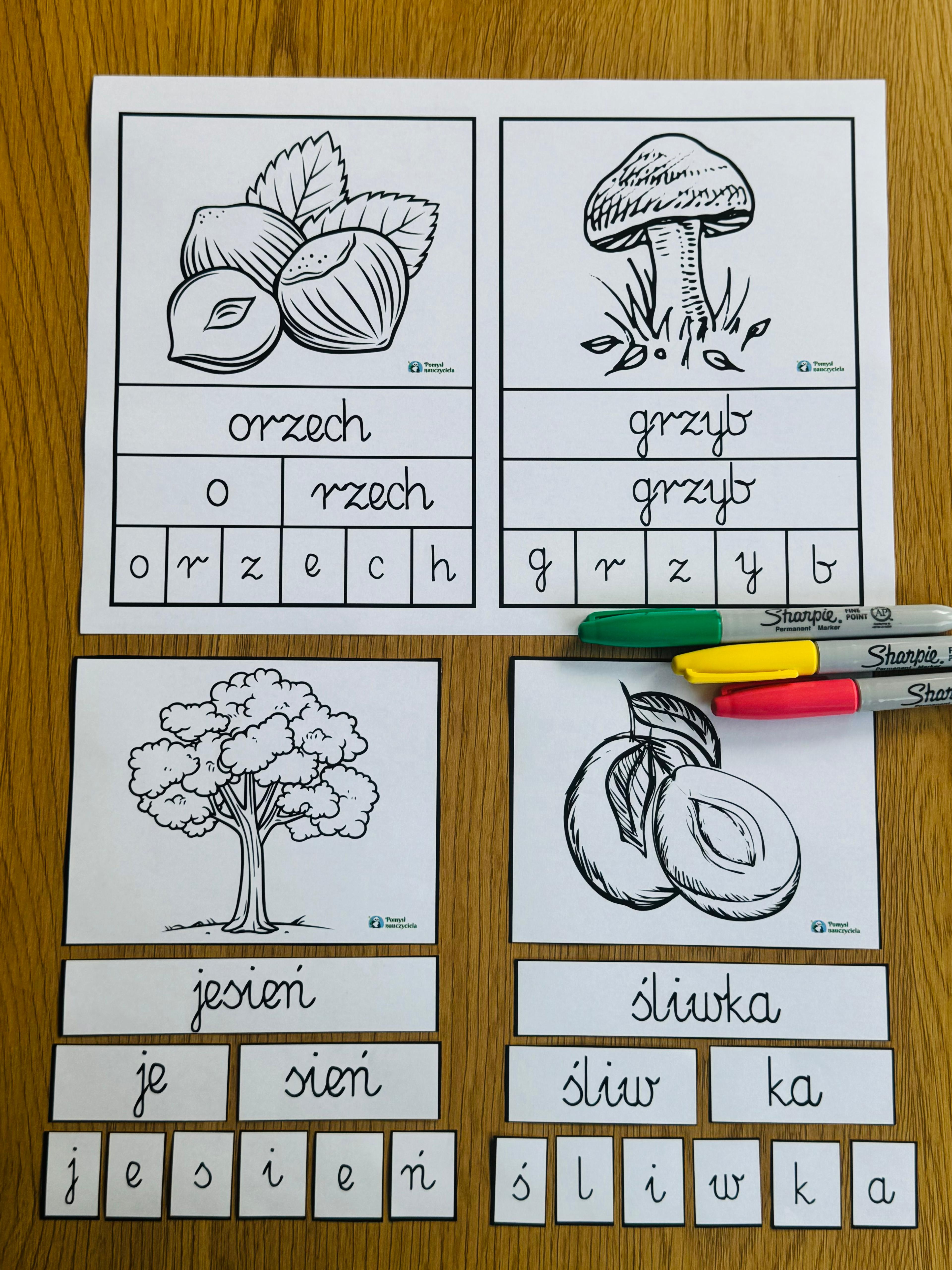 BUDOWANIE JESIENNYCH WYRAZÓW 24 SZT WERSJA CZARNO-BIAŁA