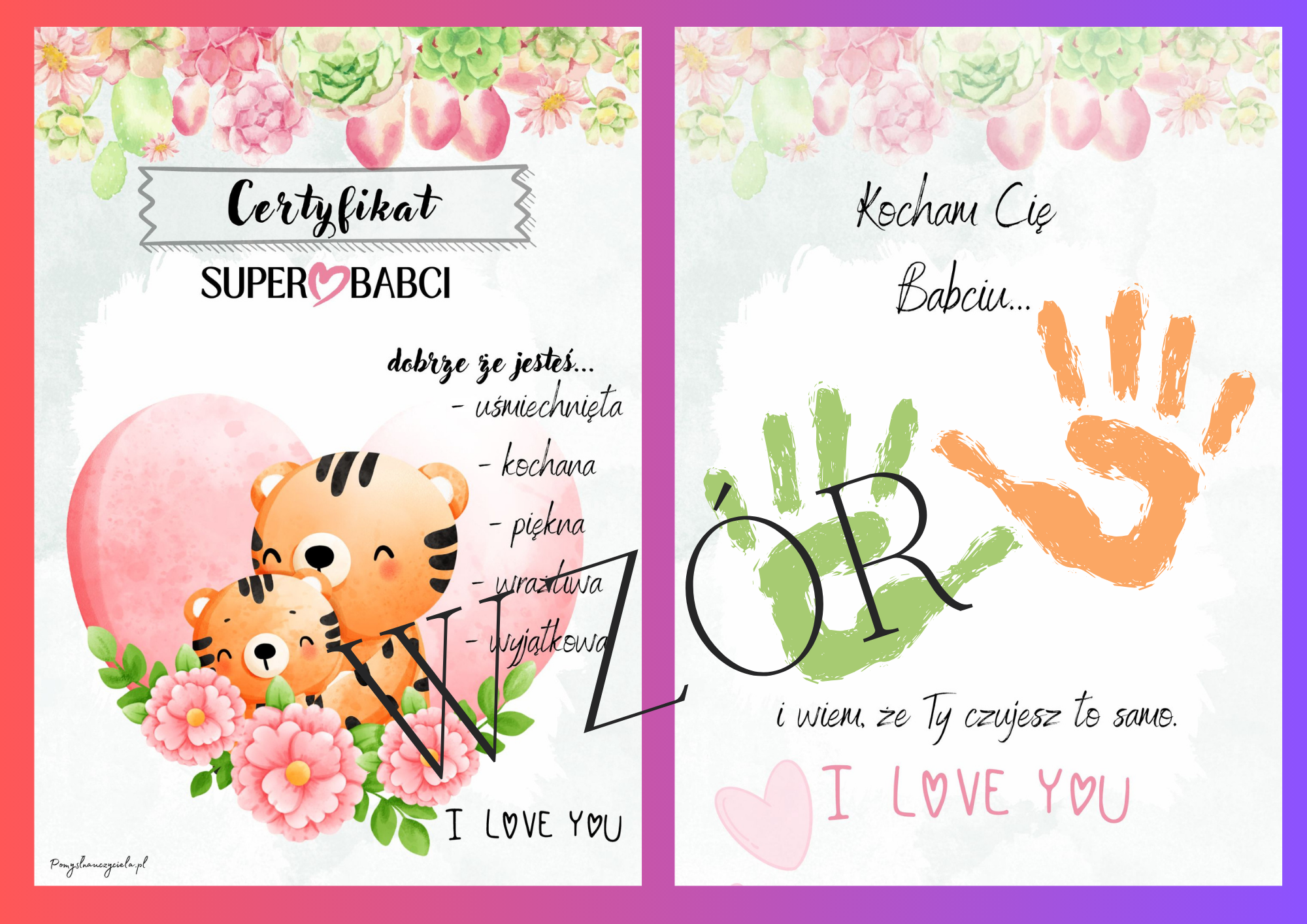 CERTYFIKAT SUPER BABCI I DZIADKA - 6 WZORÓW DWUSTRONNYCH