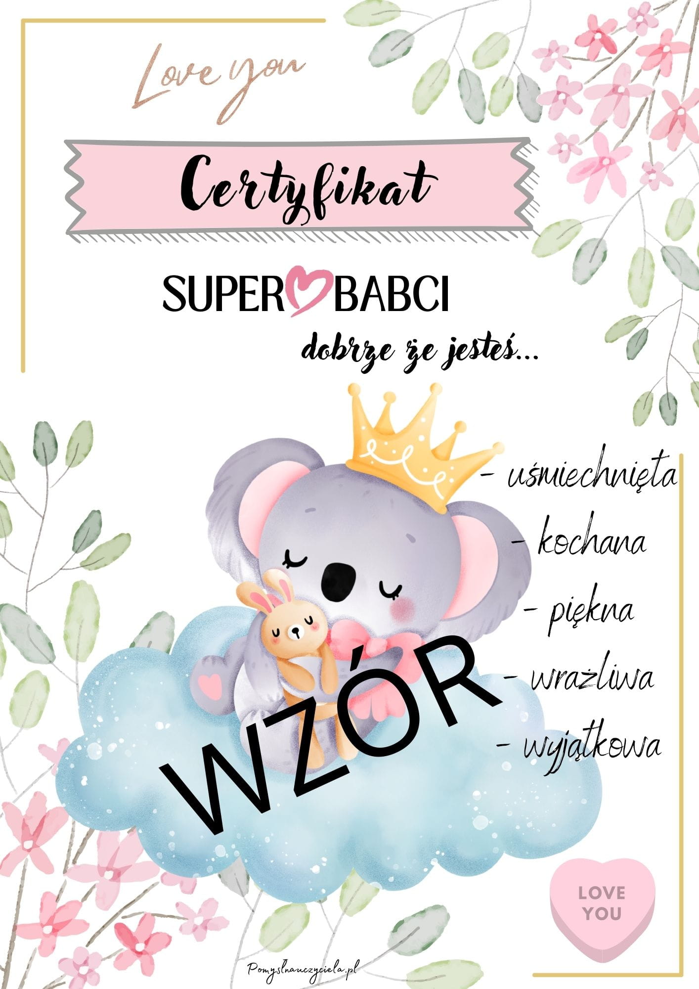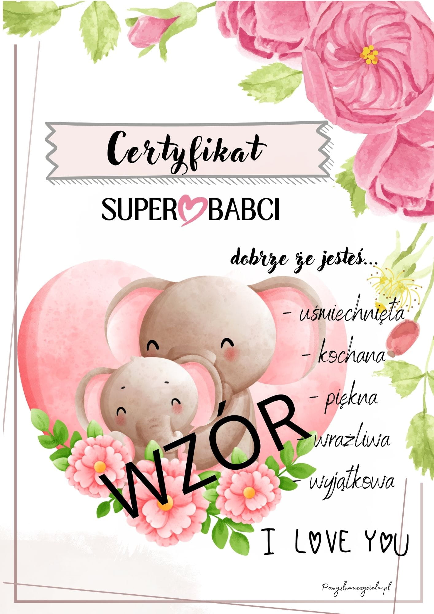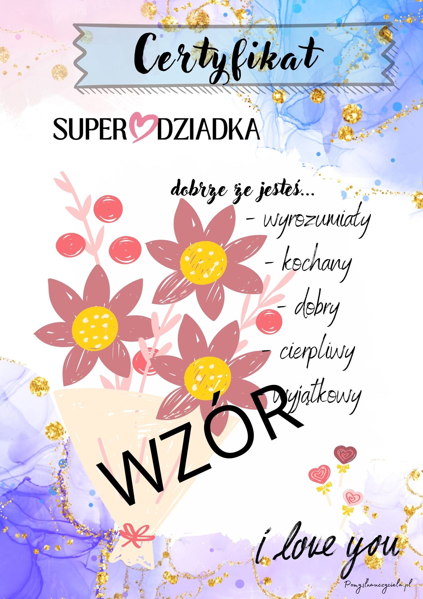 CERTYFIKAT SUPER BABCI I DZIADKA - 6 WZORÓW DWUSTRONNYCH