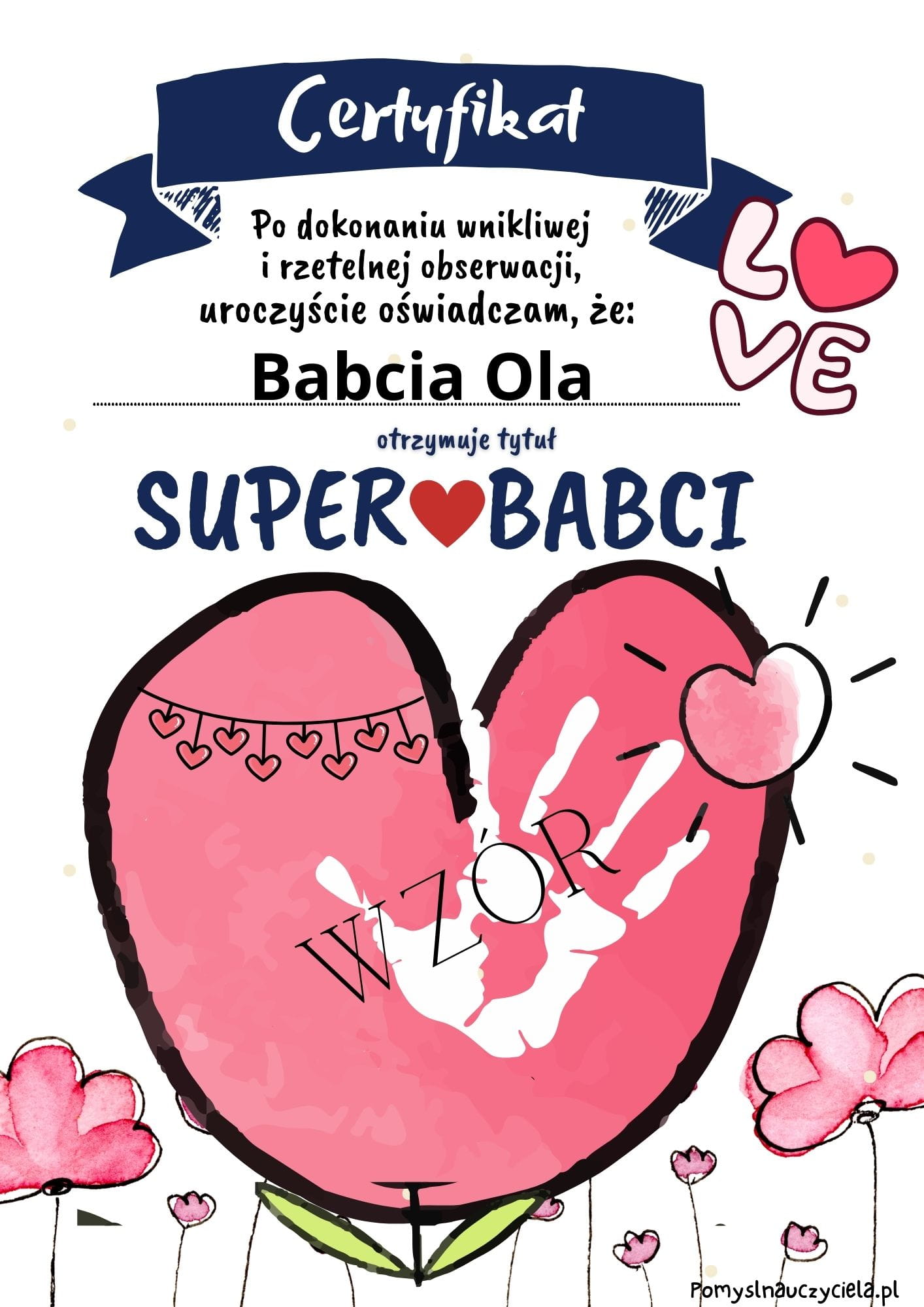 CERTYFIKAT SUPER BABCI I DZIADKA DO ODBICIA RĄCZKI