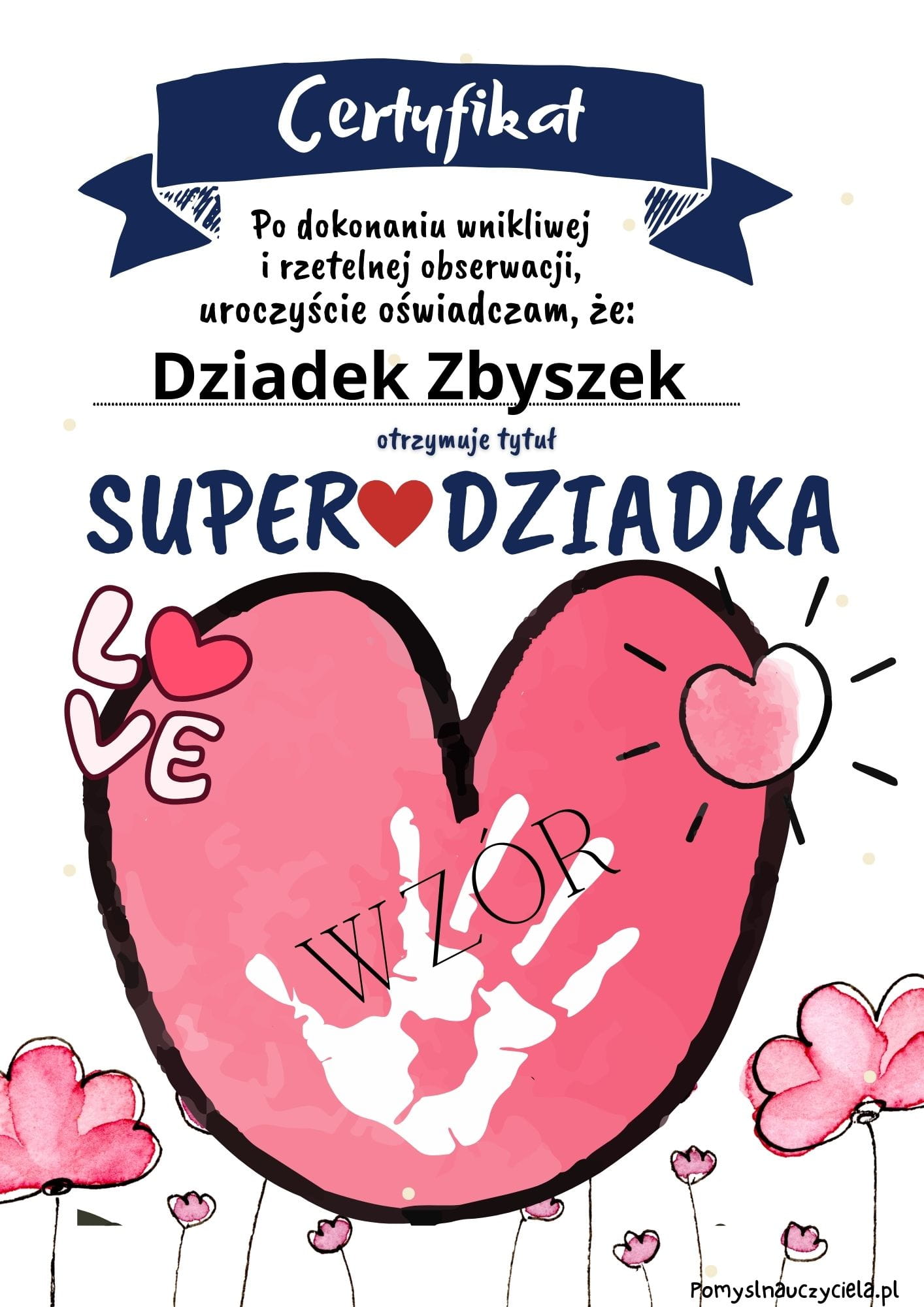 - 2 WZORÓW/A4 CERTYFIKATÓW DLA BABCI I DZIADKA, Z MOŻLIWOŚCIĄ ODBICIA RĄCZKI