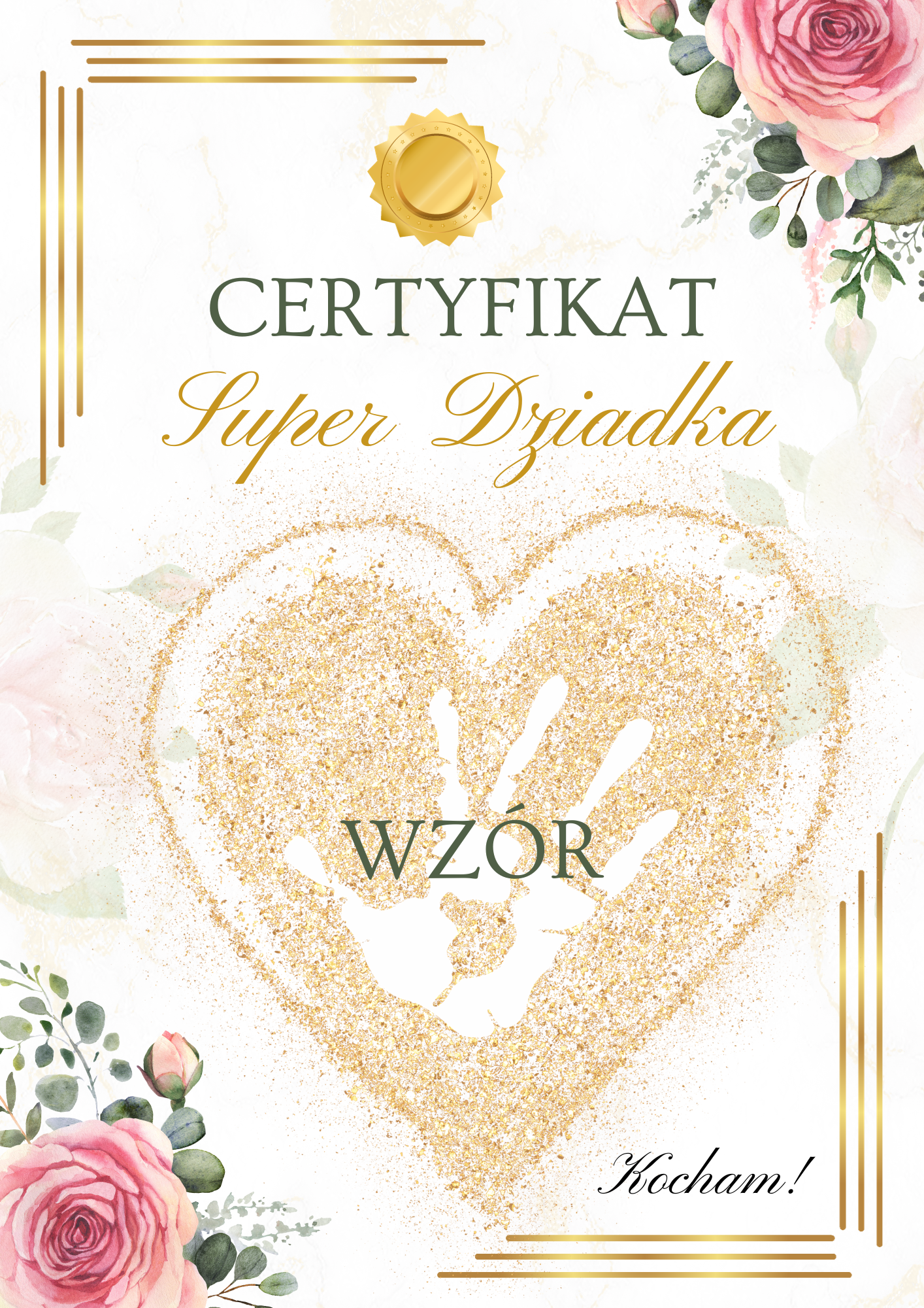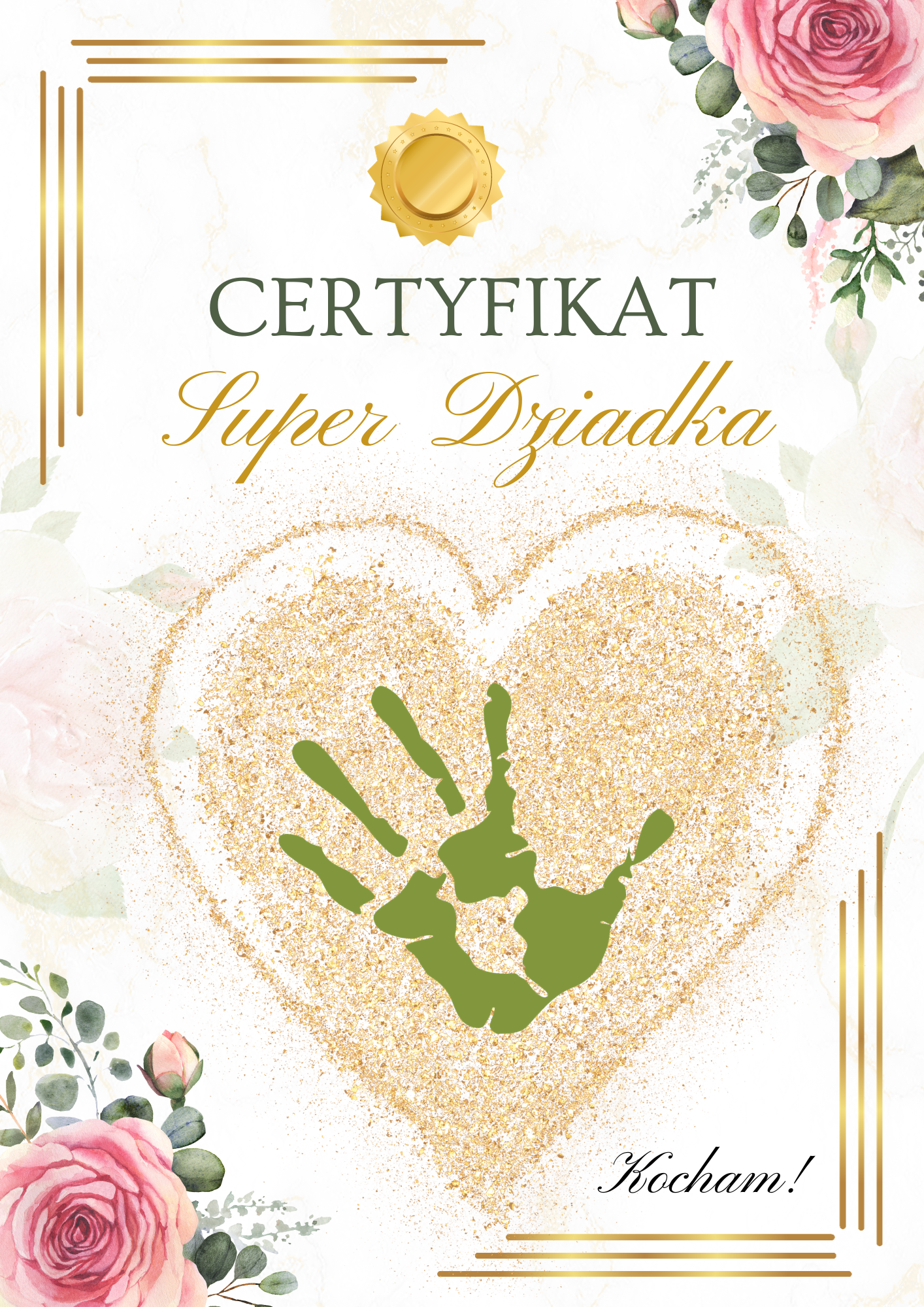 CERTYFIKAT SUPER BABCI I DZIADKA ZE ZŁOTYM SERCEM DO ODBICIA RĄCZKI