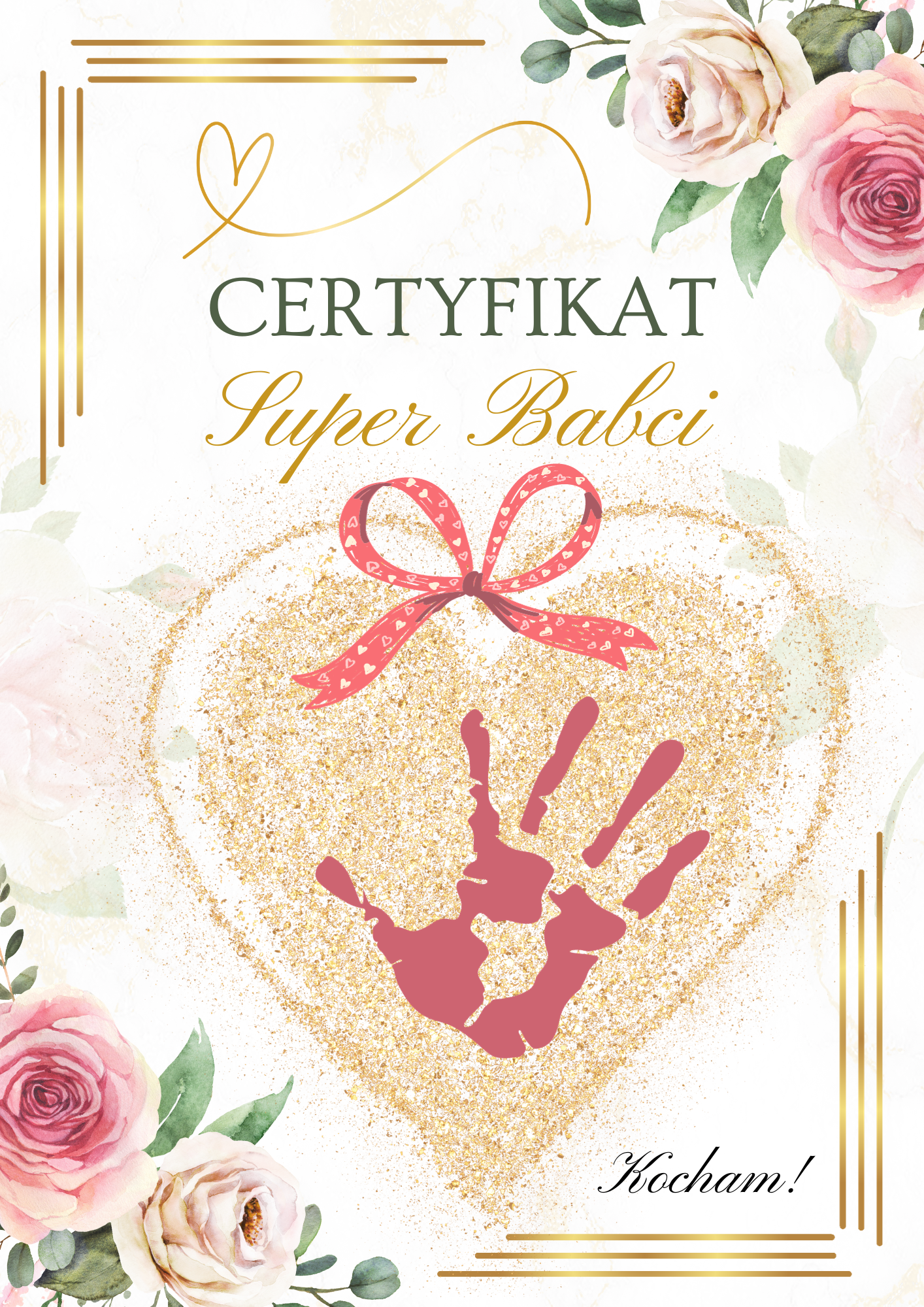 - 2 WZORÓW/A4 CERTYFIKATÓW DLA BABCI I DZIADKA, Z MOŻLIWOŚCIĄ ODBICIA RĄCZKI