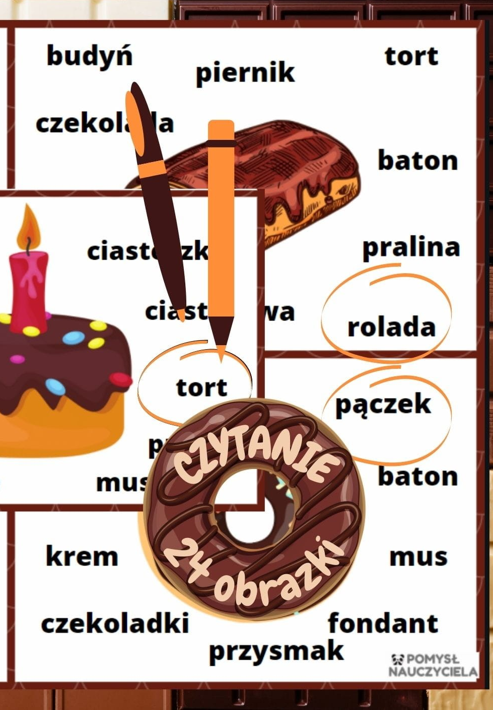 CZYTANIE WYRAZÓW DZIEŃ CZEKOLADY 24 OBRAZKI