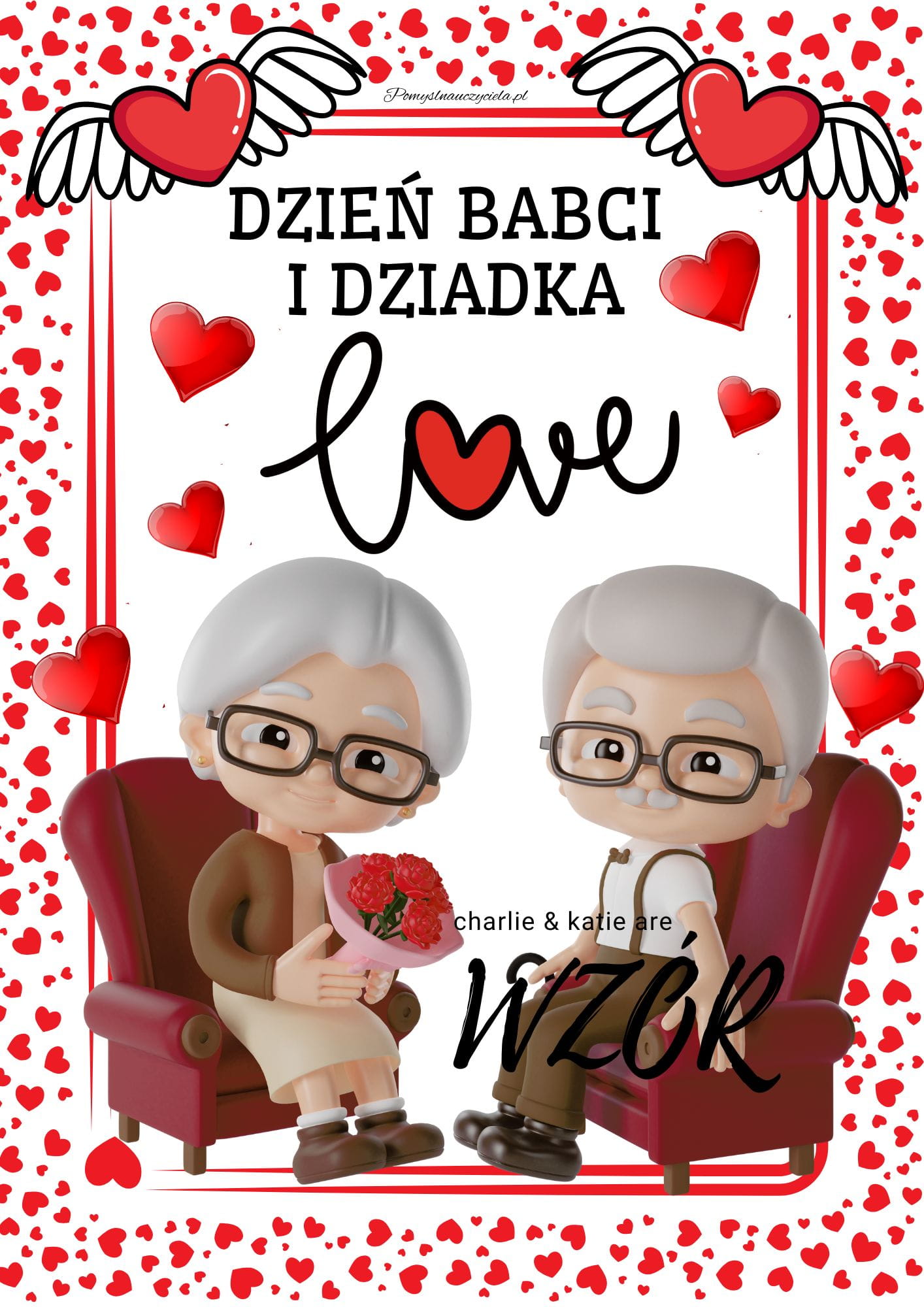 DEKORACJA, PLAKAT DZIEŃ BABCI I DZIADKA LOVE