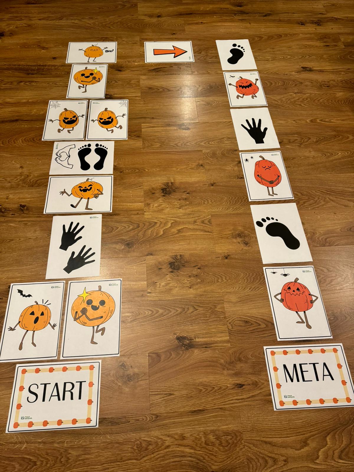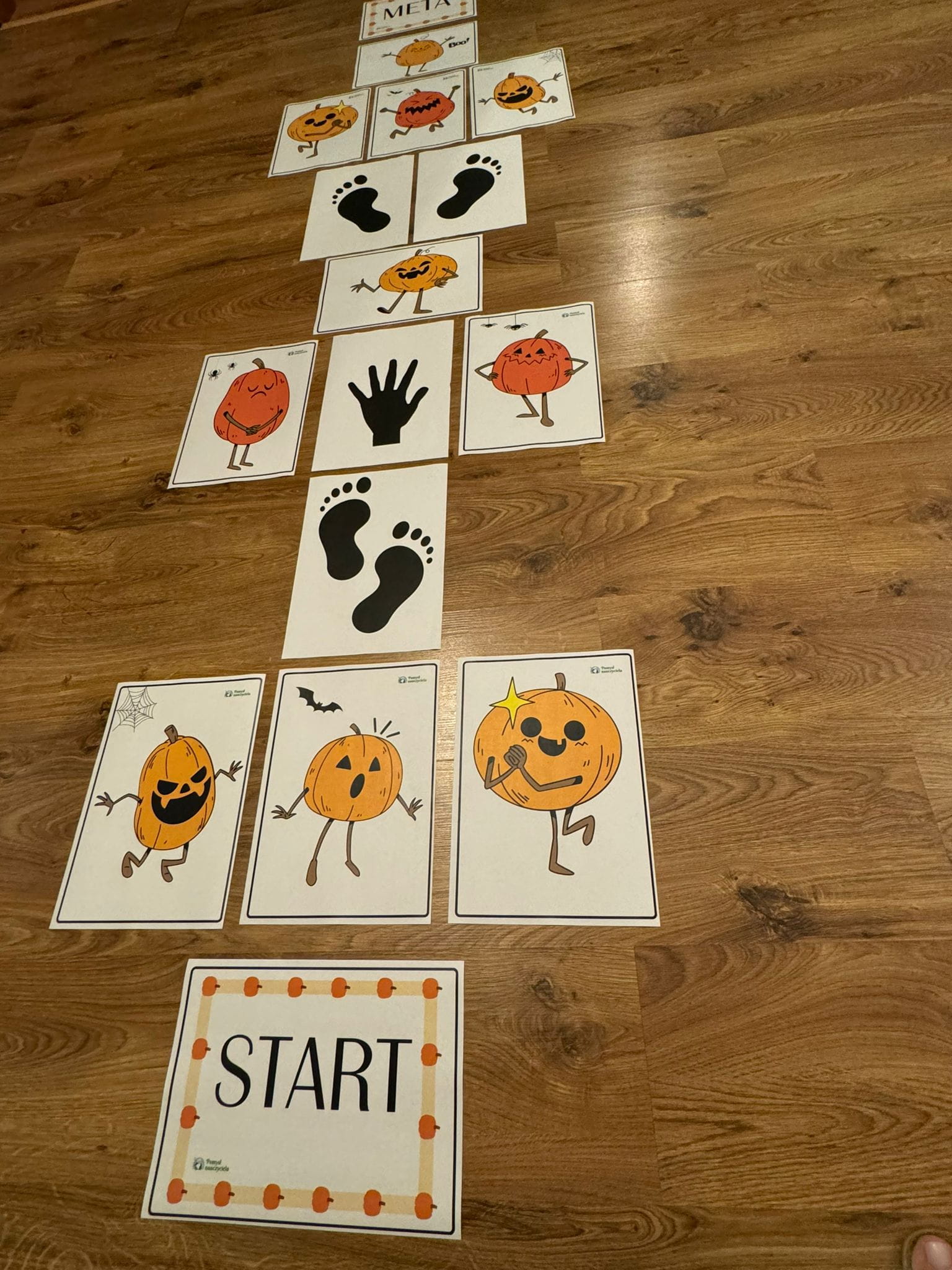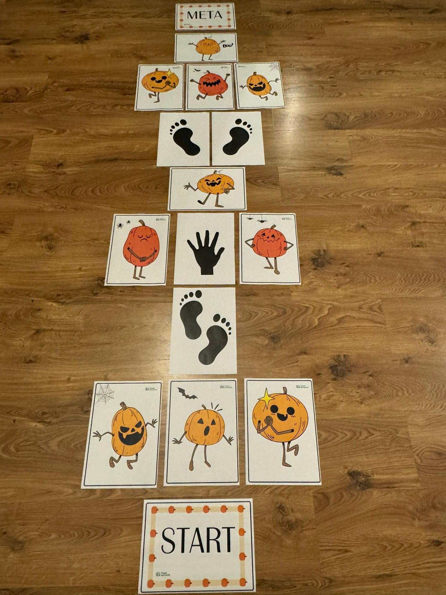 To ciekawa forma zabawy ruchowej angażującej zmysł wzrokowy, orientację w schemacie ciała, percepcję wzrokowo-ruchową. Zabawę można wykorzystać podczas zajęć w Dniu Dyni - ale również podczas codziennych zajęć ruchowych, w celu ich uatrakcyjnienia. Zabawę można prowadzić z całą grupą, w małych zespołach, lub indywidualnie, podczas zajęć korekcyjno - kompensacyjnych. Obrazki należy wydrukować i zalaminować, aby dłużej służyły dzieciom. Projekt posiada piękną grafikę, zachęcającą dzieci do aktywności.