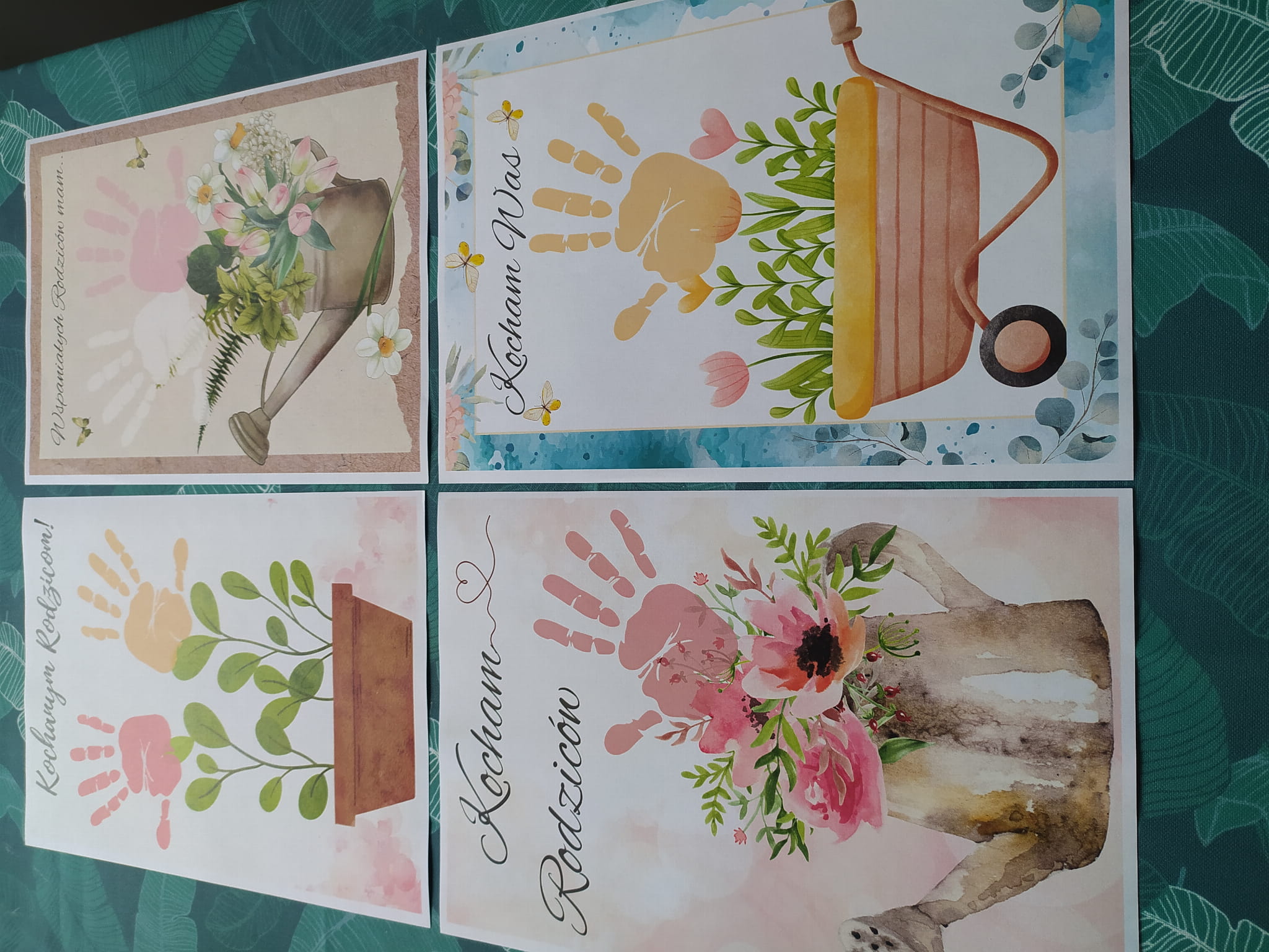 DZIEŃ MAMY I TATY | DYPLOMY - DLA MAMY I TATY ODBIJAMY RĄCZKI Z ZIELONYM MOTYWEM - 4 WZORY