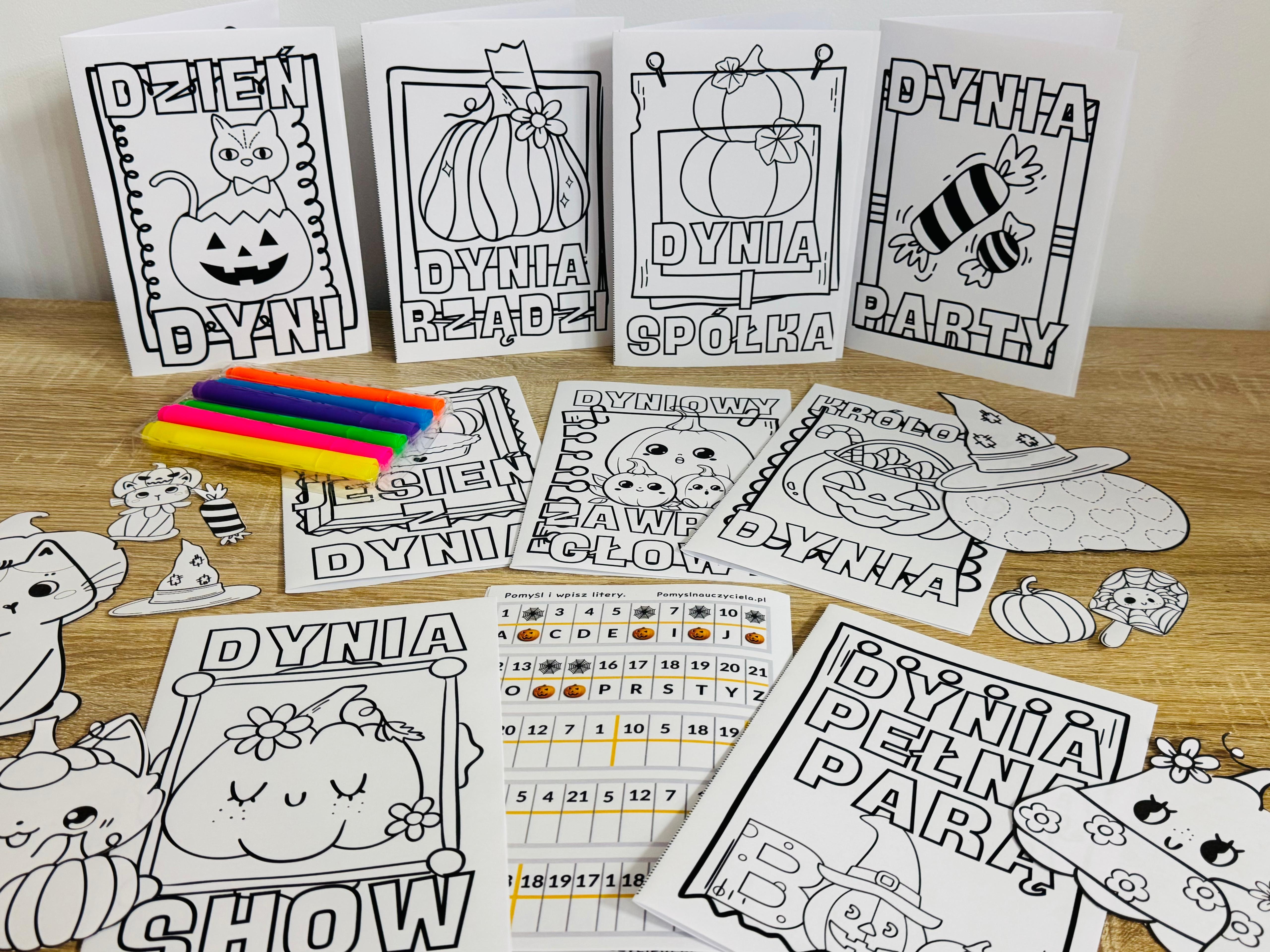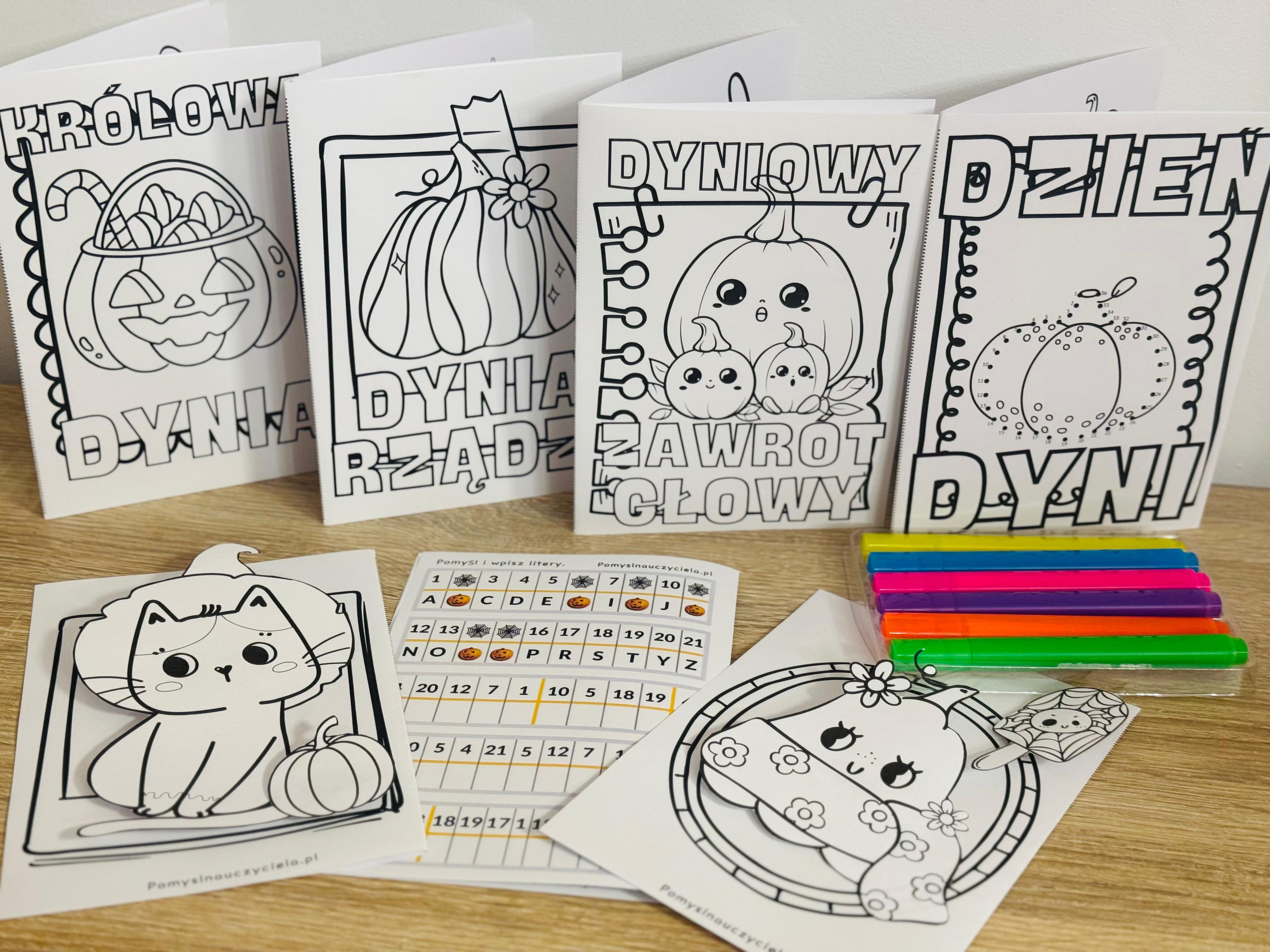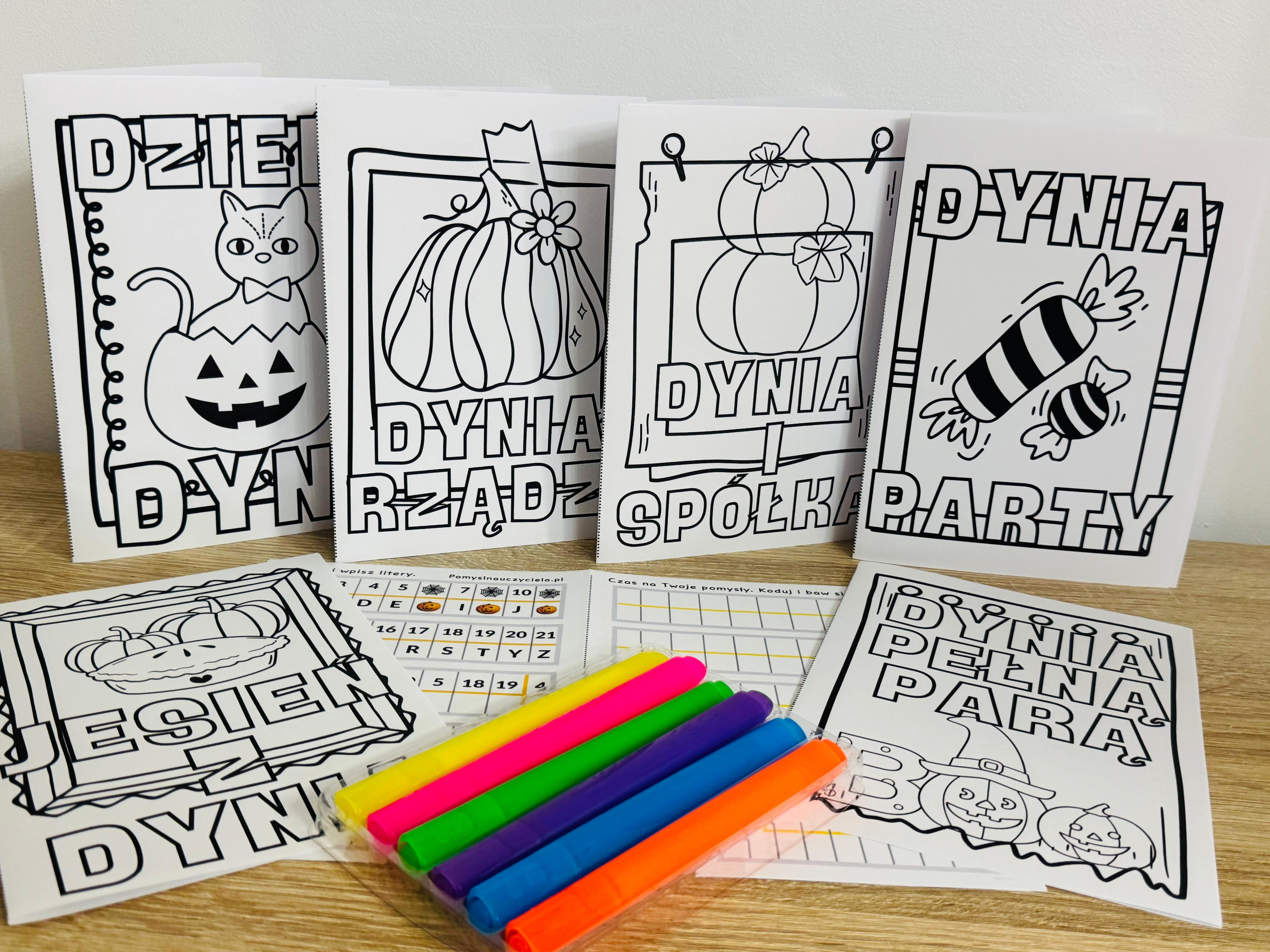 DZIEŃ DYNI KSIĄŻECZKI DWUSTRONNE, KODOWANIE I OBRAZKI DO OZDABIANIA CZ.1 32 STRONY