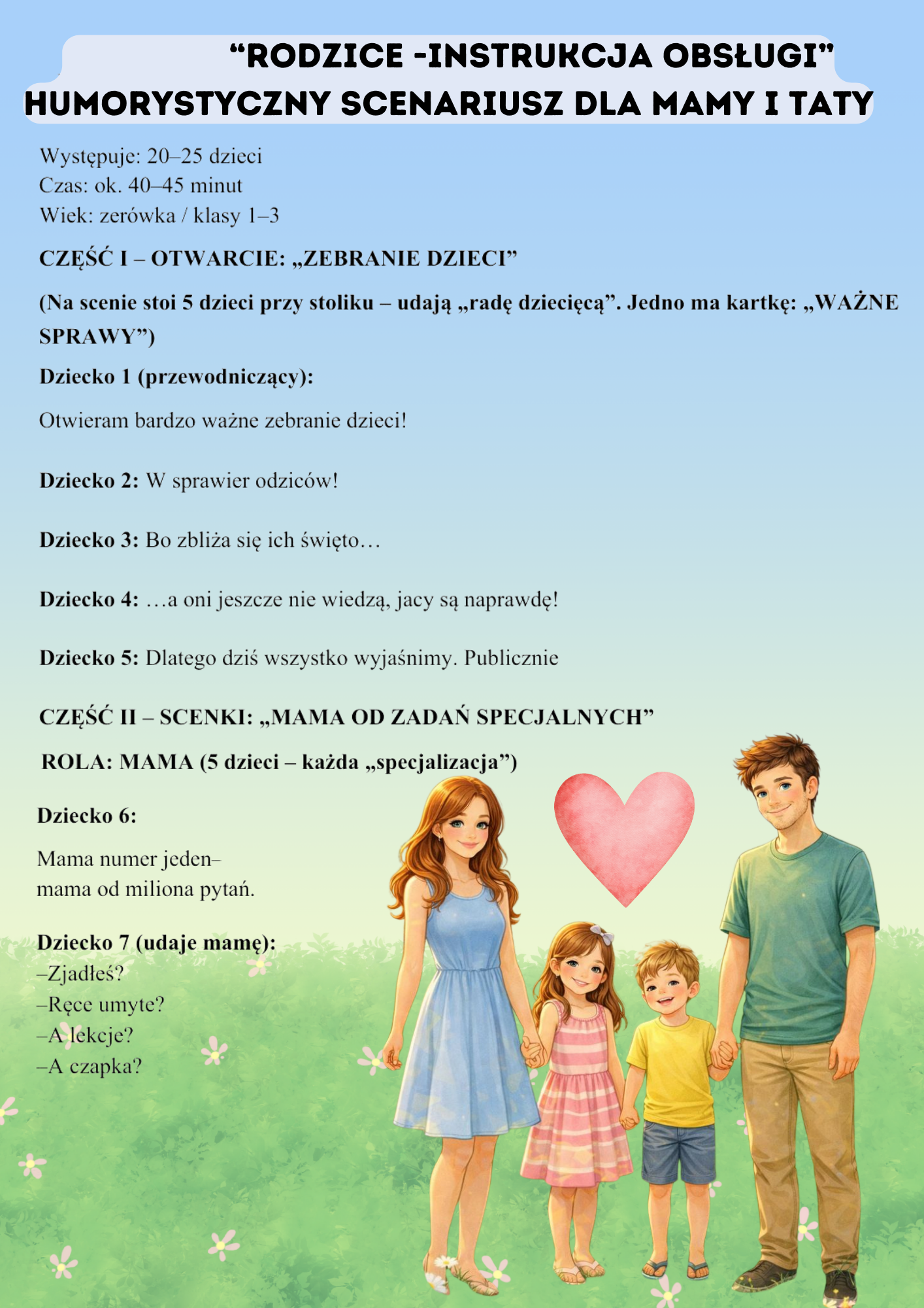 DZIEŃ MAMY I TATY | „RODZICE – INSTRUKCJA OBSŁUGI (WERSJA DZIECIĘCA) Humorystyczny scenariusz na Dzień Mamy i Taty