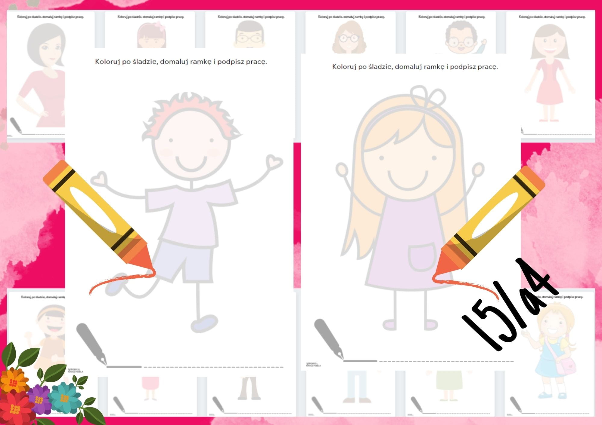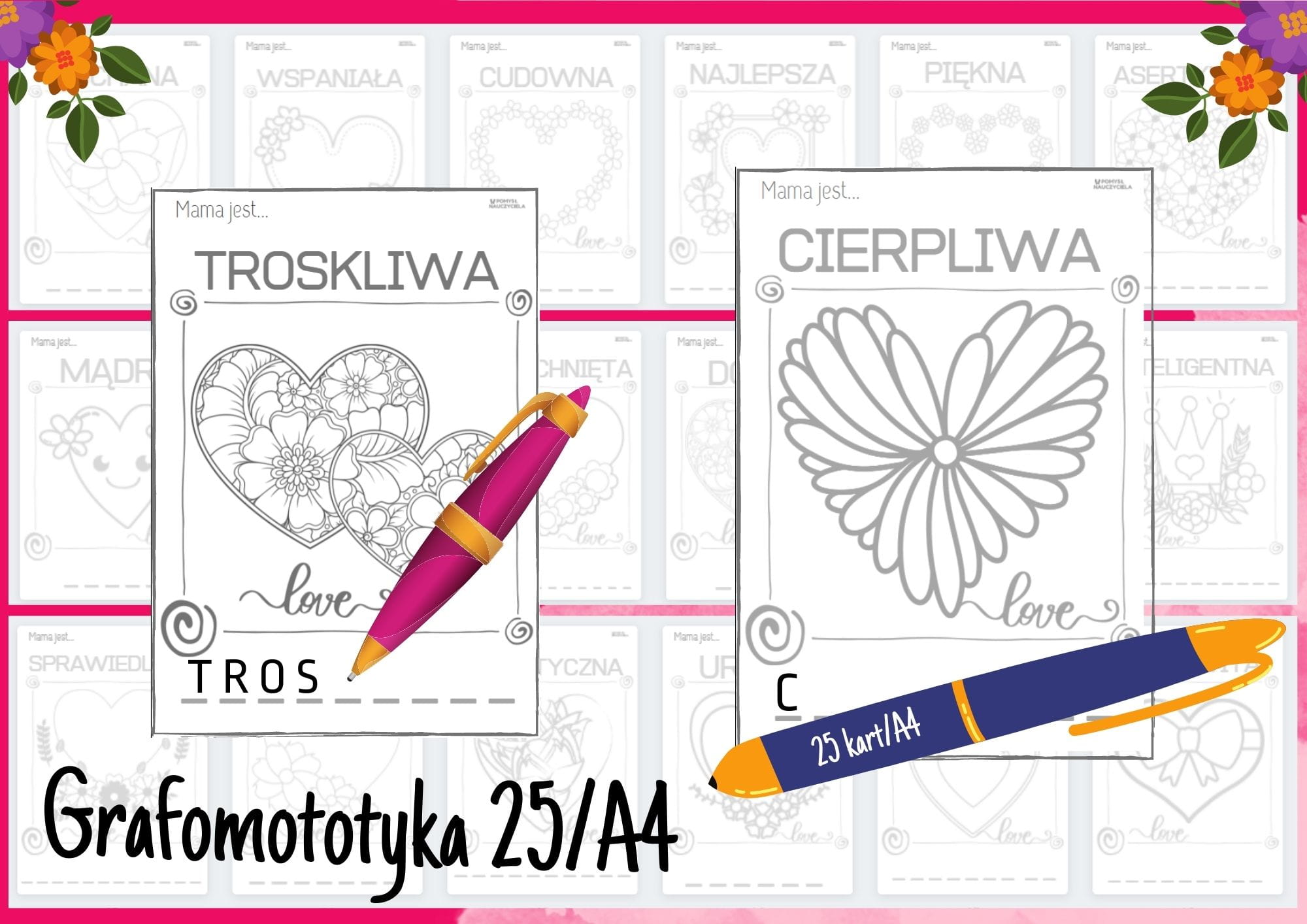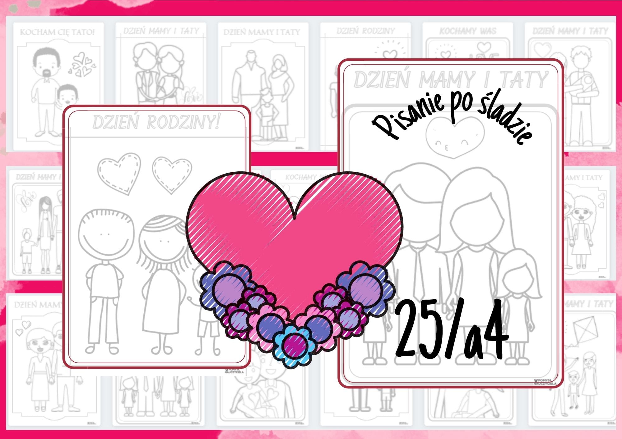 DZIEŃ MAMY I TATY - 4 ZESTAWY KART DO WYCINANIA, KOLOROWANIA + GRAFOMOTORYKA