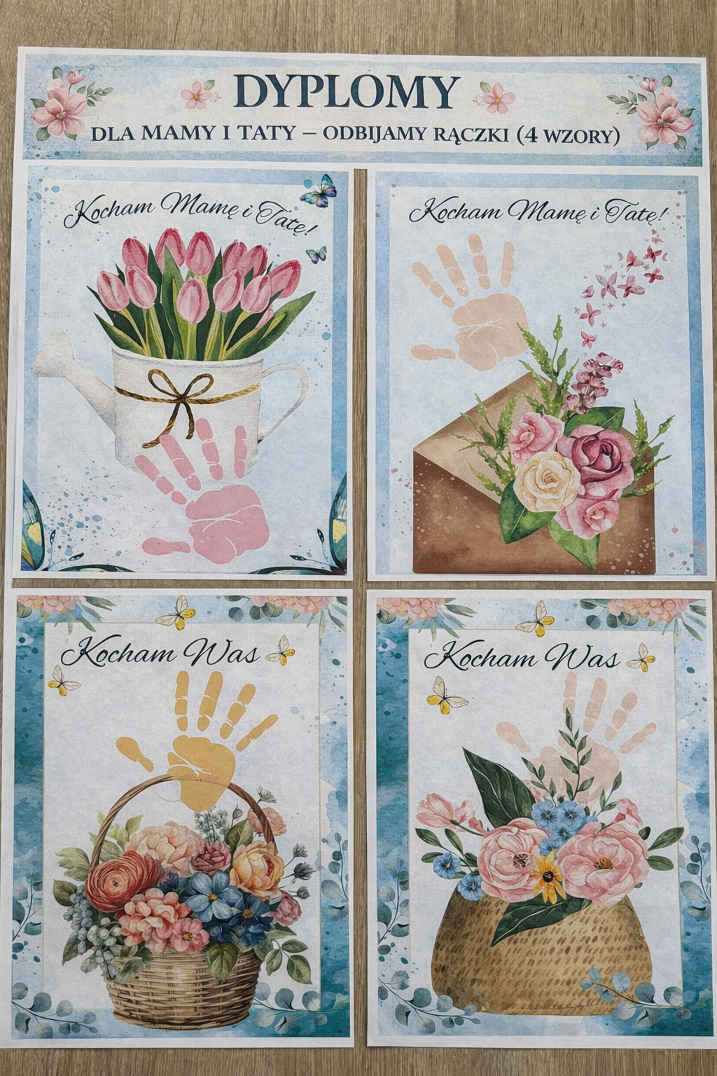 DZIEŃ MAMY I TATY | DYPLOMY - DLA MAMY I TATY ODBIJAMY RĄCZKI Z ZIELONYM MOTYWEM - 4 WZORY