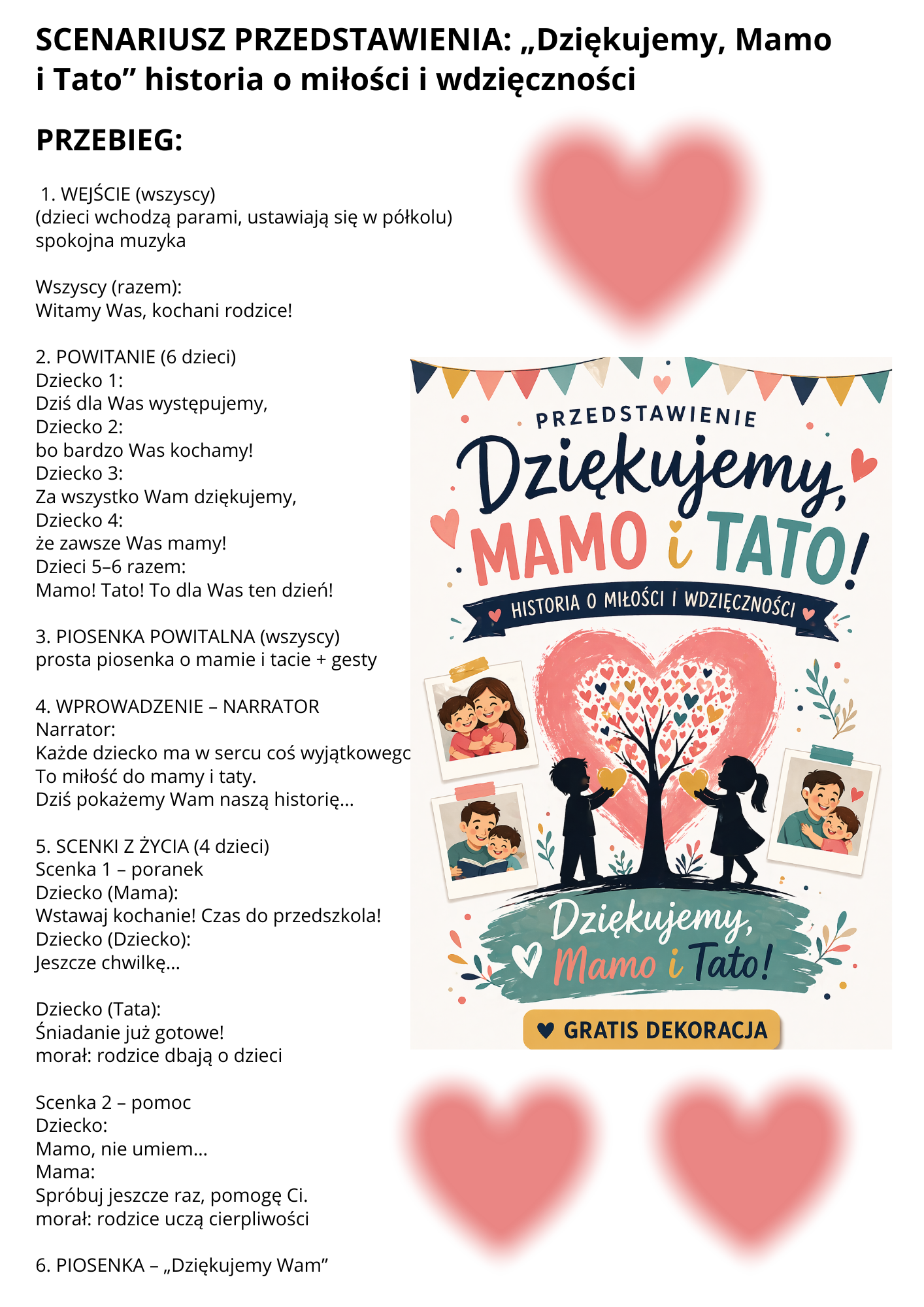 DZIEŃ MAMY I TATY | SCENARIUSZ UROCZYSTOSCI DZIĘKUJEMY MAMO I TATO + DEKORACJA XXL GRATIS - 27 STRON