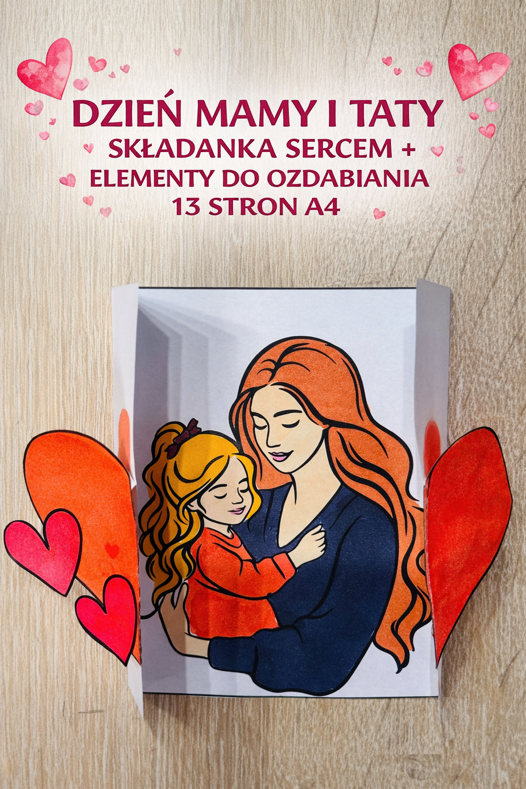 DZIEŃ MAMY I TATY SKŁADANKA SERCEM + ELEMENTY DO OZDABIANIA 13 STRON