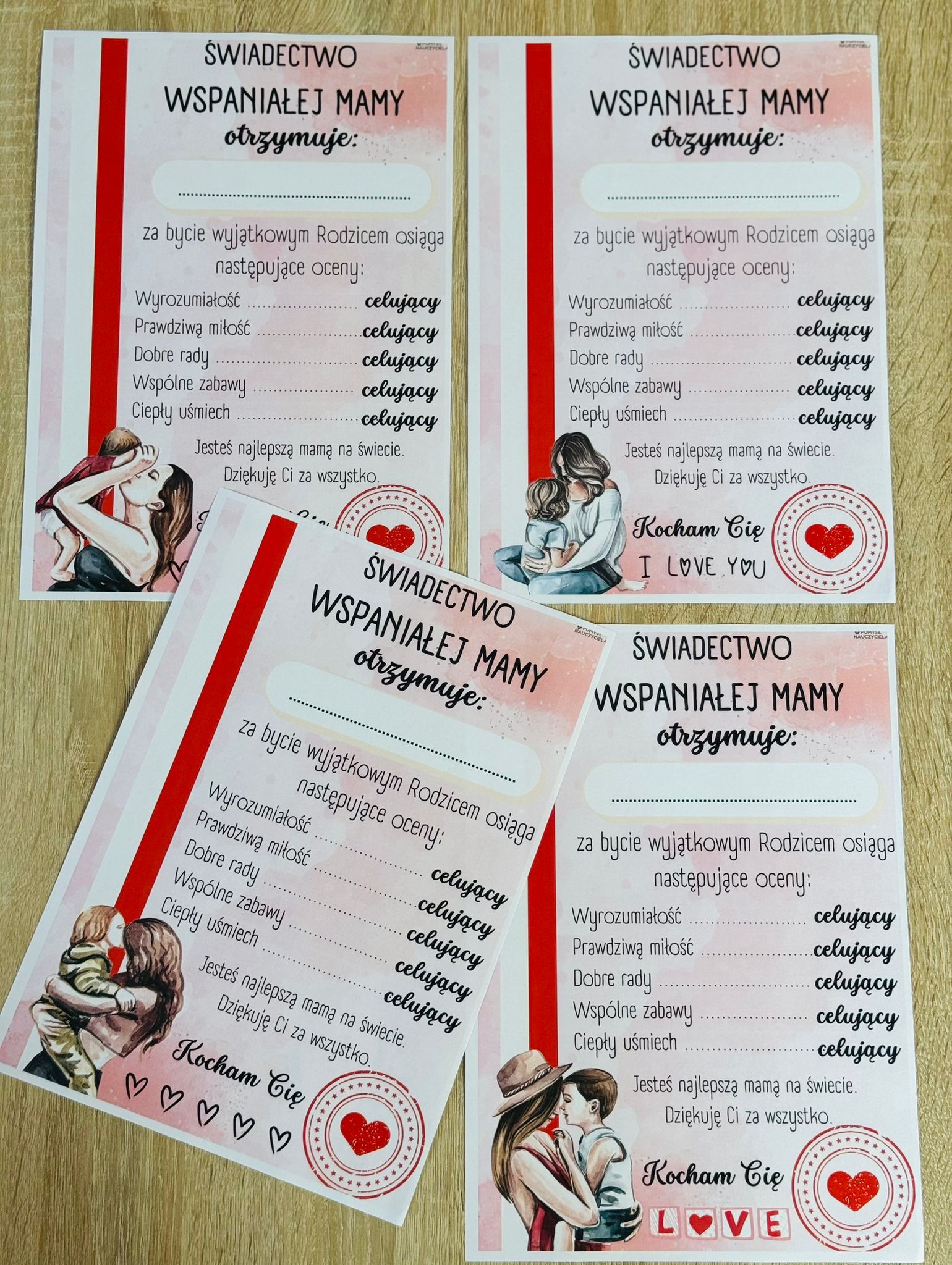 ŚWIADECTWO WSPANIAŁEJ MAMY 5X WZORÓW