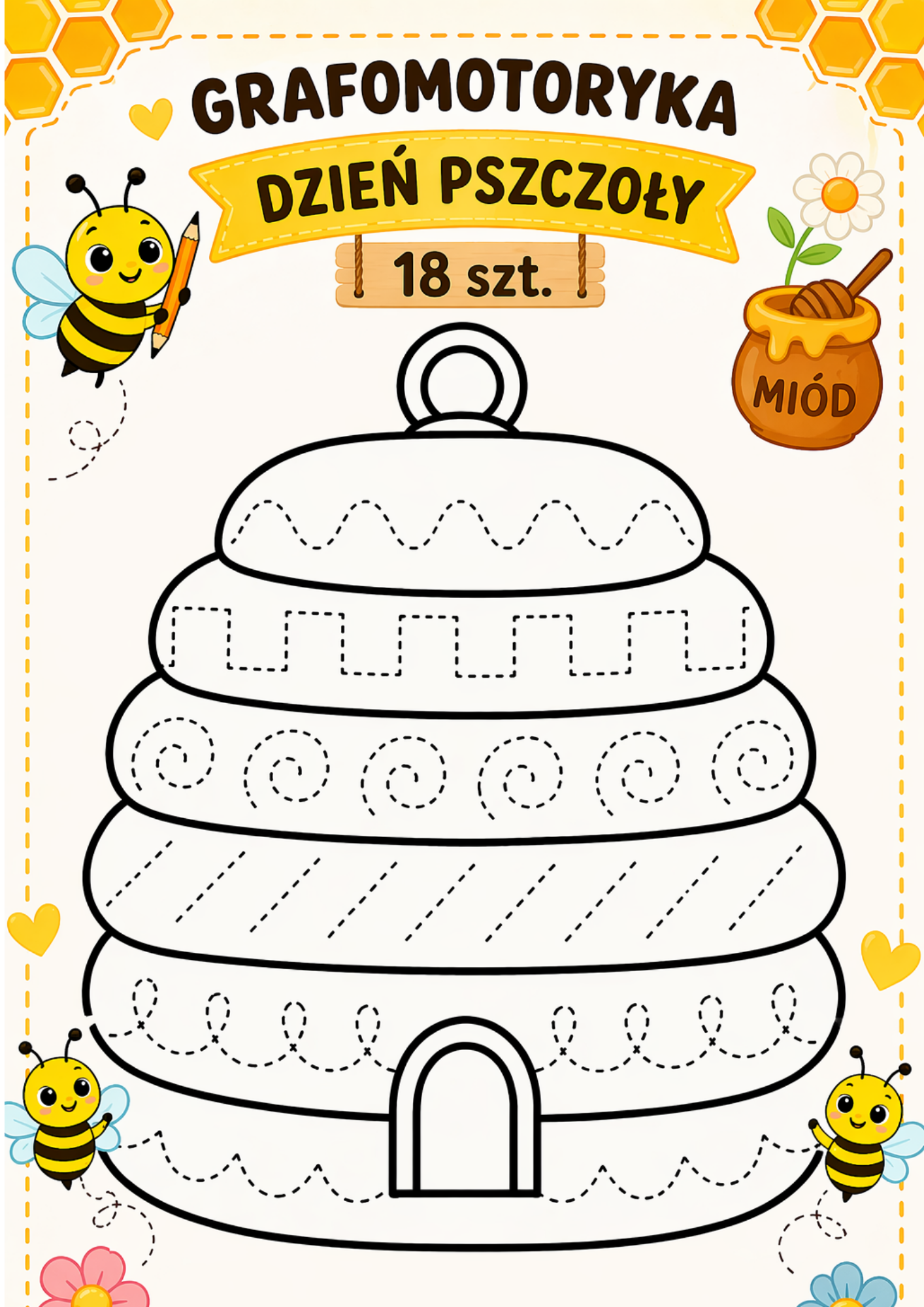 DZIEŃ PSZCZOŁY GRAFOMOTORYKA 18 SZTUK