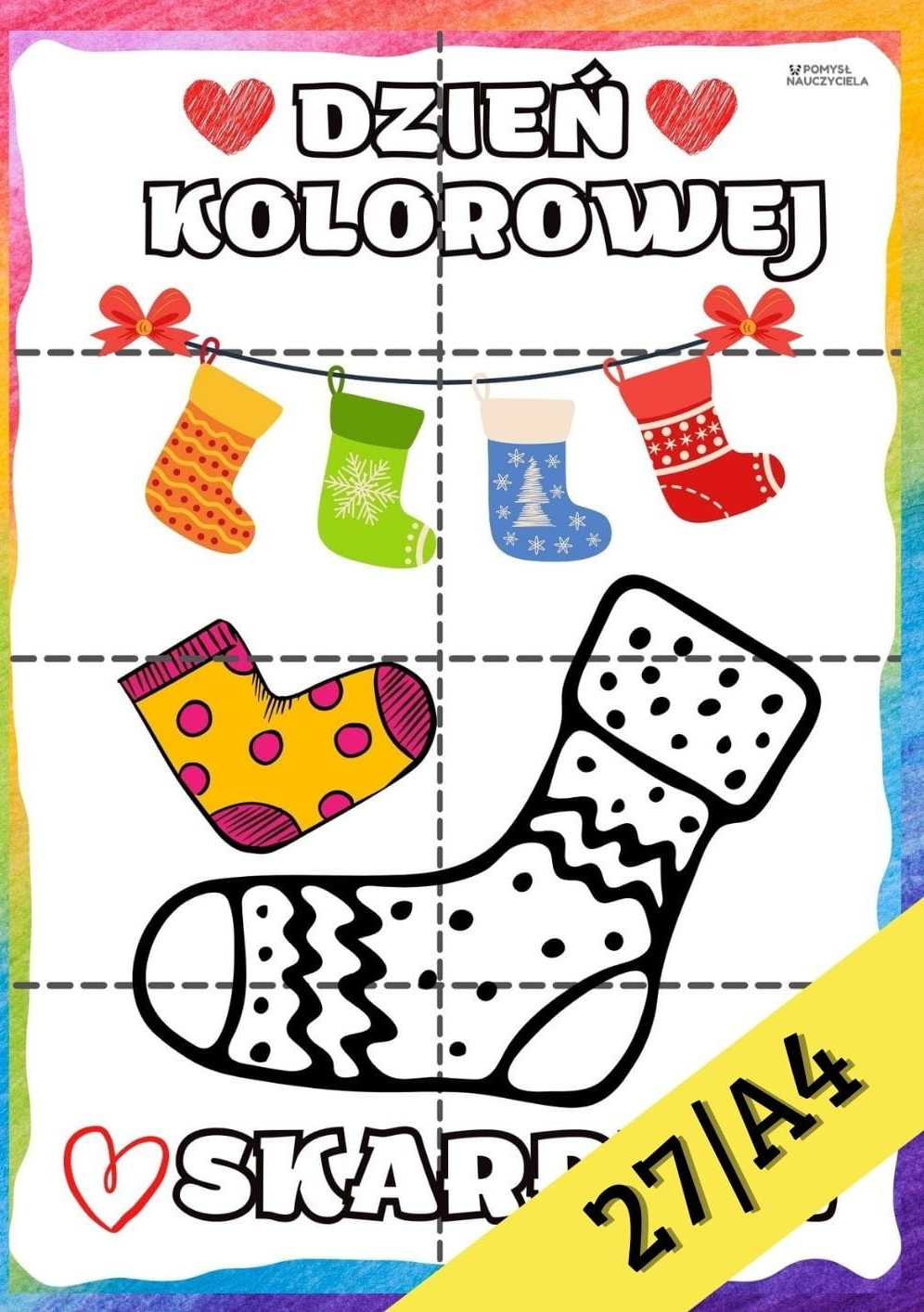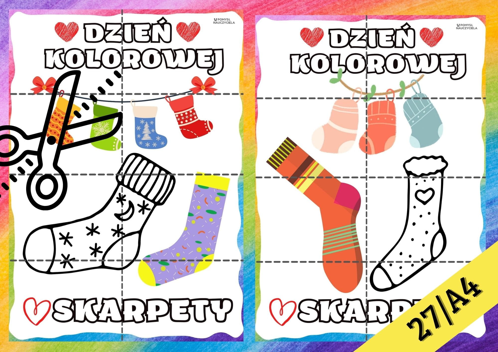 DZIEŃ SKARPETKI- PRACA PLASTYCZNA Z WYCINANIEM 27/A4