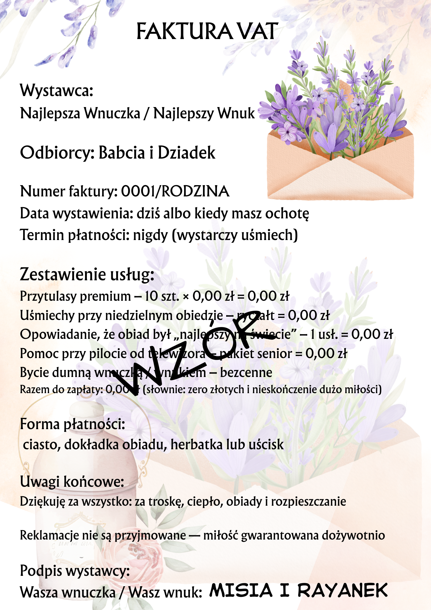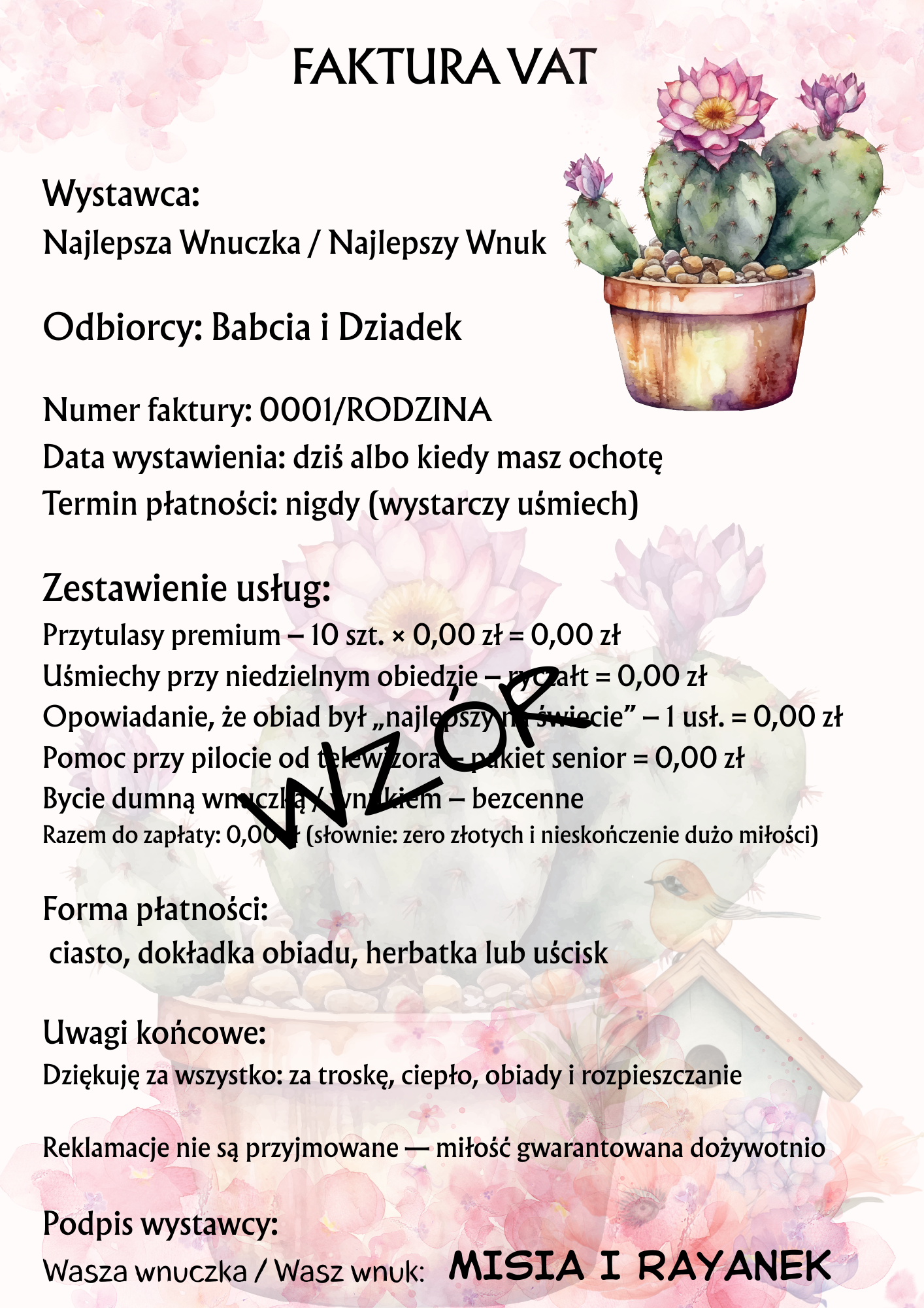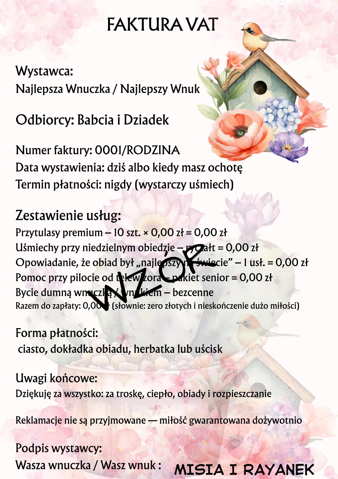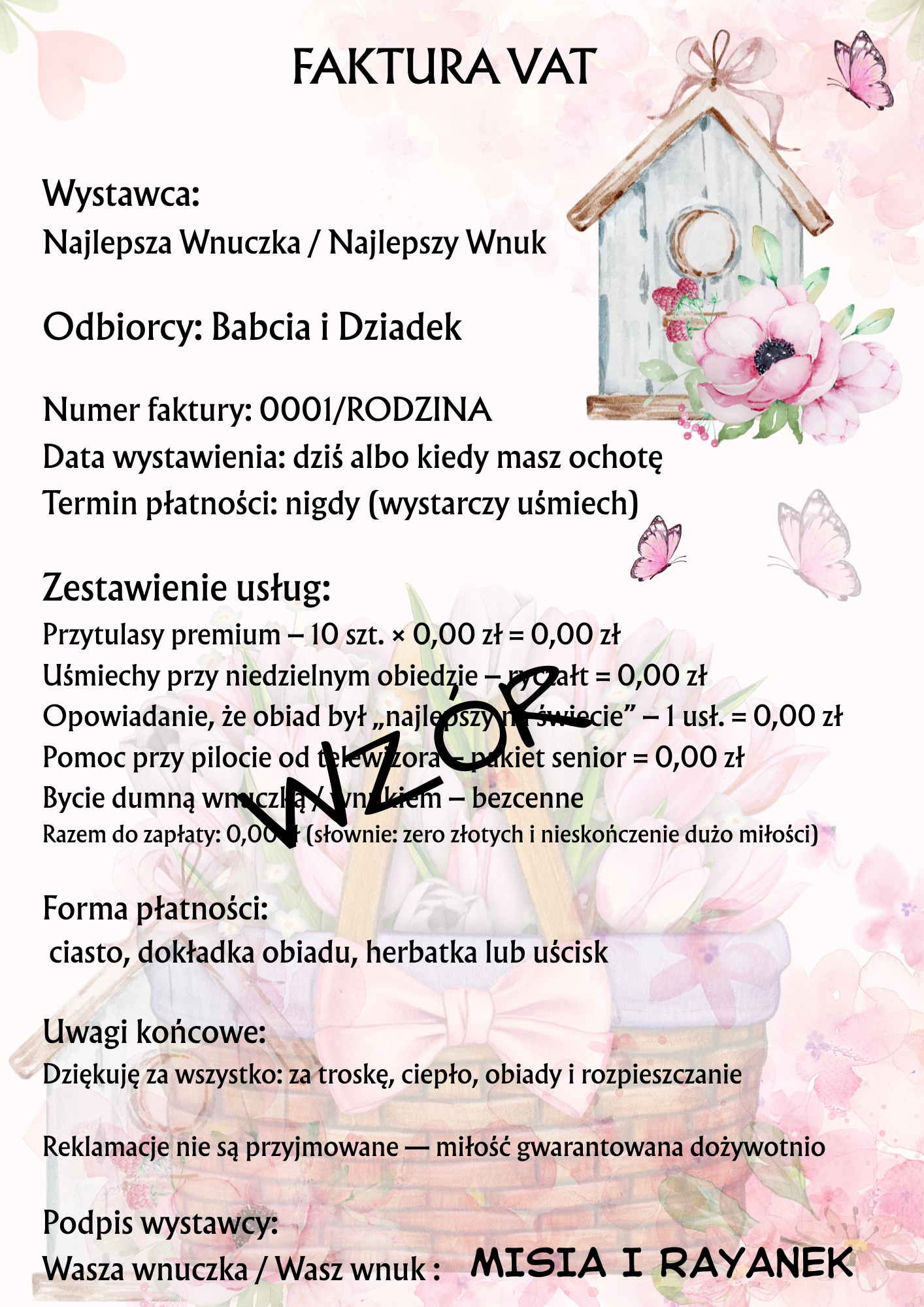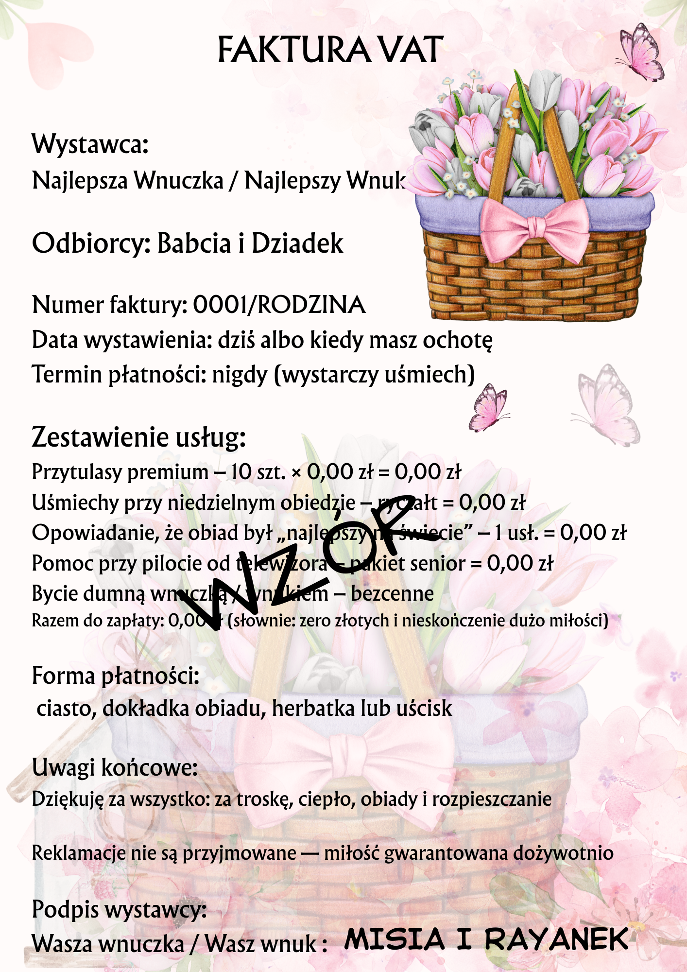 FAKTURA VAT DLA BABCI I DZIADKA 5 WZORÓW