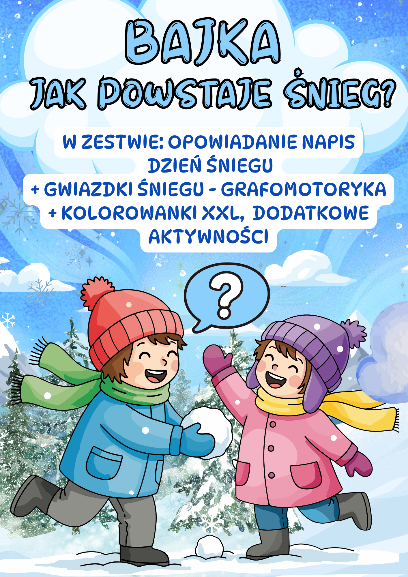 JAK POWSTAJE ŚNIEG - BAJKA I INNE AKTYWNOŚCI + GRAFOMOTORYKA GWIAZDKI ŚNIEGOWE + NAPIS DZIEŃ ŚNIEGU 66 STRON