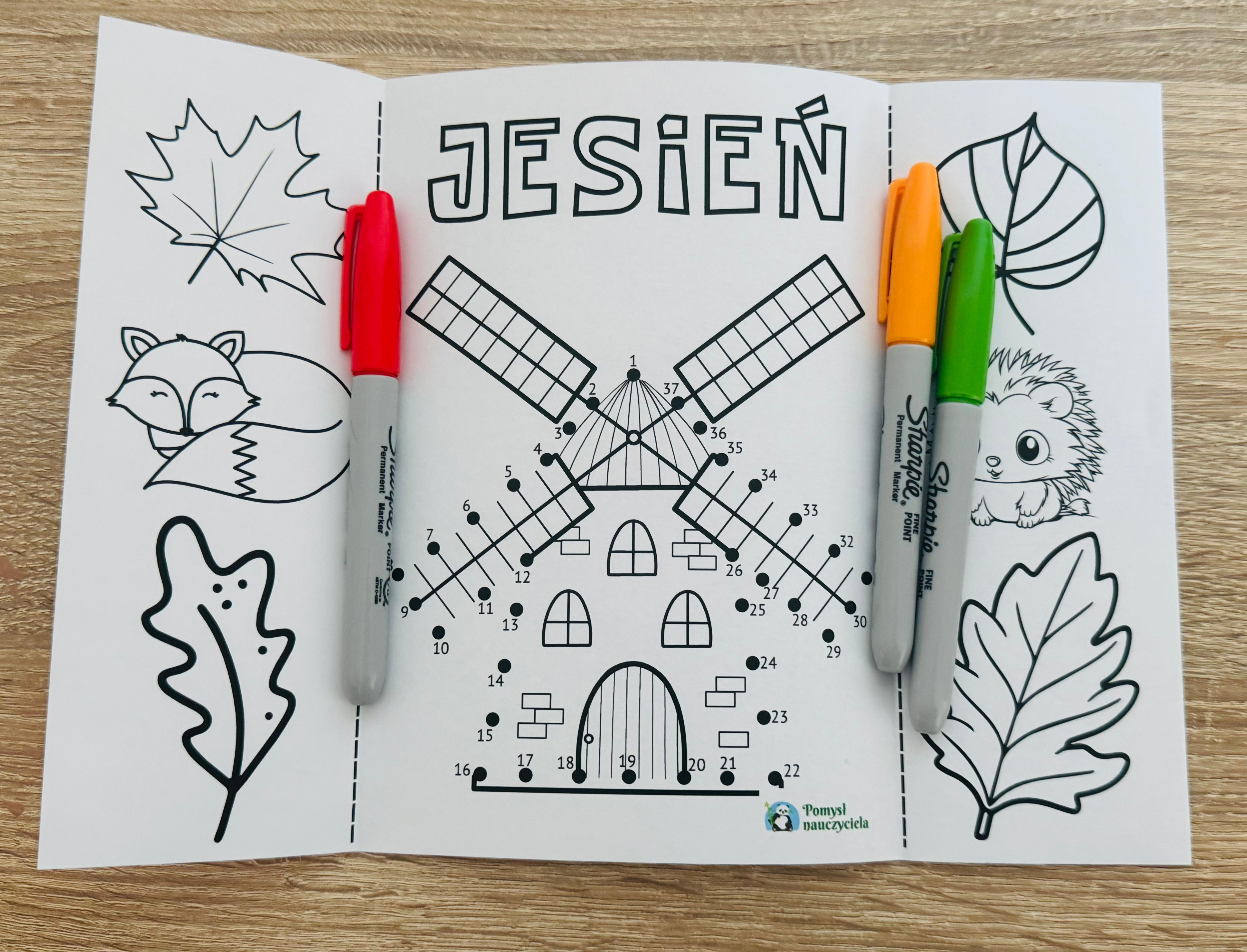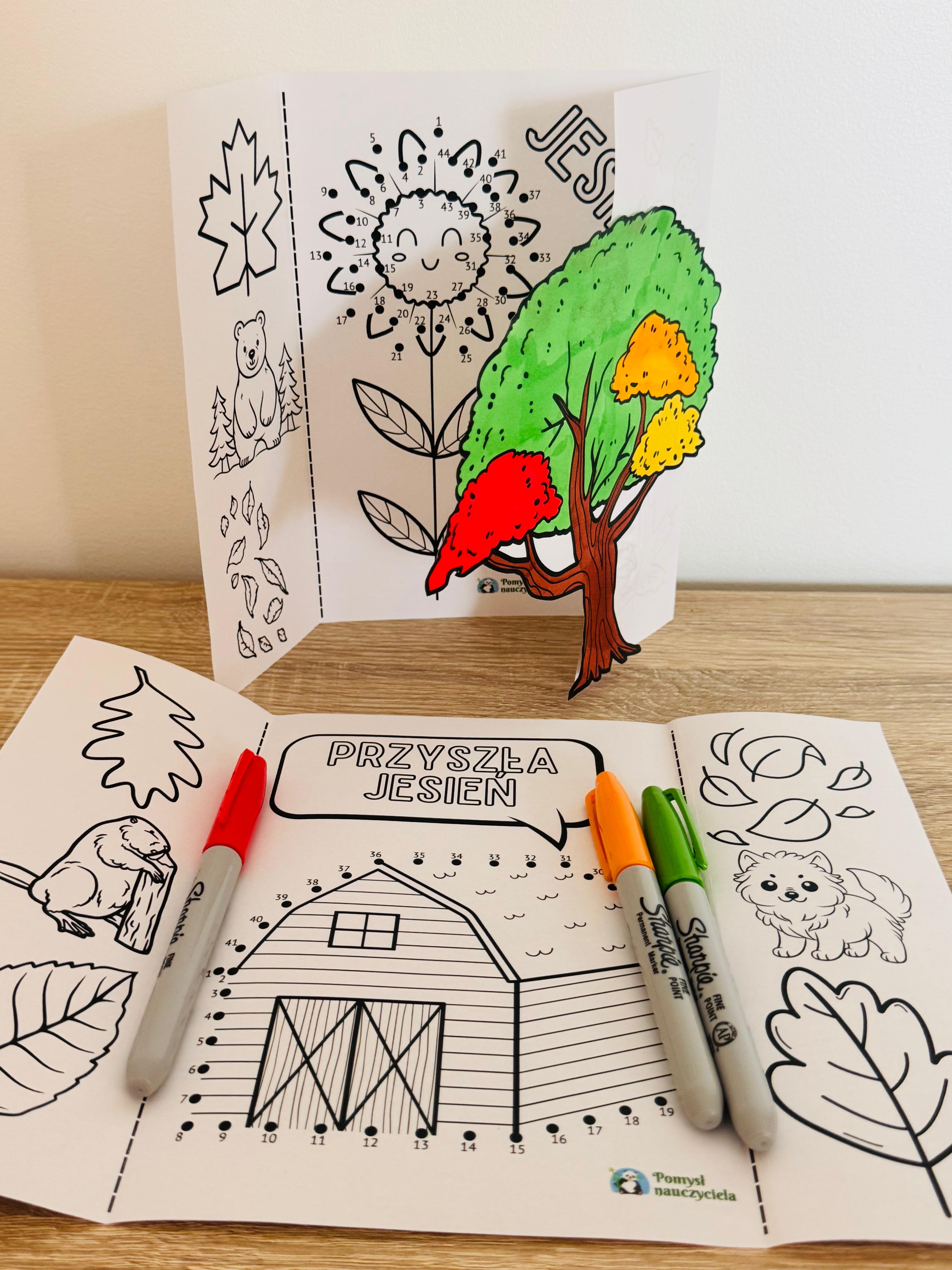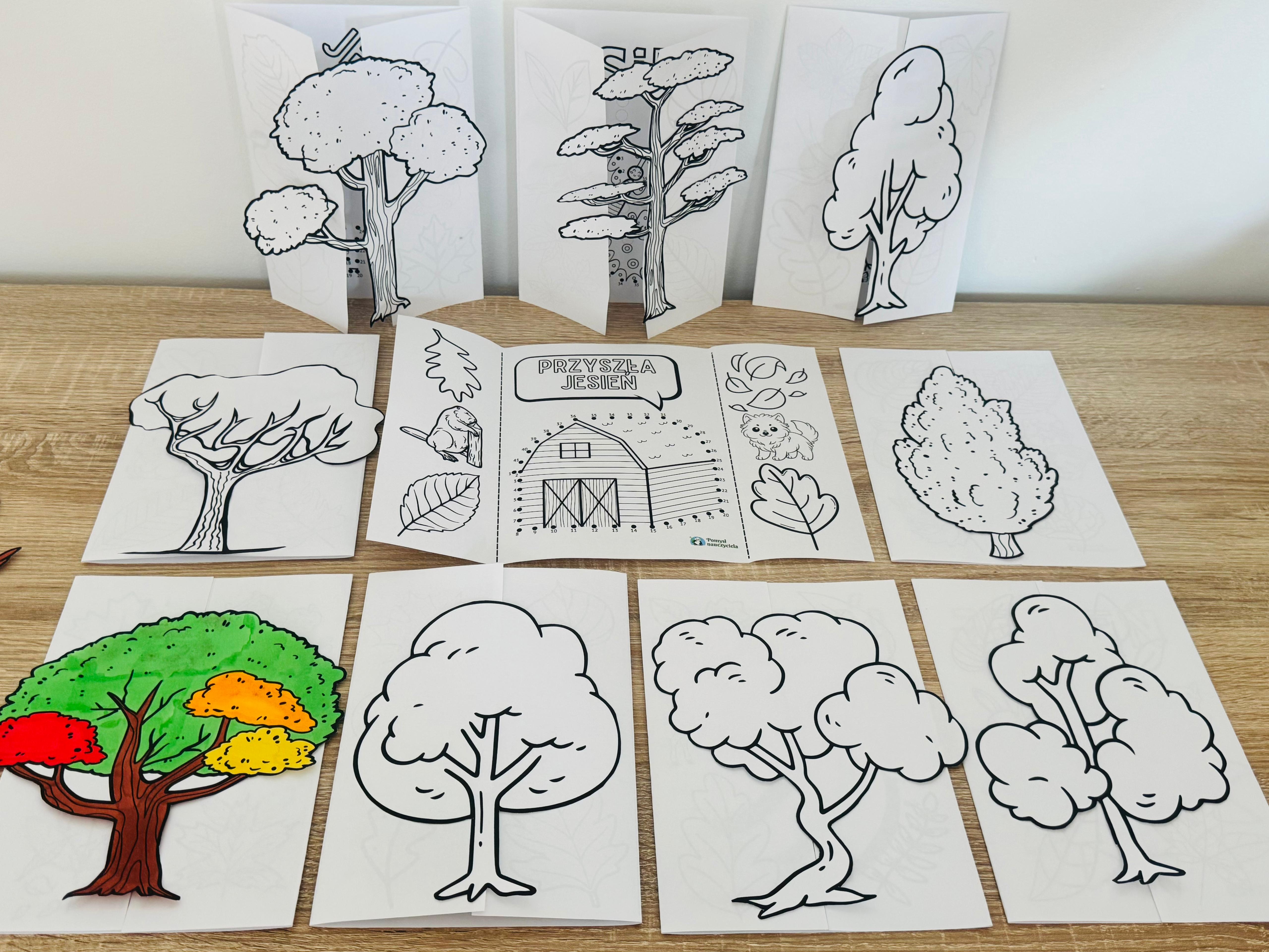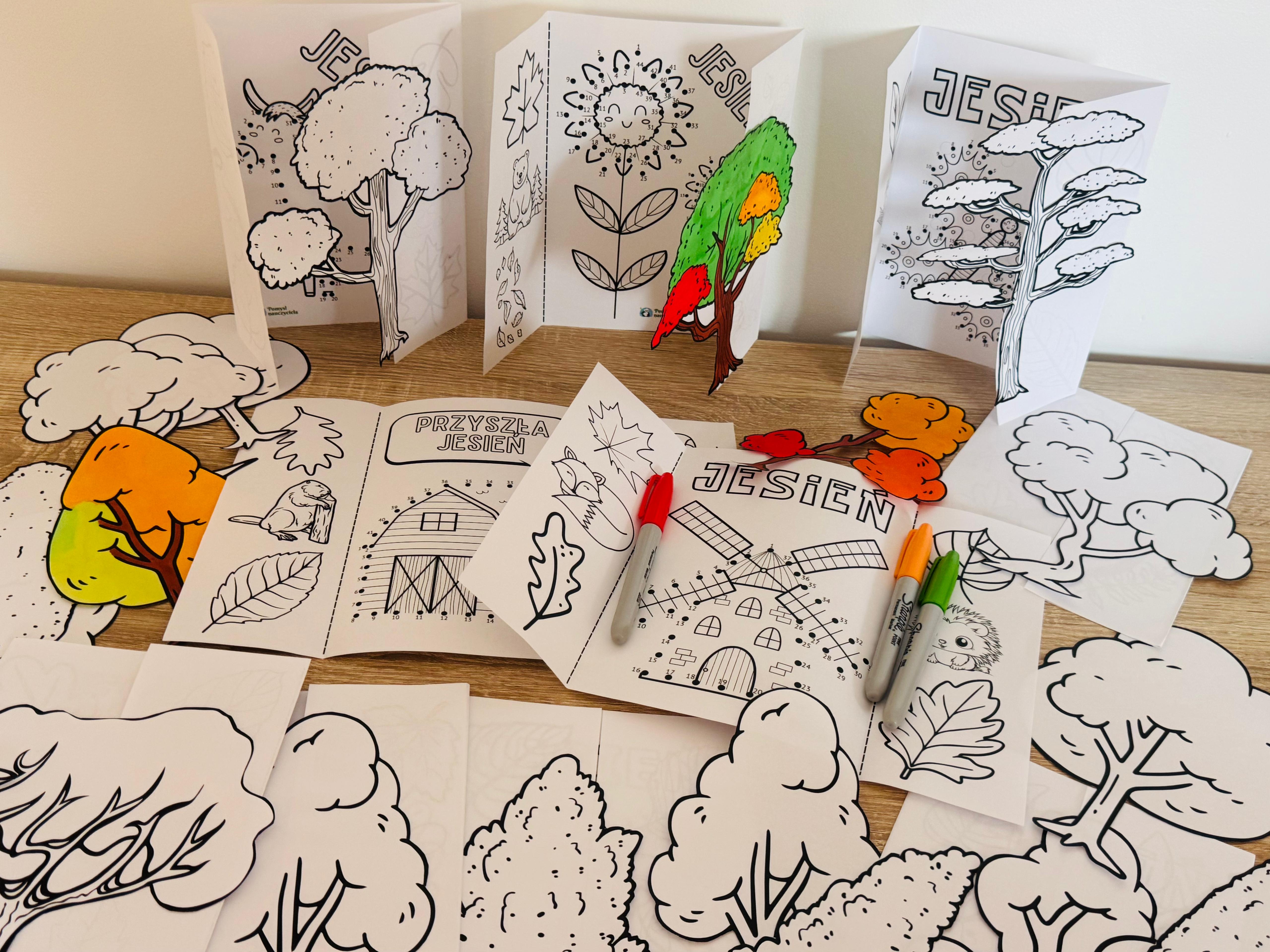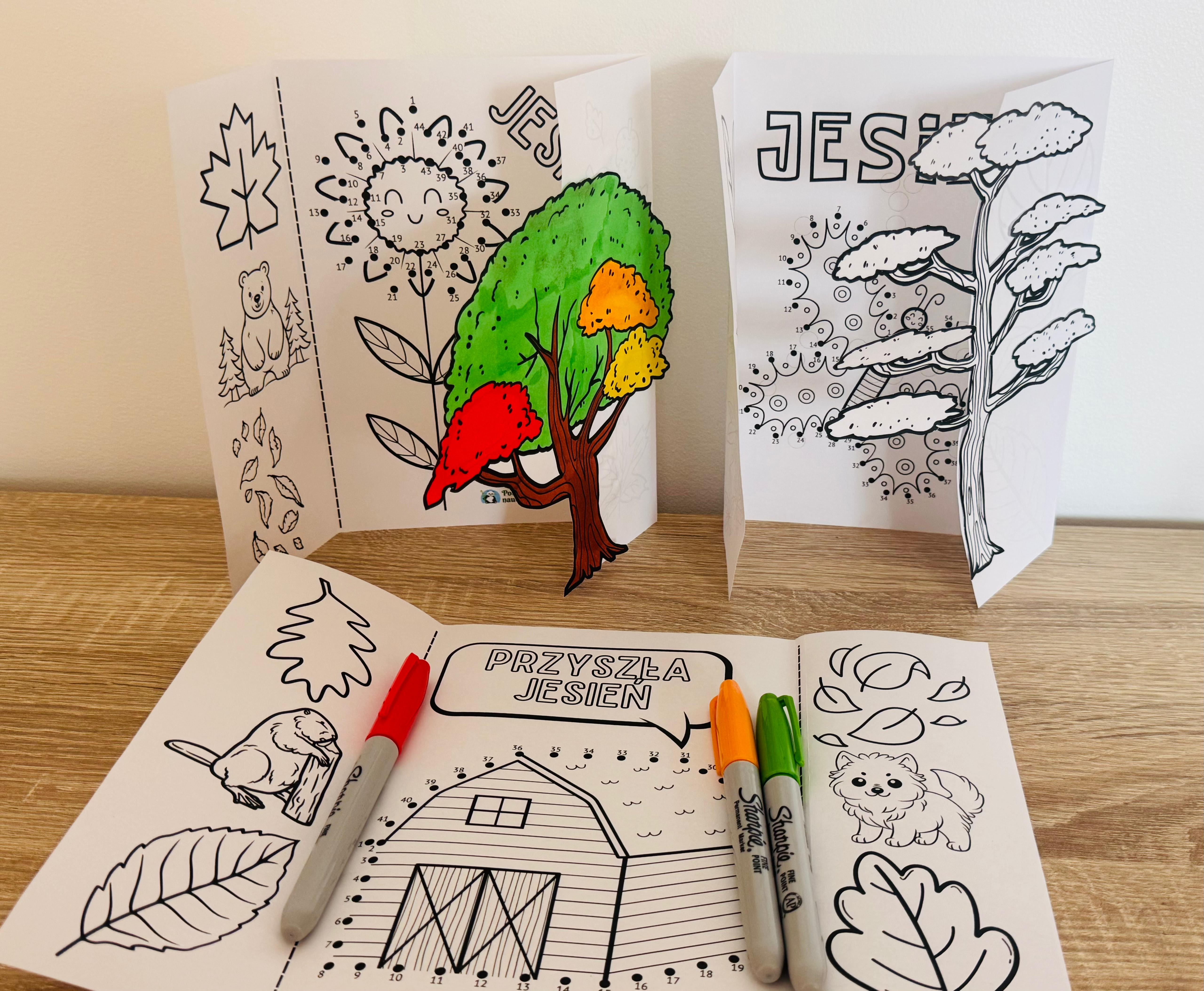 JESIEŃ DRZEWA ŁĄCZENIE CYFR - KSIĄŻECZKI + OBRAZKI