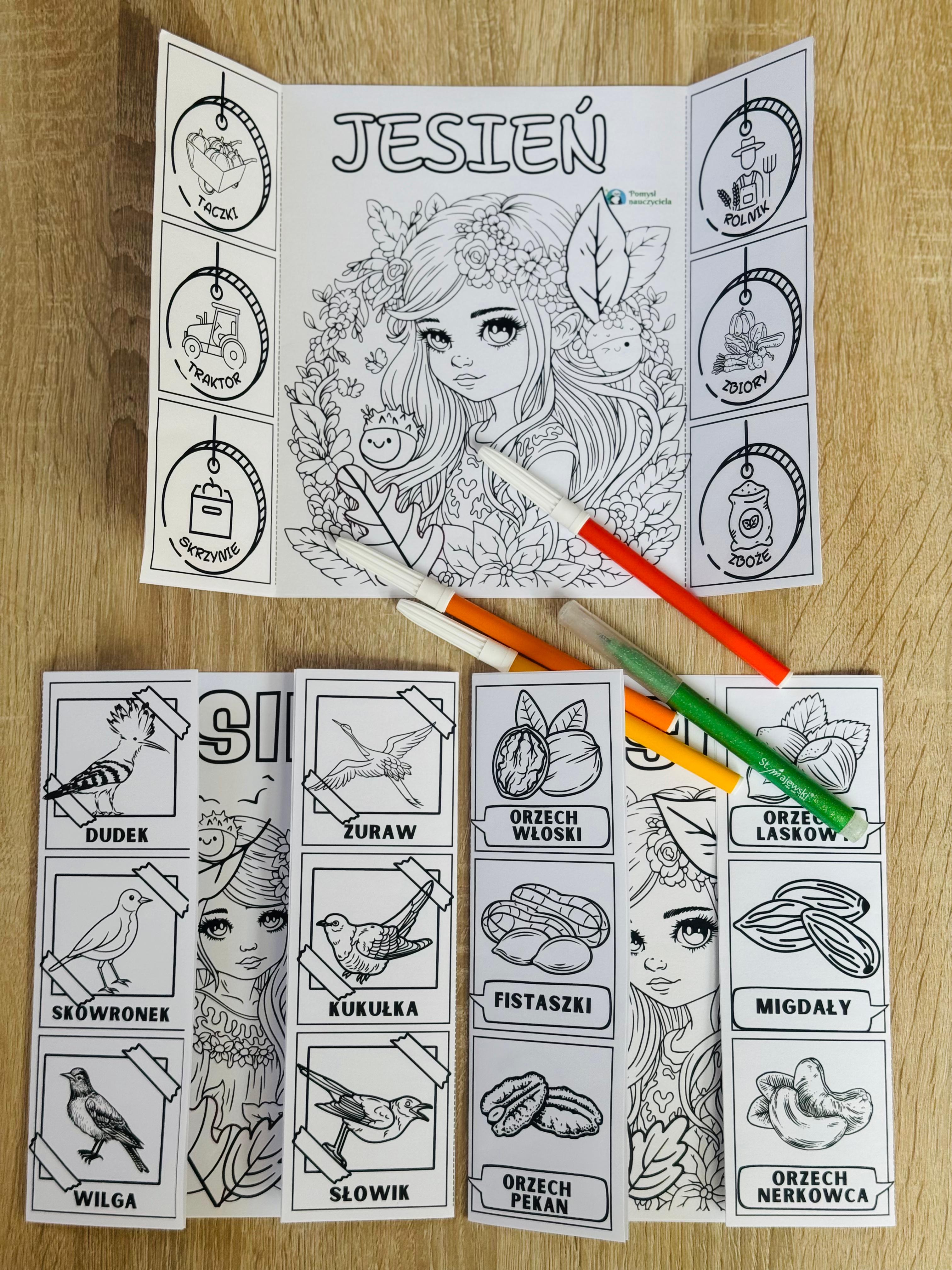JESIEŃ KSIĄŻECZKI - PTAKI, KWIATY,ORZECHY