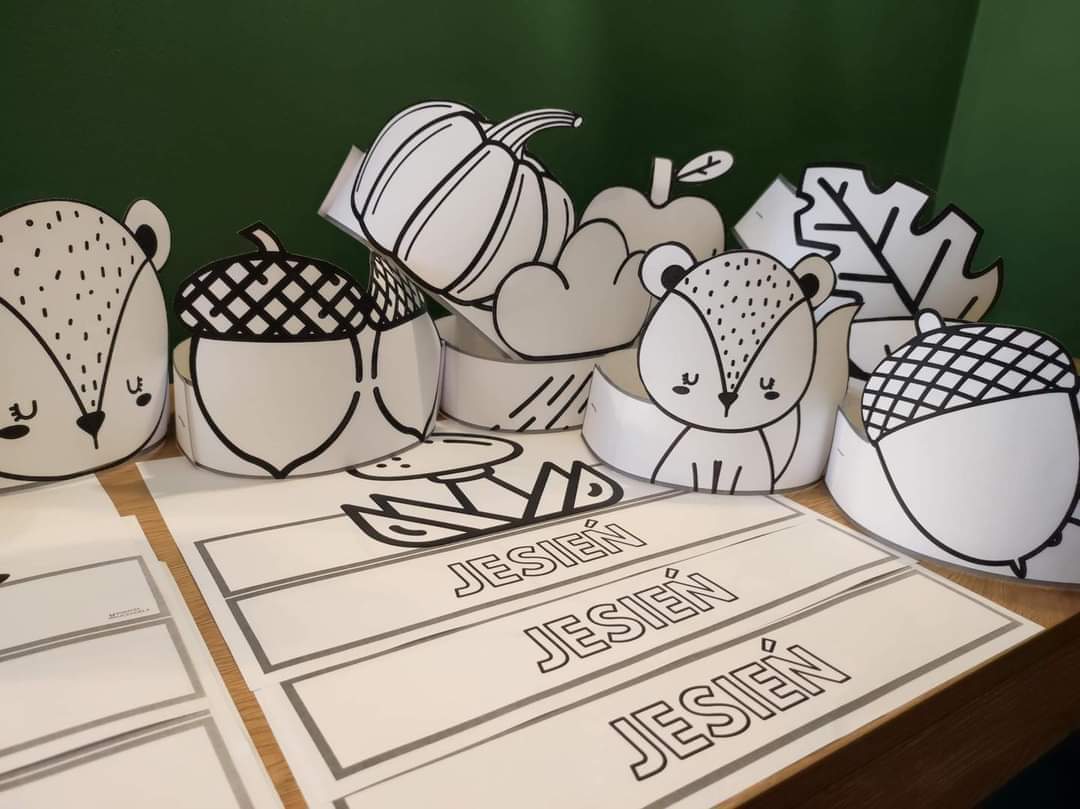 Dzieci mogą samodzielnie wycinać opaski i kolorować. Na każdej opasce znajduje się napis, który dzieci mogą pokolorować. Opaski uatrakcyjnią przebieg zajęć jesiennych. Dodatkowo mogą zostać wykorzystane do organizacji pierwszego dnia jesieni.