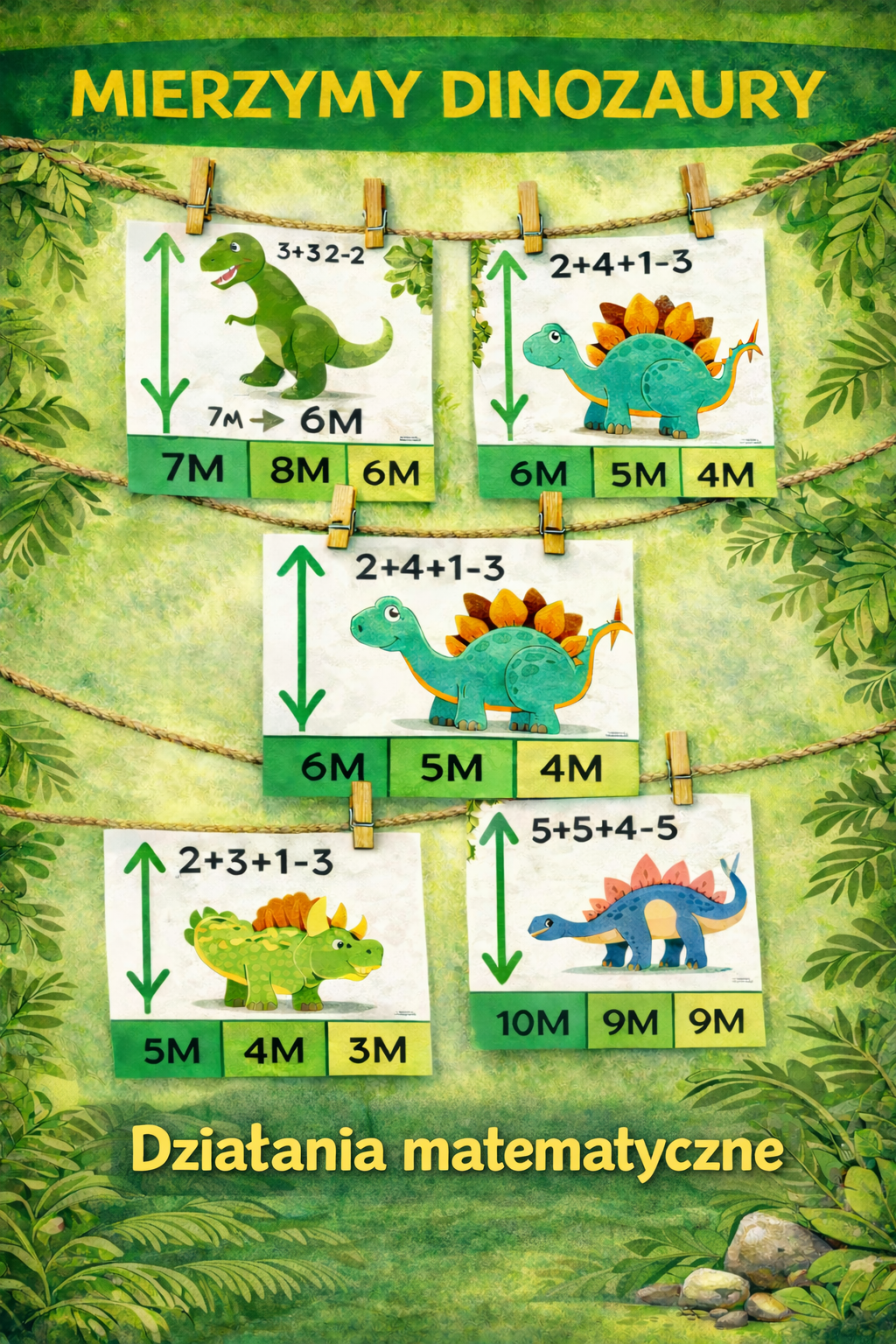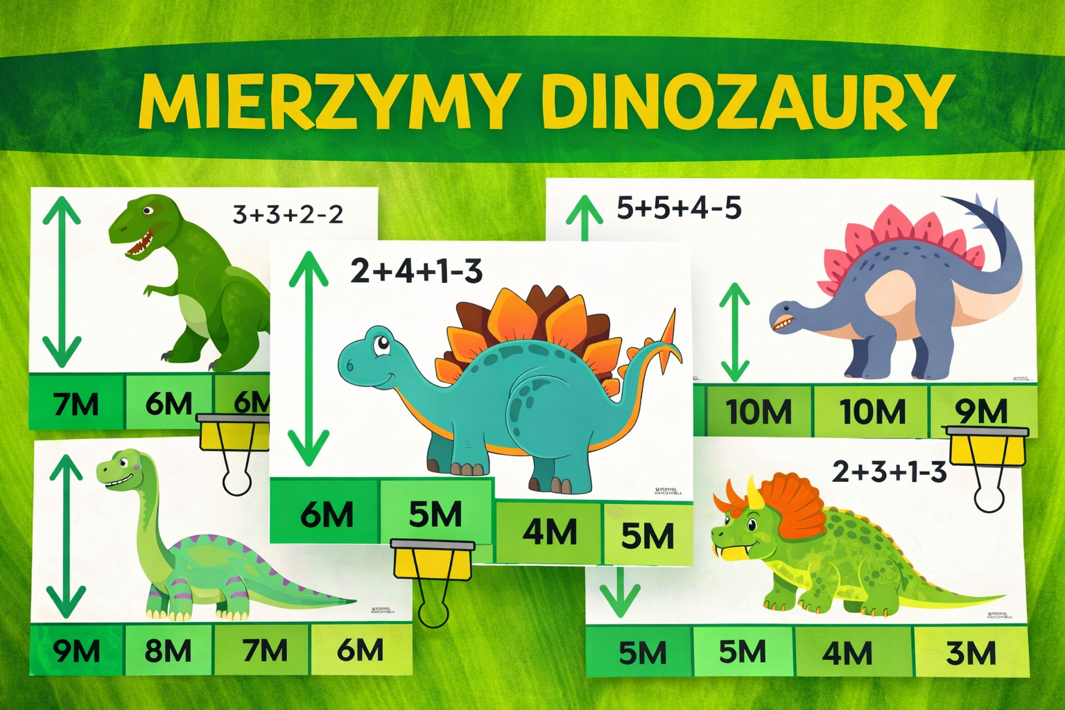 KARTY KLAMERKOWE - MIERZYMY DINOZAURY, DZIAŁANIA MATEMATYCZNE