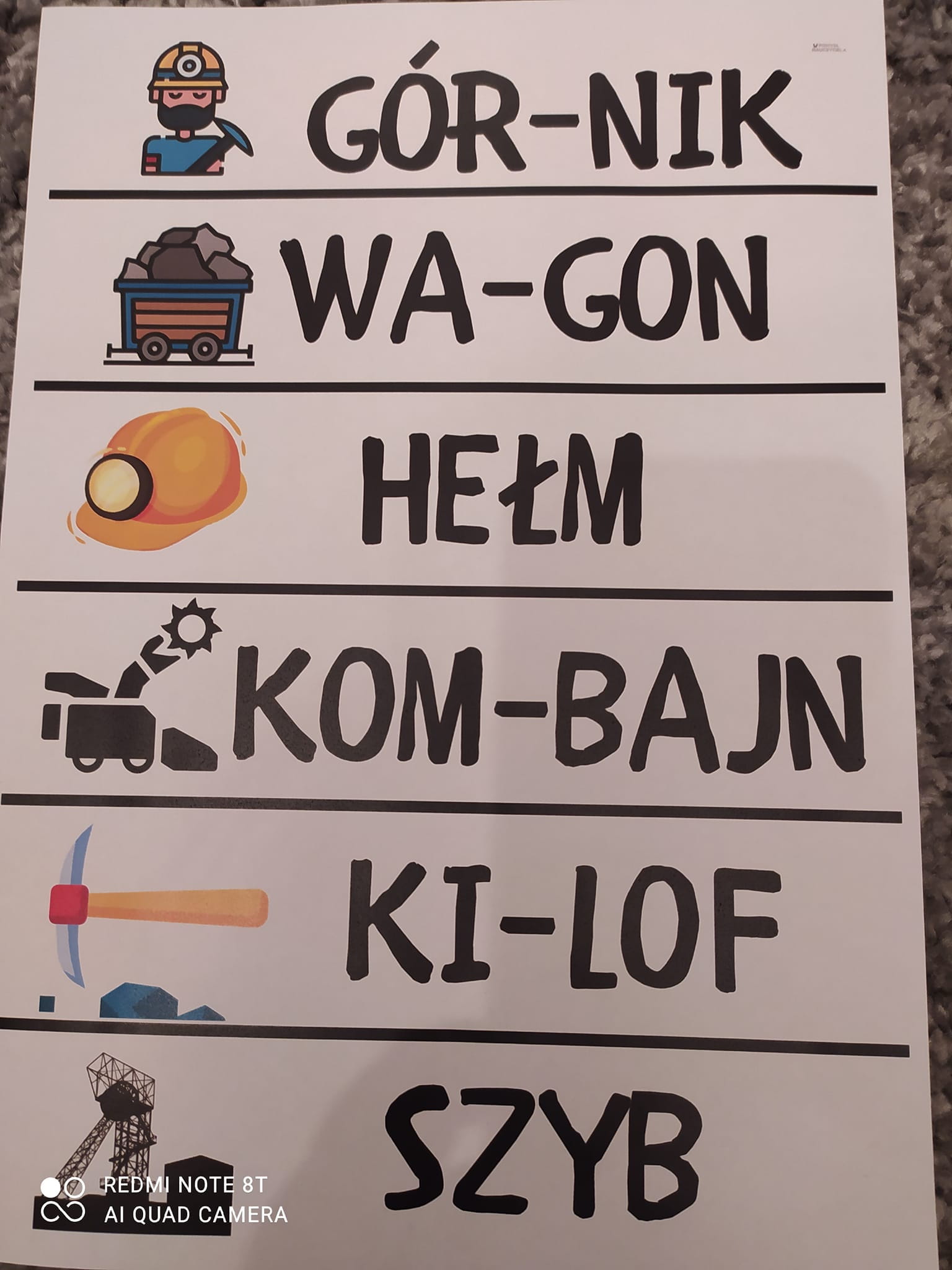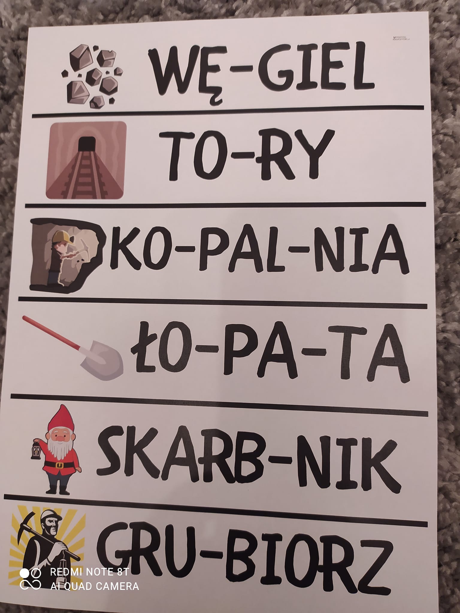 - 16 obrazków z napisami do czytania, dzielenia na sylaby, głoskowania