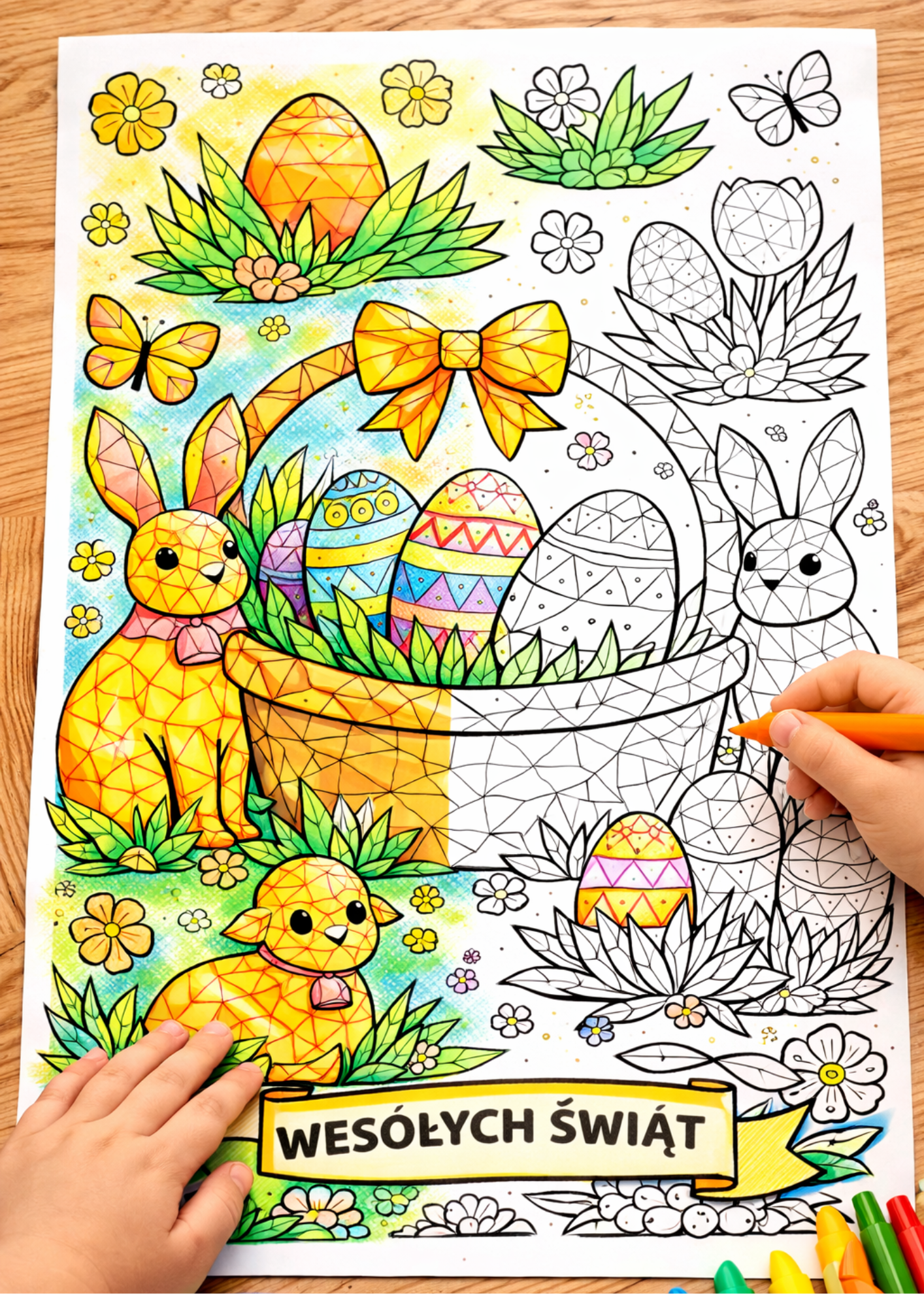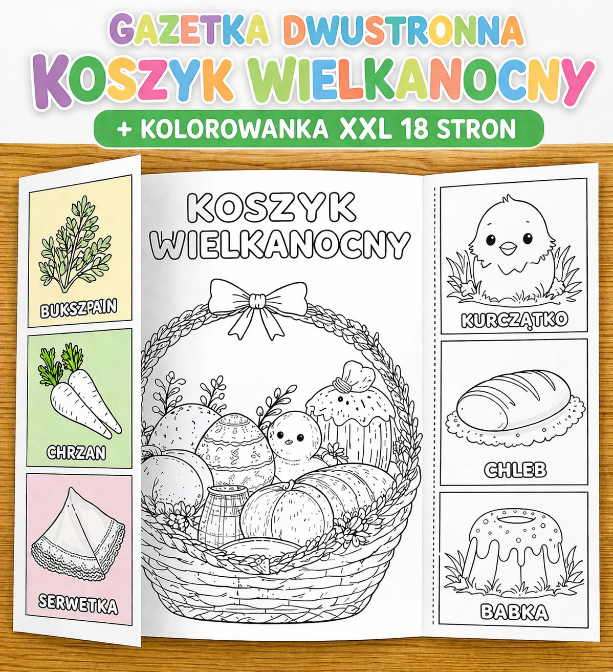 KOSZYCZEK WIELKANOCNY GAZETKA DWUSTRONNA 2 STRONY + KOLOROWANKA XXL 16 STRON