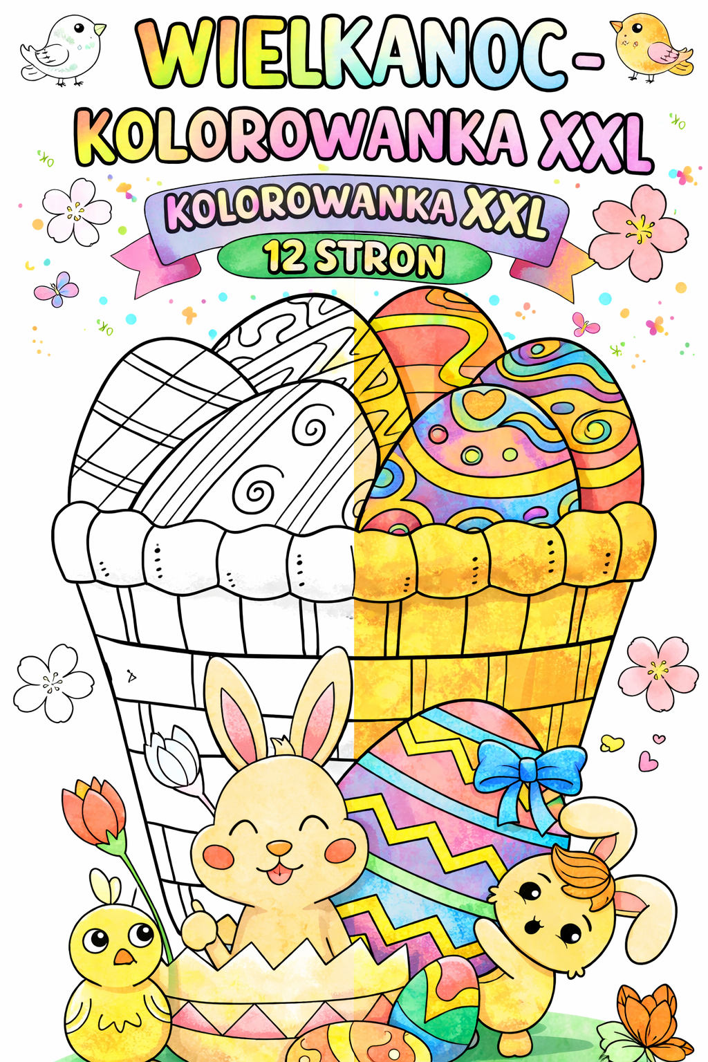 KOSZYK WIELKANOCNY 8 STRON + KOLOROWANKA XXL 12 STRON
