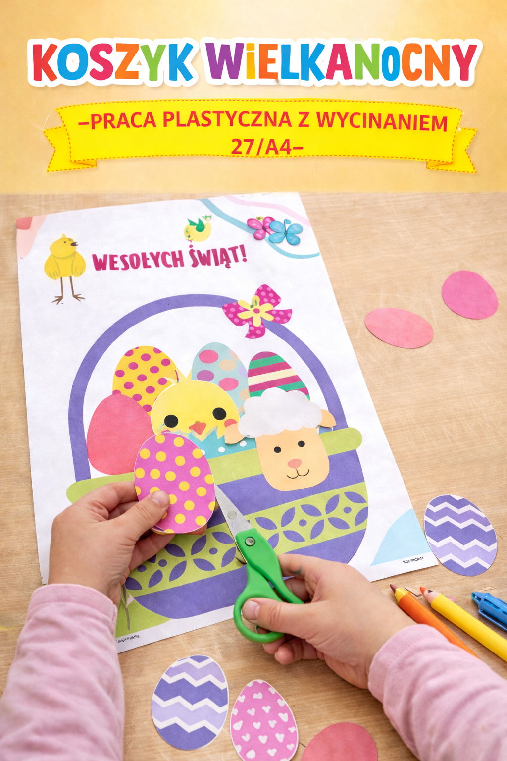 KOSZYK WIELKANOCNY- PRACA PLASTYCZNA Z WYCINANIEM