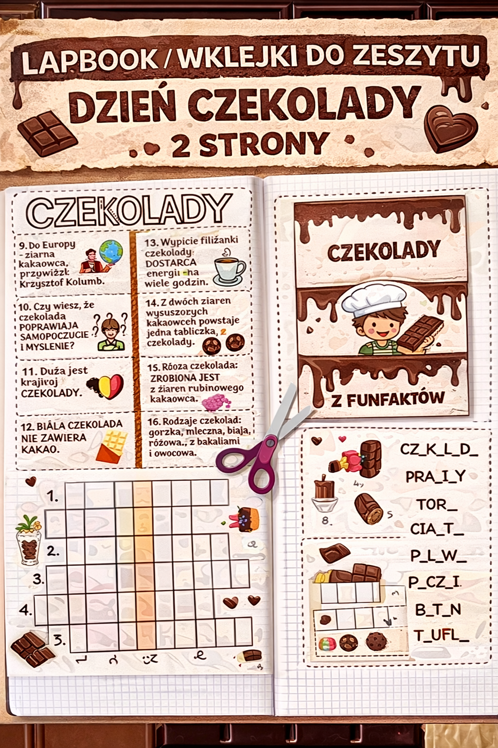 LAPBOOK/WKLEJKI DO ZESZYTU DZIEŃ CZEKOLADY 2 STRONY