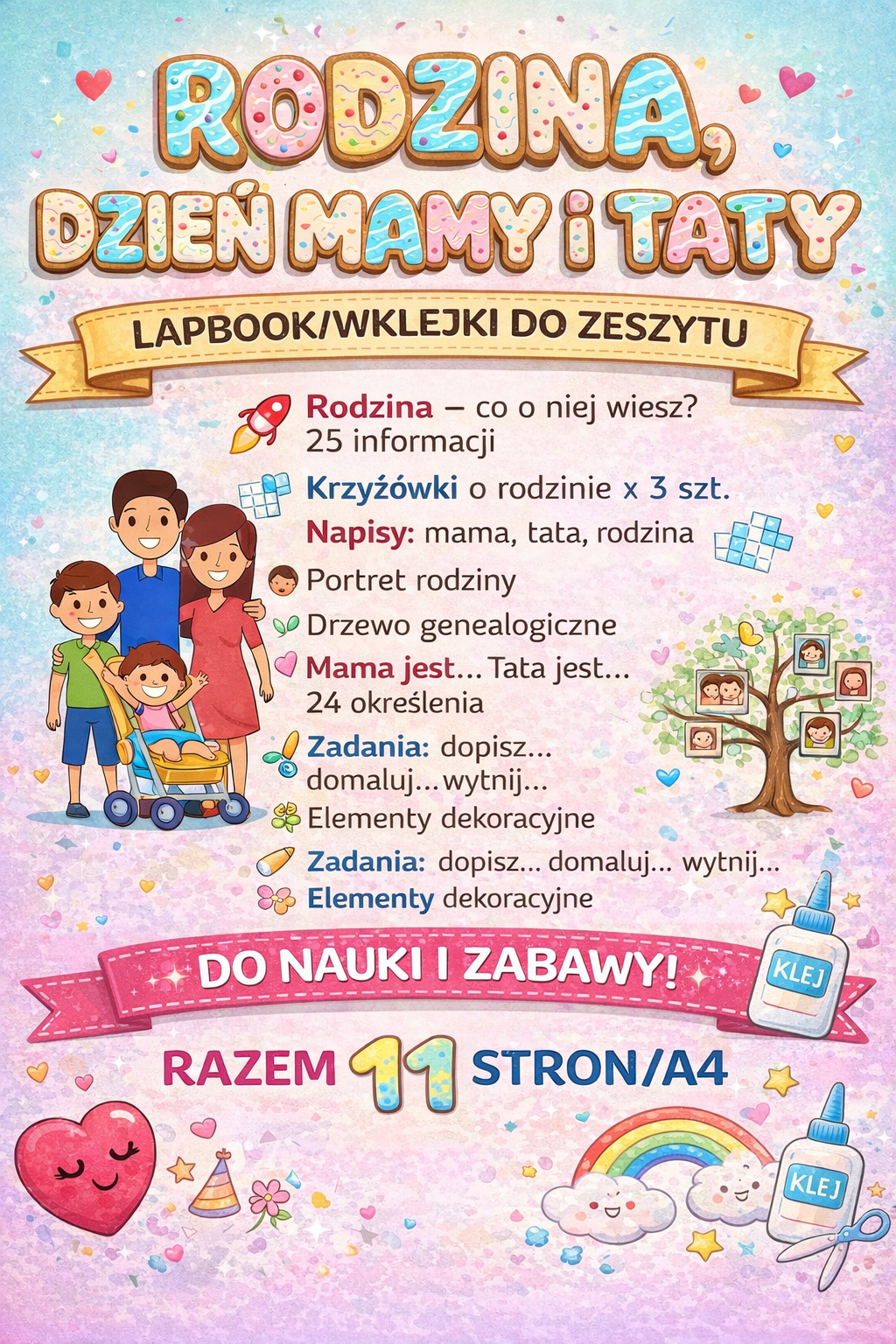 LAPBOOK/WKLEJKI DO ZESZYTU RODZINA, DZIEŃ MAMY I TATY 11 STRON