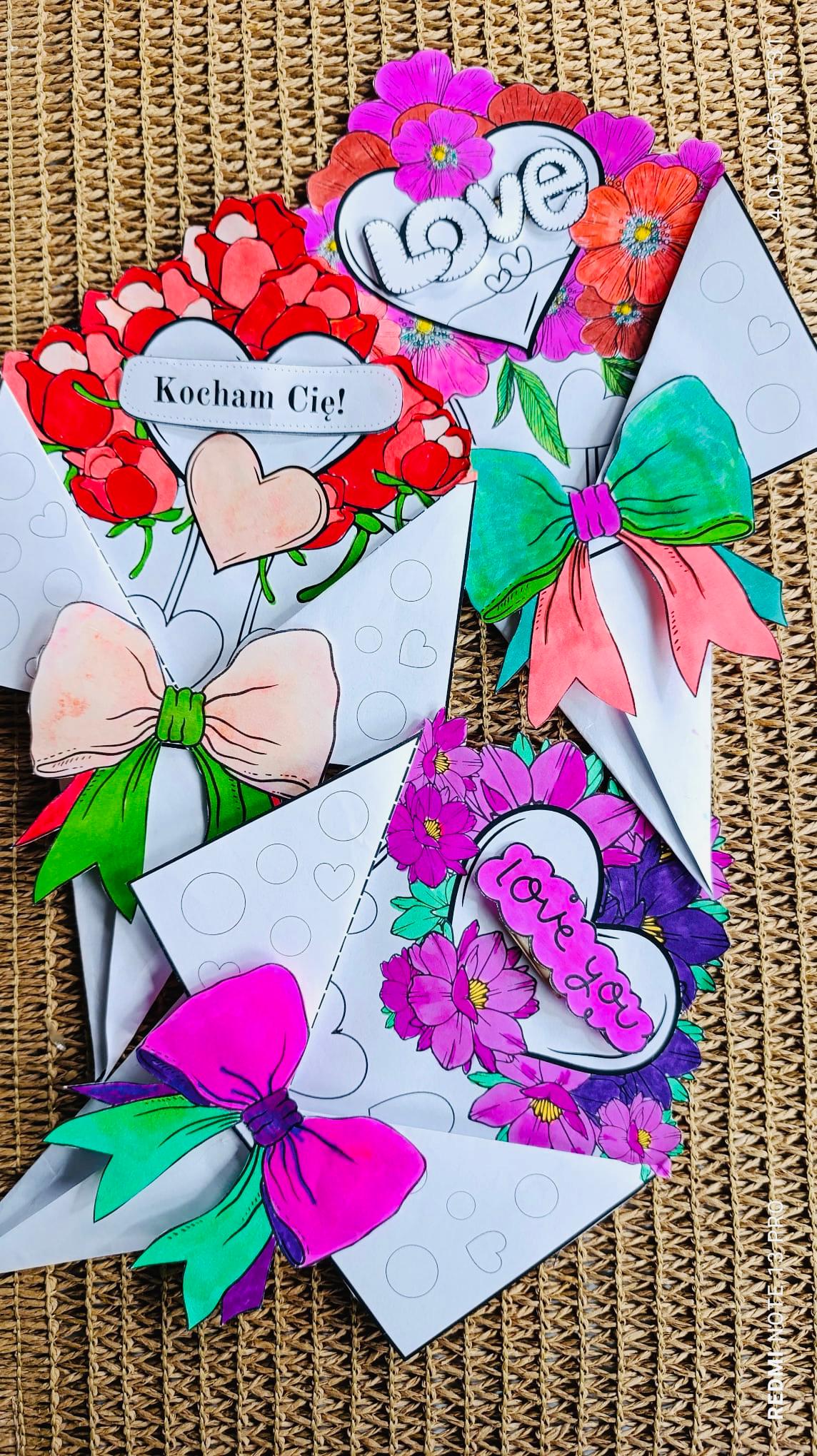 LAURKI - SKŁADANKI Z BUKIETEM KWIATÓW, ŻYCZENIA, NAPISY 14 STRON