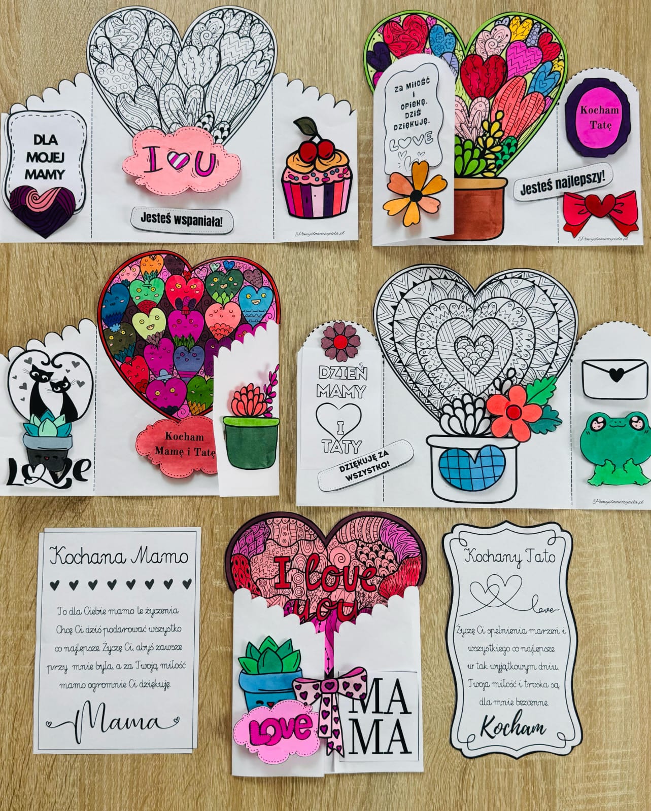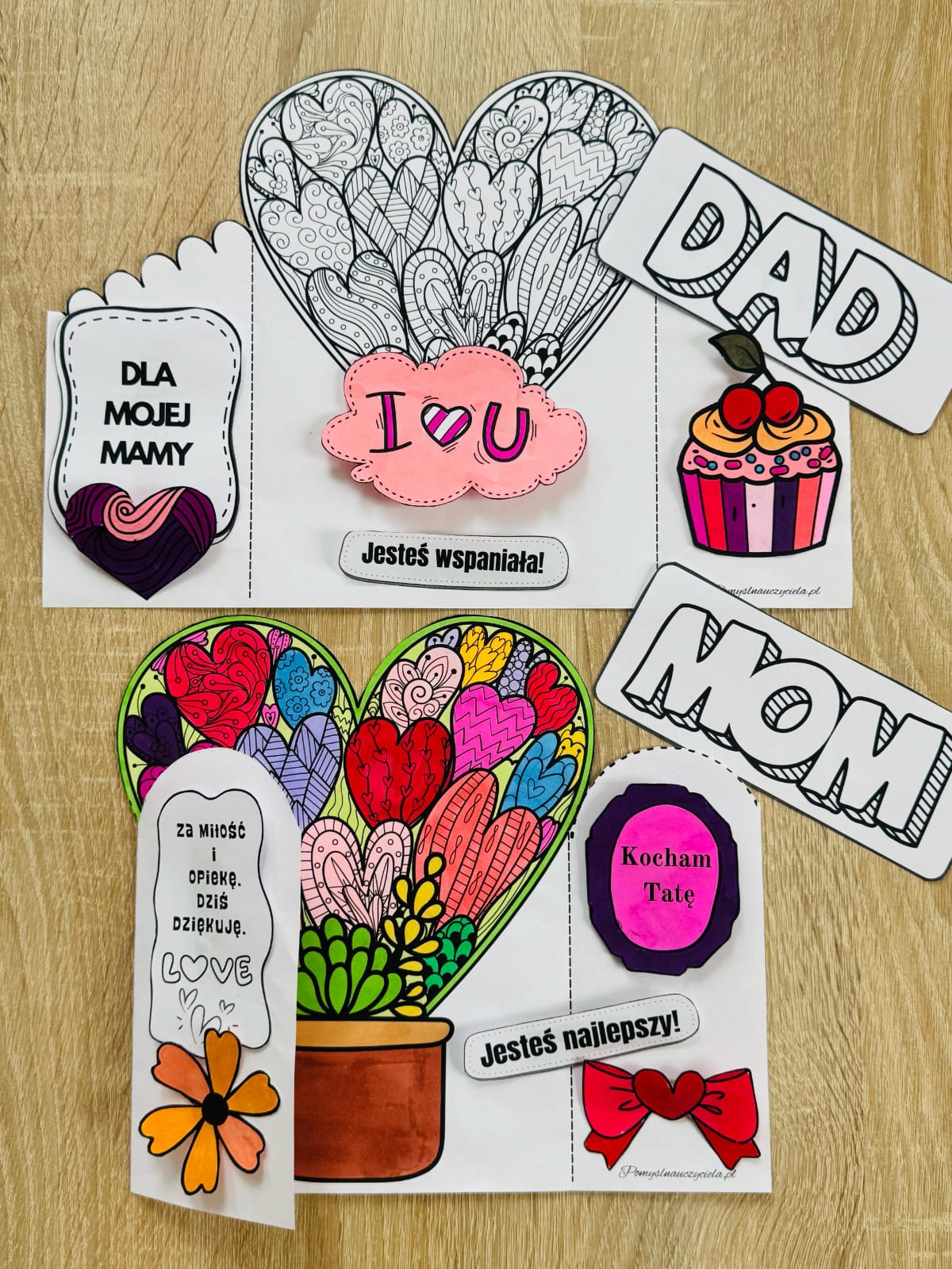 DZIEŃ MAMY I TATY - 4 ZESTAWY KART MANUALNYCH DO KOLOROWANIA, WYCINANIA I GRAFOMOTORYKI 90/A4