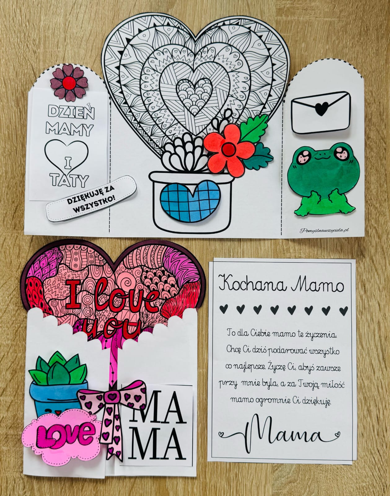 DZIEŃ MAMY I TATY | DYPLOMY - DLA MAMY I TATY ODBIJAMY RĄCZKI Z ZIELONYM MOTYWEM - 4 WZORY