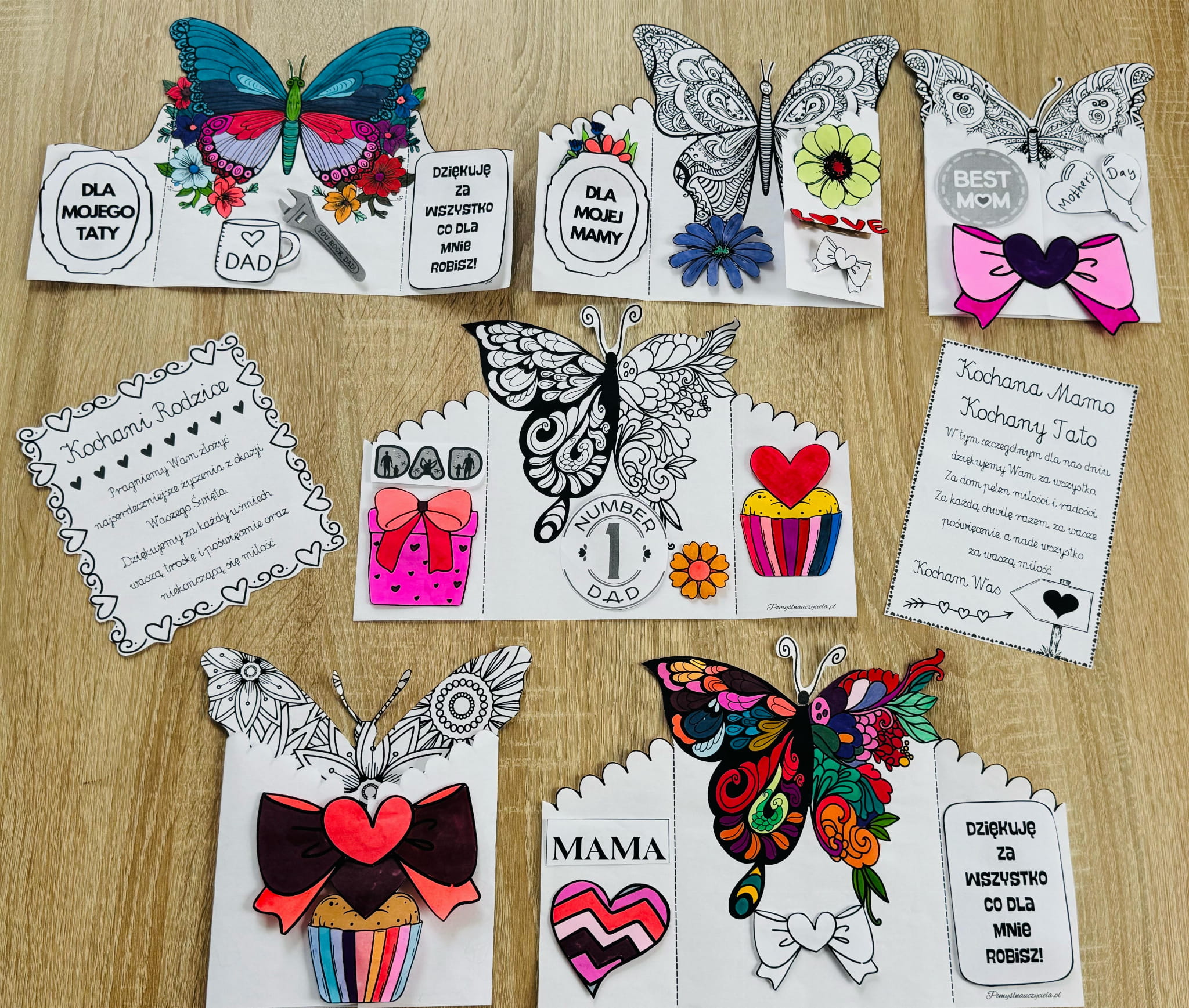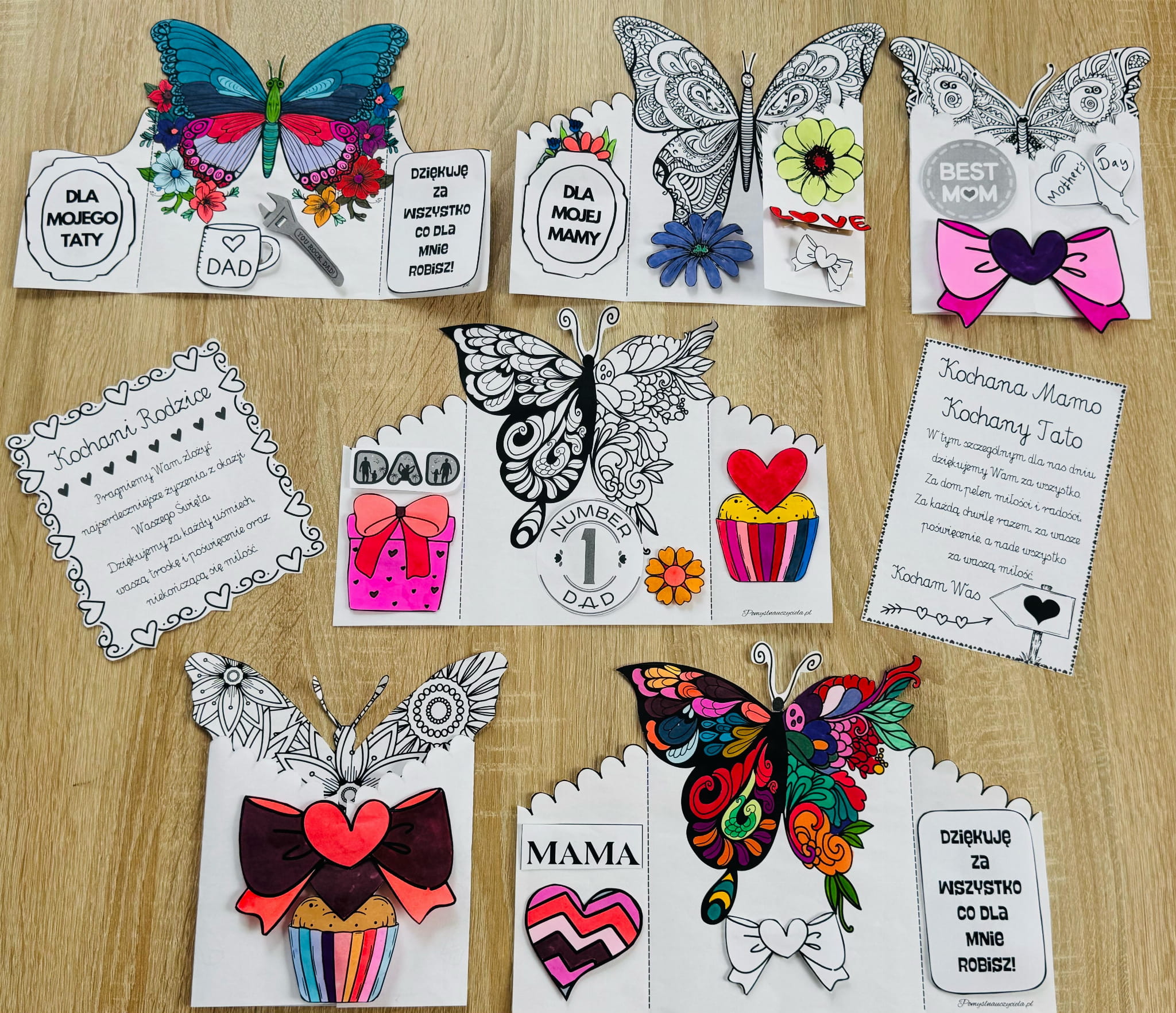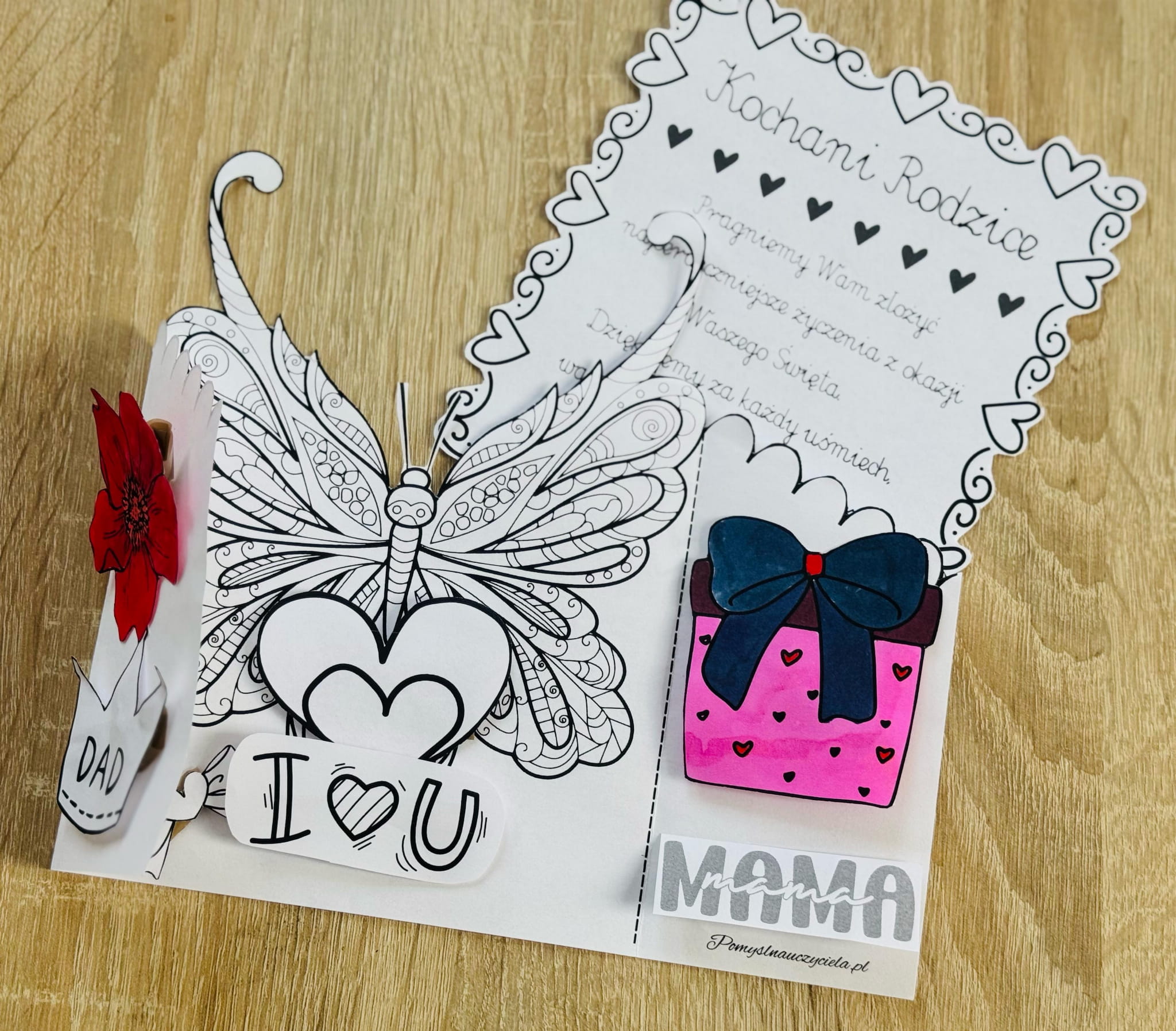 DZIEŃ MAMY I TATY - 4 ZESTAWY KART MANUALNYCH DO KOLOROWANIA, WYCINANIA I GRAFOMOTORYKI 90/A4