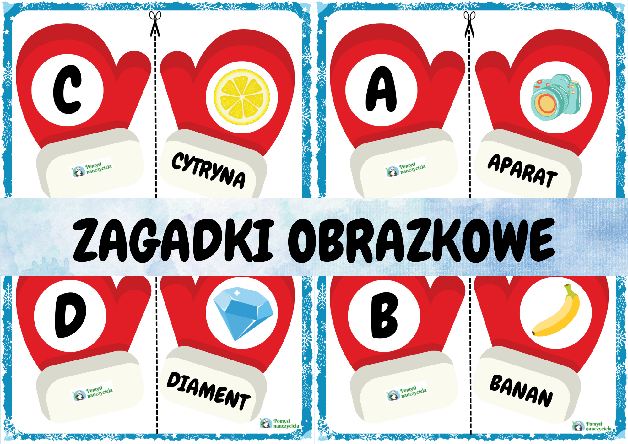 Zadaniem dziecka jest połączenie w pary rękawic w taki sposób by nazwa znajdującego się na rękawiczce obrazka rozpoczynała się na wskazaną na rękawicy literę. Celem zabawy jest przede wszystkim doskonalenie nauki czytania i pisania oraz ćwiczenie słuchu fonematycznego