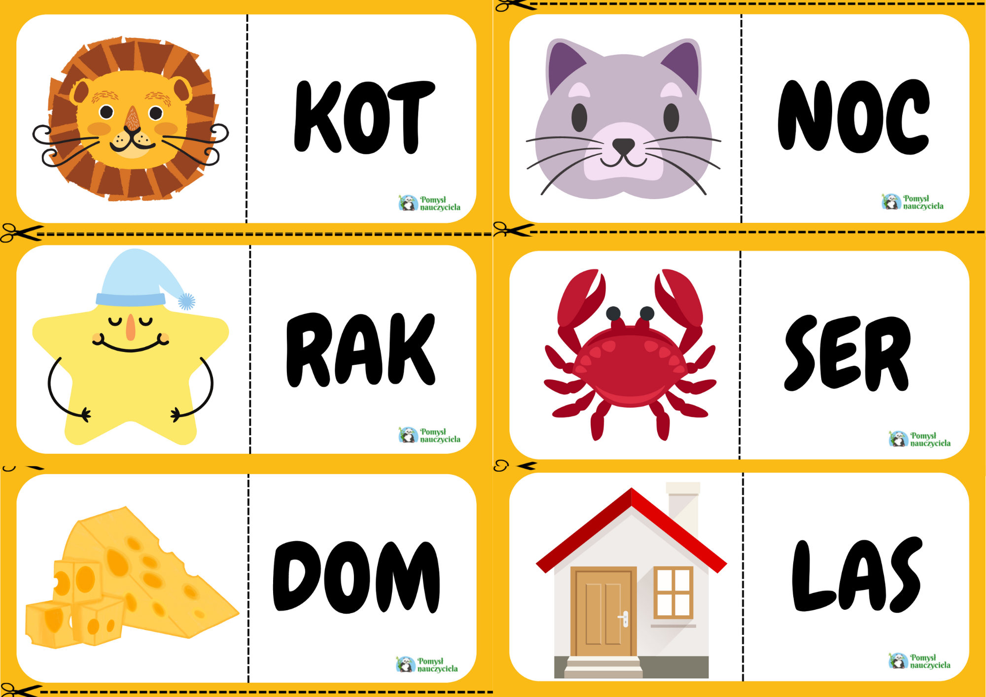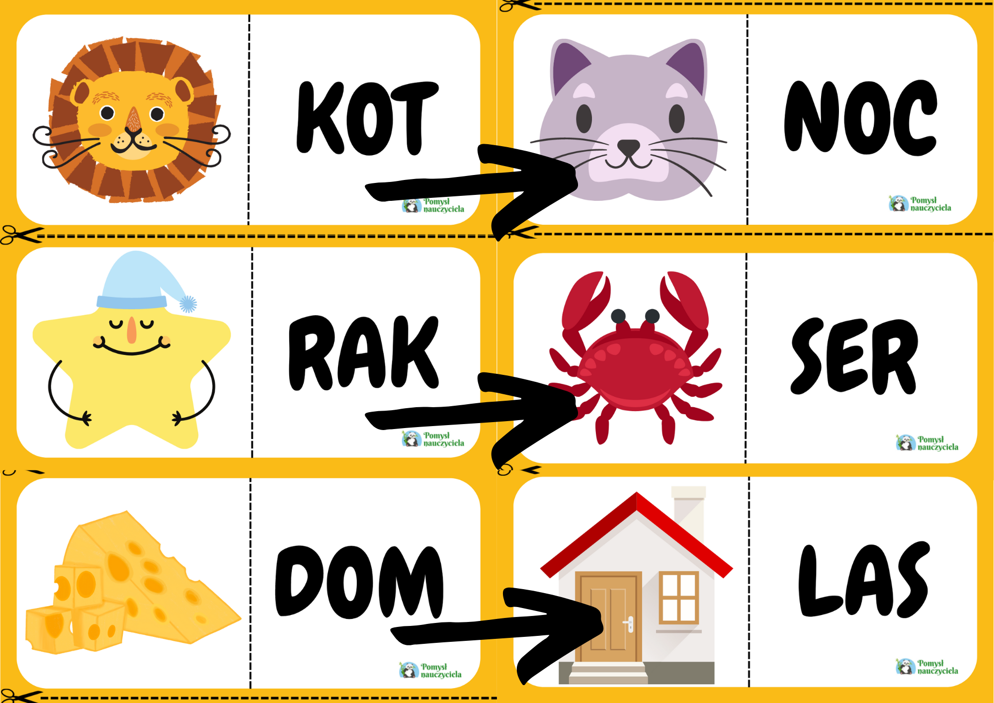 KARTY DO GRY W DOMINO Z WYRAZAMI TRZYLITEROWYMI