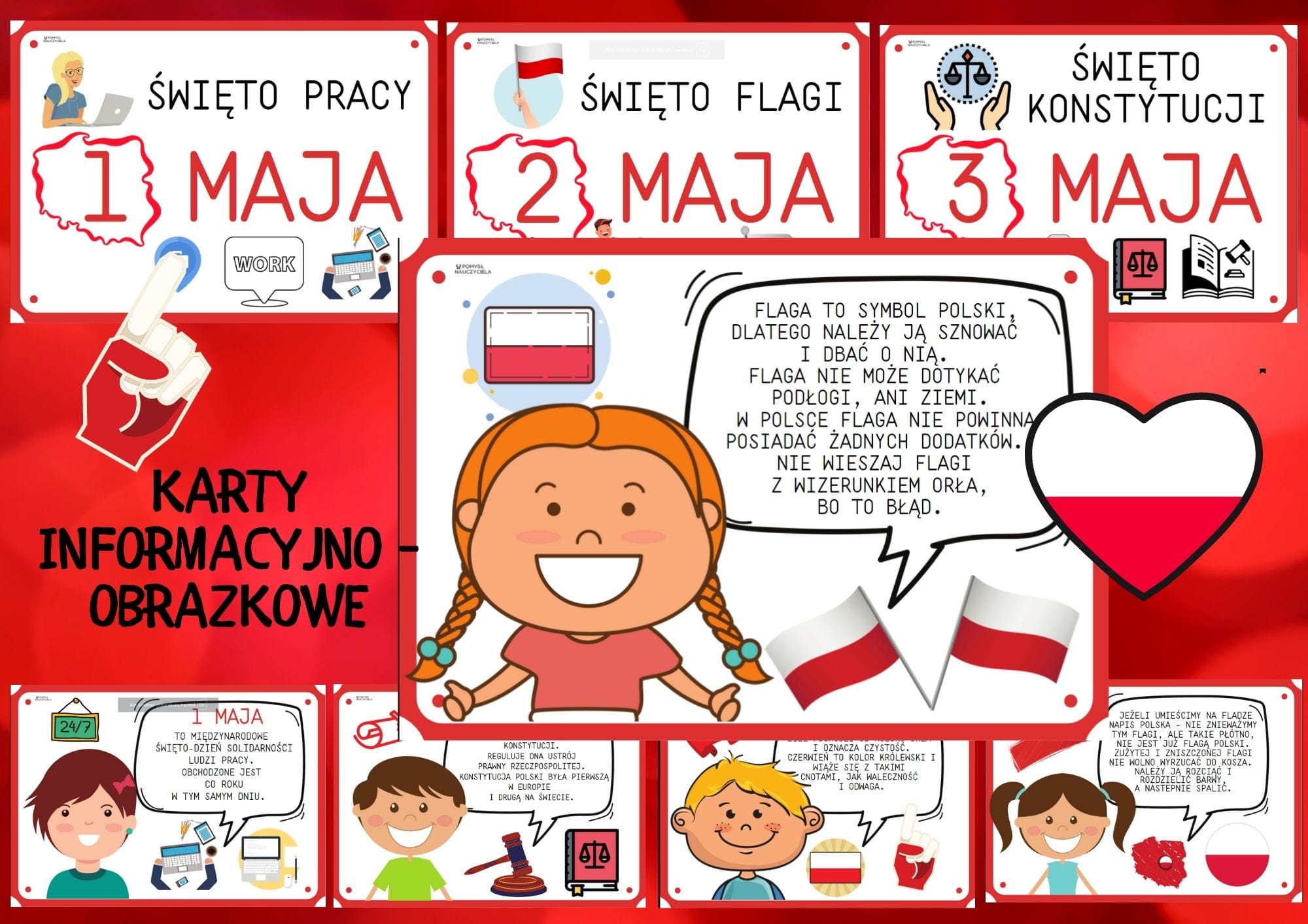 MAJOWE ŚWIĘTA - KARTY INFORMACYJNO- OBRAZKOWE 8 STRON