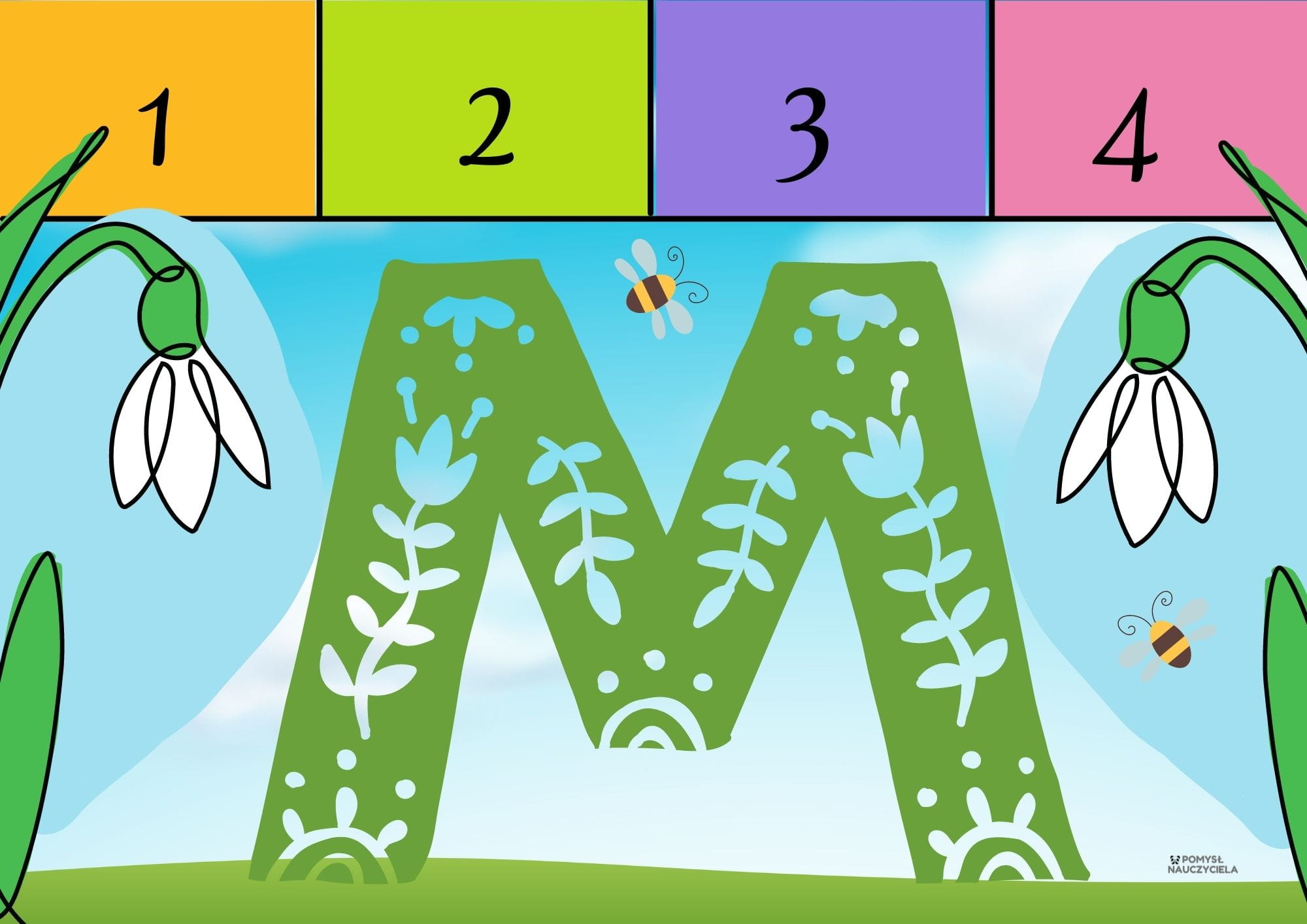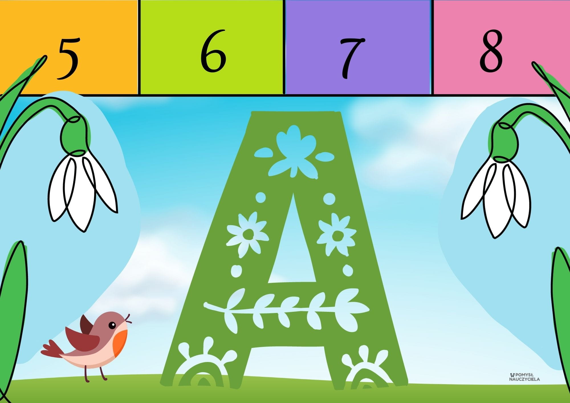Elementy z pakietu można też wykorzystać do stworzenia wiosennego plakatu, który może stanowić dekorację sali, lub kącika dla rodziców.