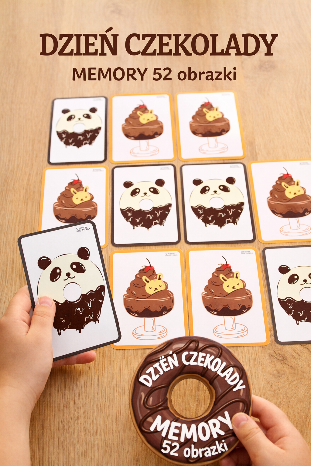 Gra memory to edukacyjna gra polegająca na odkrywaniu, zapamiętywaniu oraz łączeniu w pary tych samych elementów. Trenuje u dziecka pamięć, myślenie oraz spostrzegawczość. Gra zawiera obrazki związane tematycznie z Dniem CZEKOLADY. Zapewnia dzieciom wyśmienitą zabawę. Można ją realizować podczas zajęć z całą grupą lub w grach zespołowych.