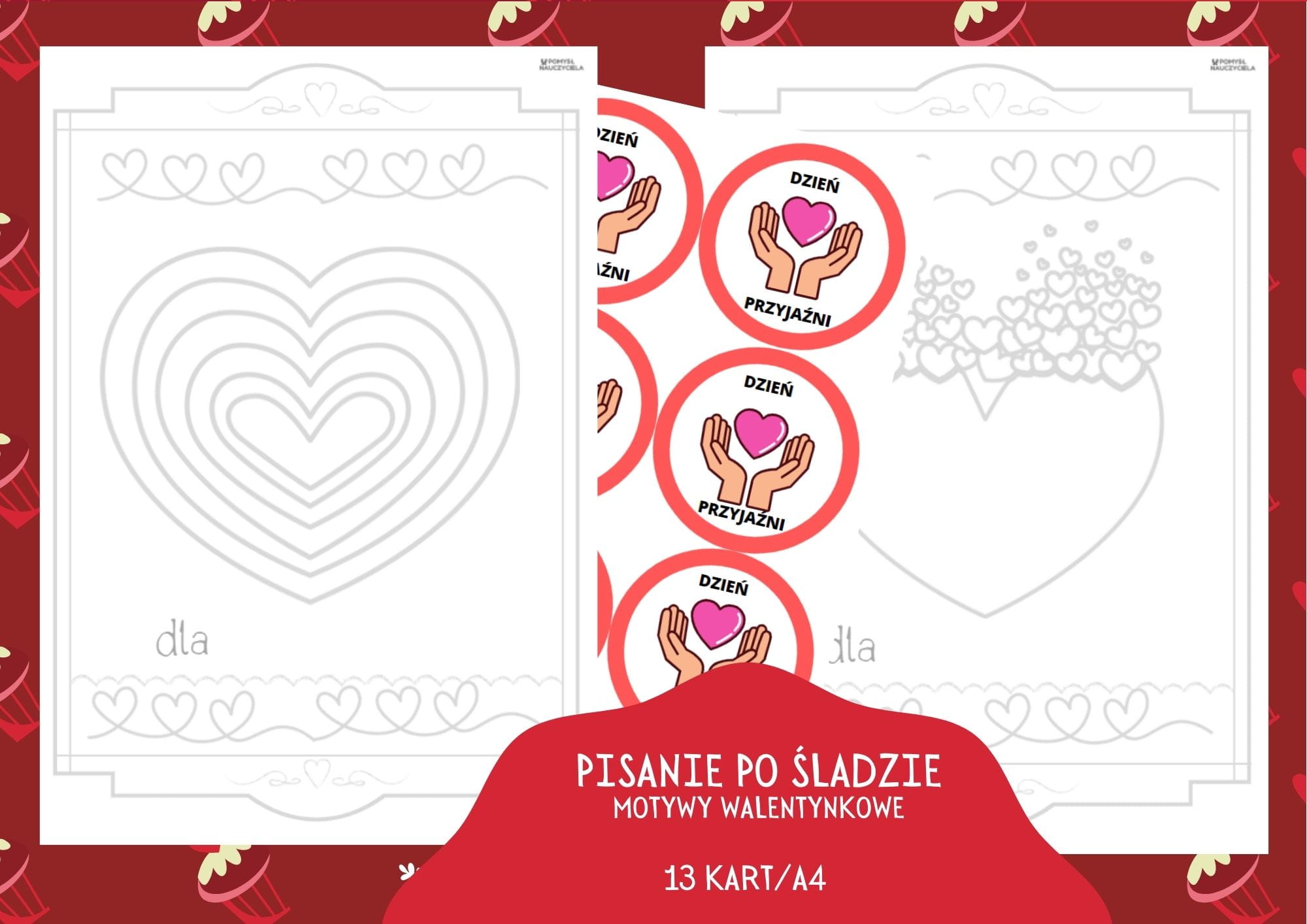 MOTYWY WALENTYNKOWE/DZIEŃ PRZYJAŹNI - PISANIE PO ŚLADZIE