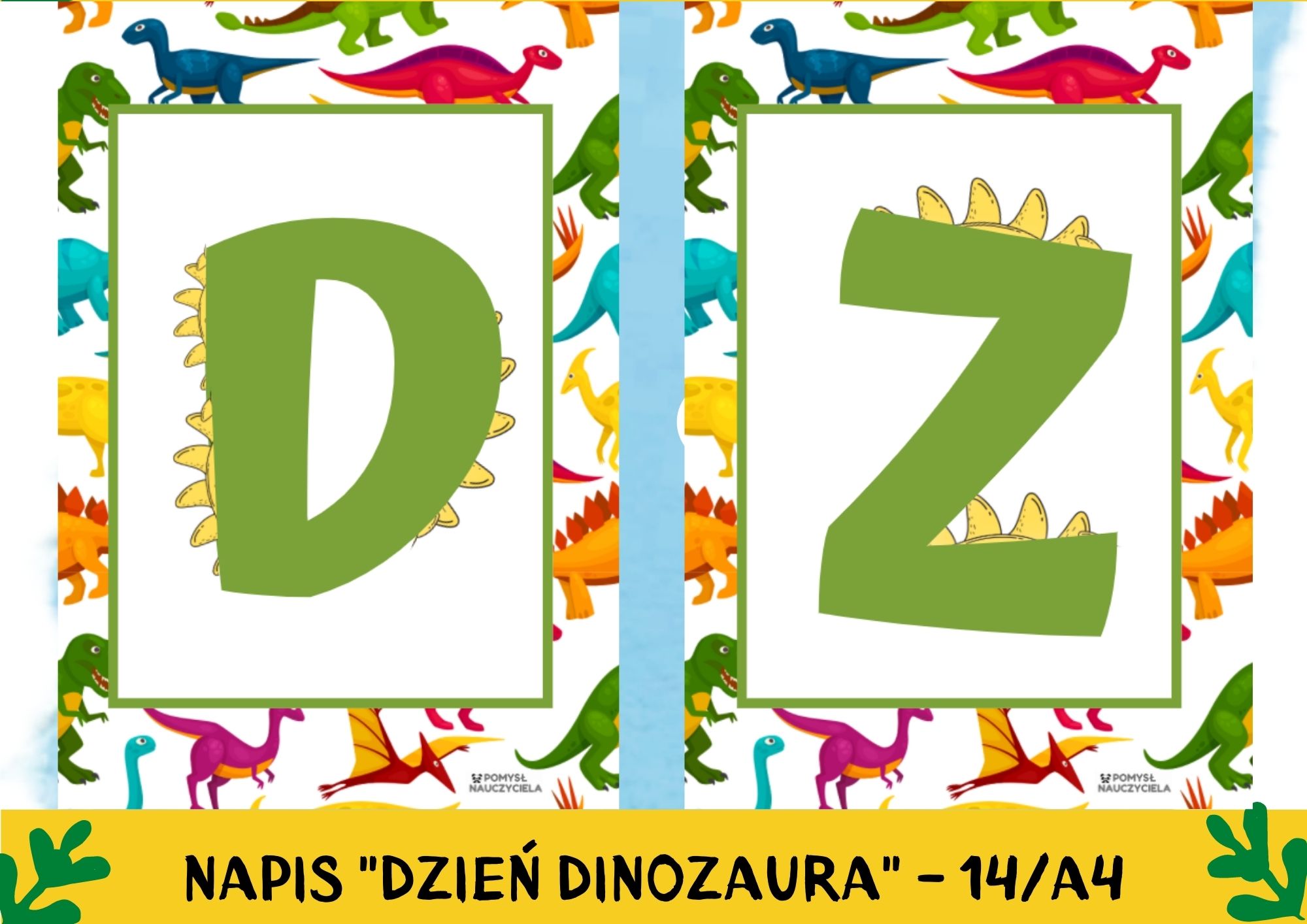 Napis został wykonany tak, aby przyciągał uwagę dziecka i zachęcał go do wzięcia udziału w Dniu Dinozaura. Obrazki są kolorowe, estetyczne, posiadają oryginalne tło. Każda litera znajduje się na osobnej stronie.
