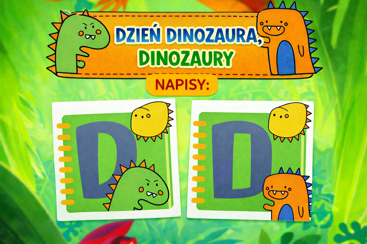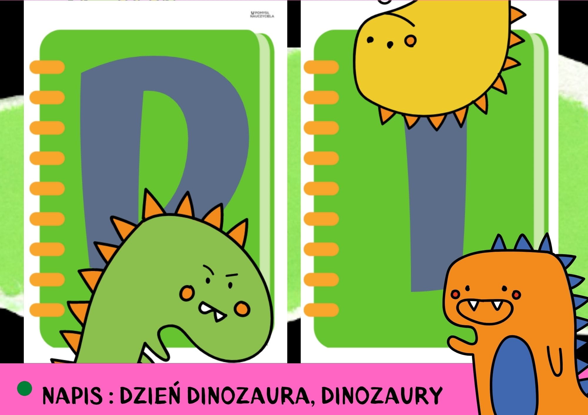 - 16 STRON Z LITERAMI TWORZĄCYMI NAPISY: DZIEŃ DINOZAURA, DINOZAURY, DINO, DINOZAUR