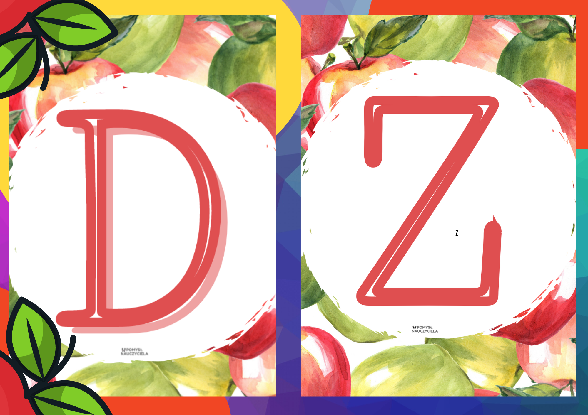 Napisy zostały wykonane tak, aby przyciągały uwagę dziecka i zachęcały go do wzięcia udziału w Dniu Jabłka, lub w innych zimowych zajęciach. Są kolorowe, estetyczne, posiadają oryginalne tło. Każda litera znajduje się na osobnej stronie, dzięki czemu można układać różne wyrazy tematyczne.